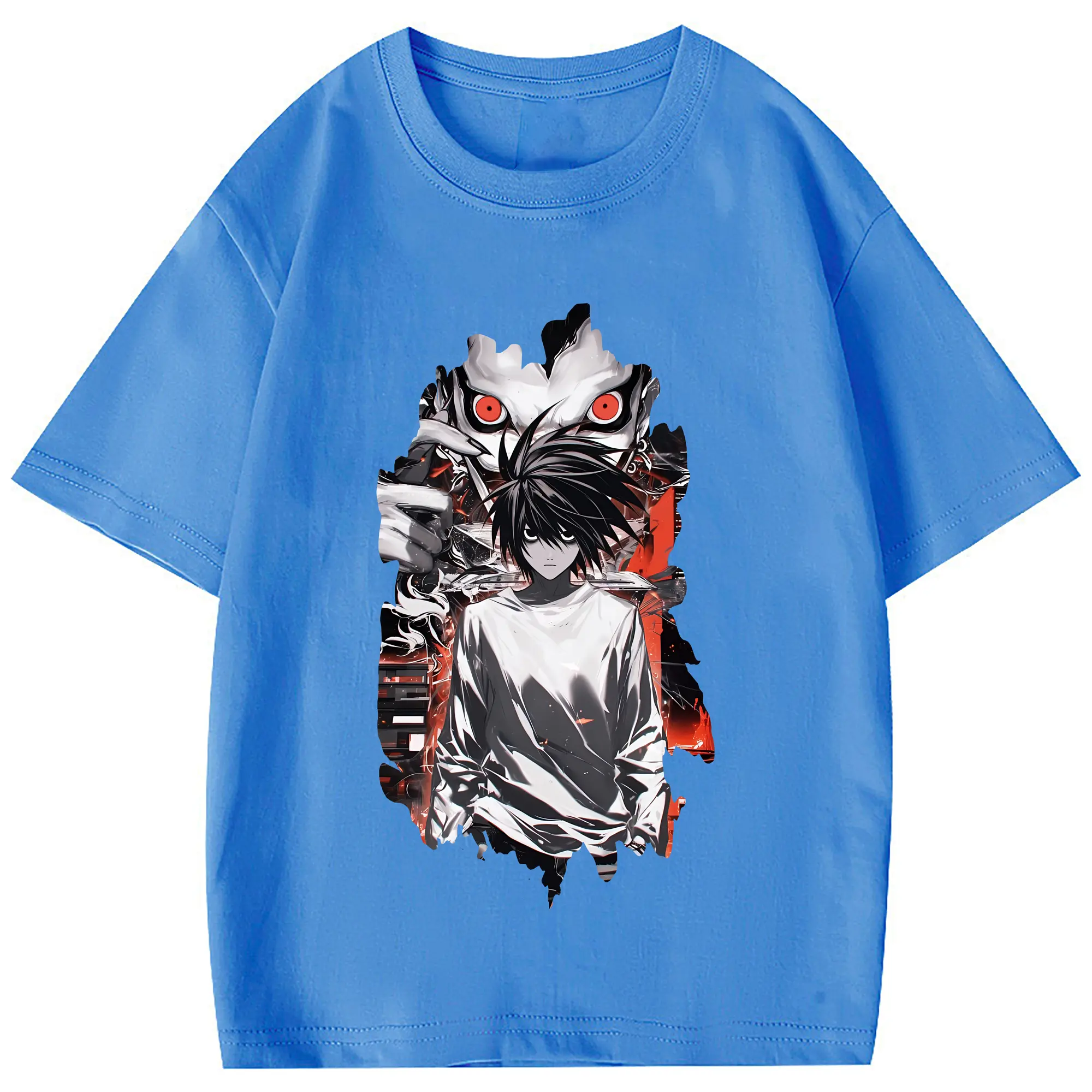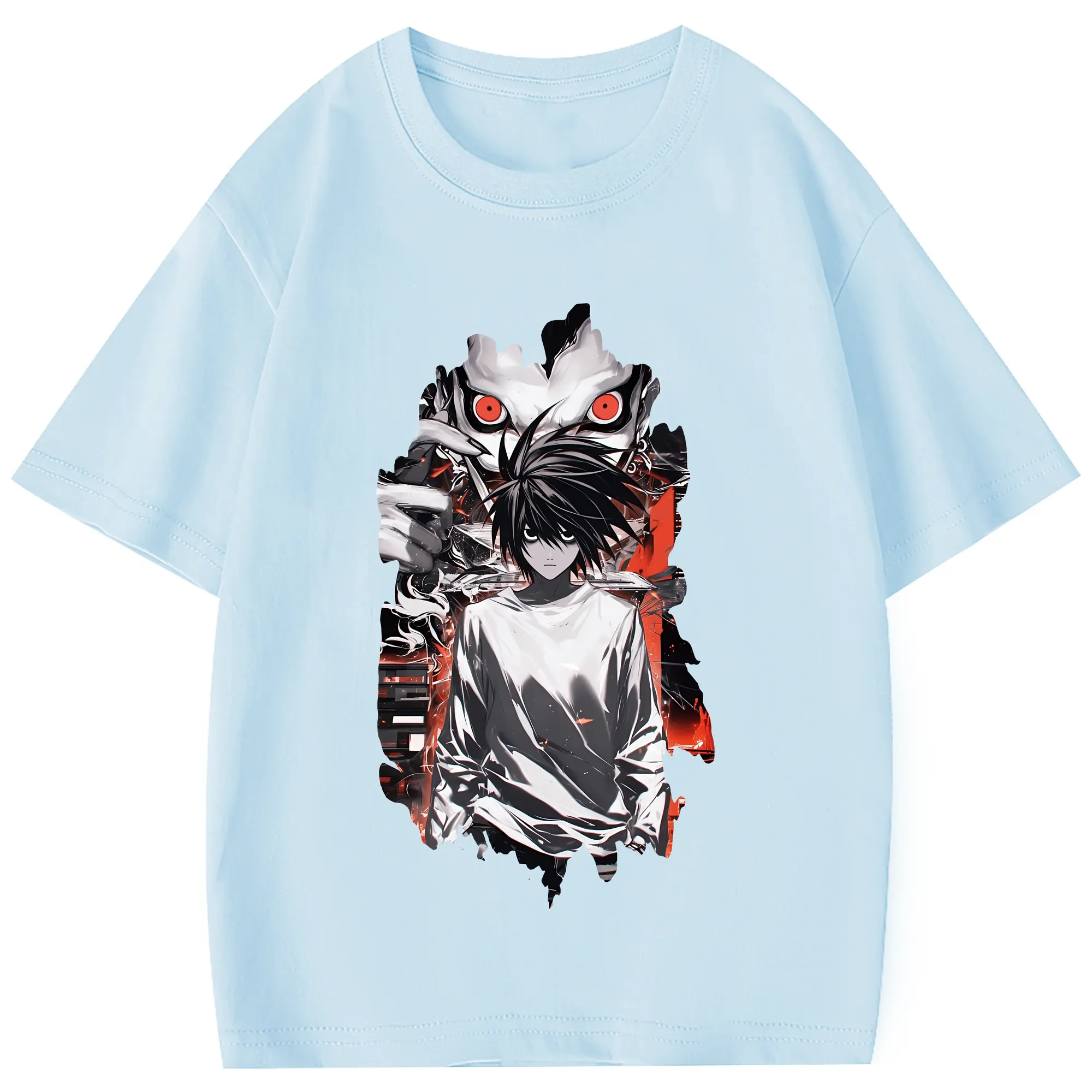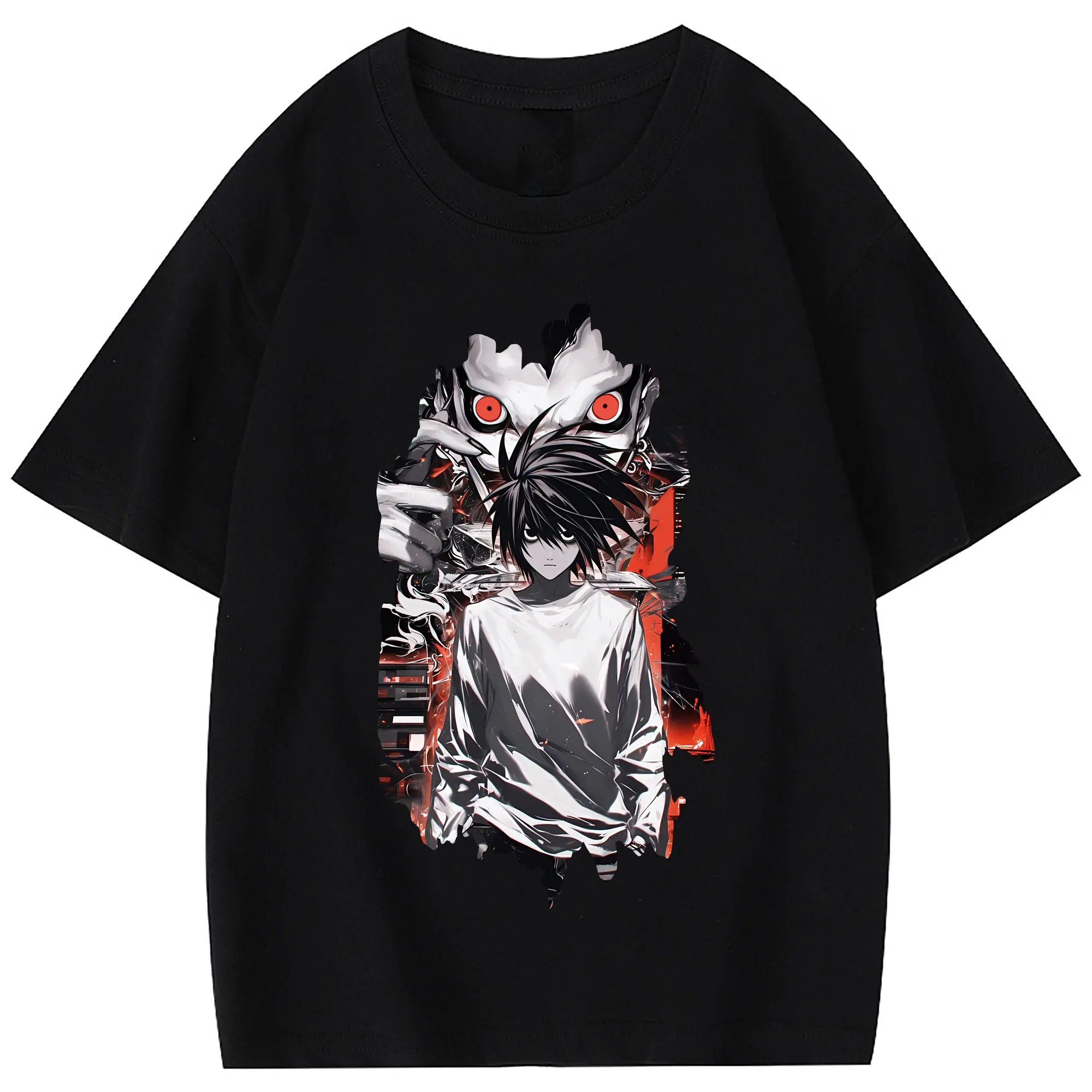 デスノート グッズ,L - 綿100% 半袖Tシャツ ・ フロントプリント ・ 快適 通気性 ・ 日常使い 散歩 スポーツ用