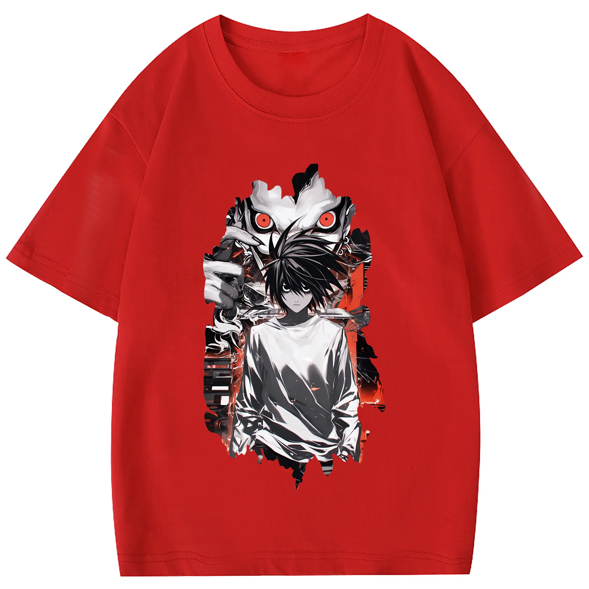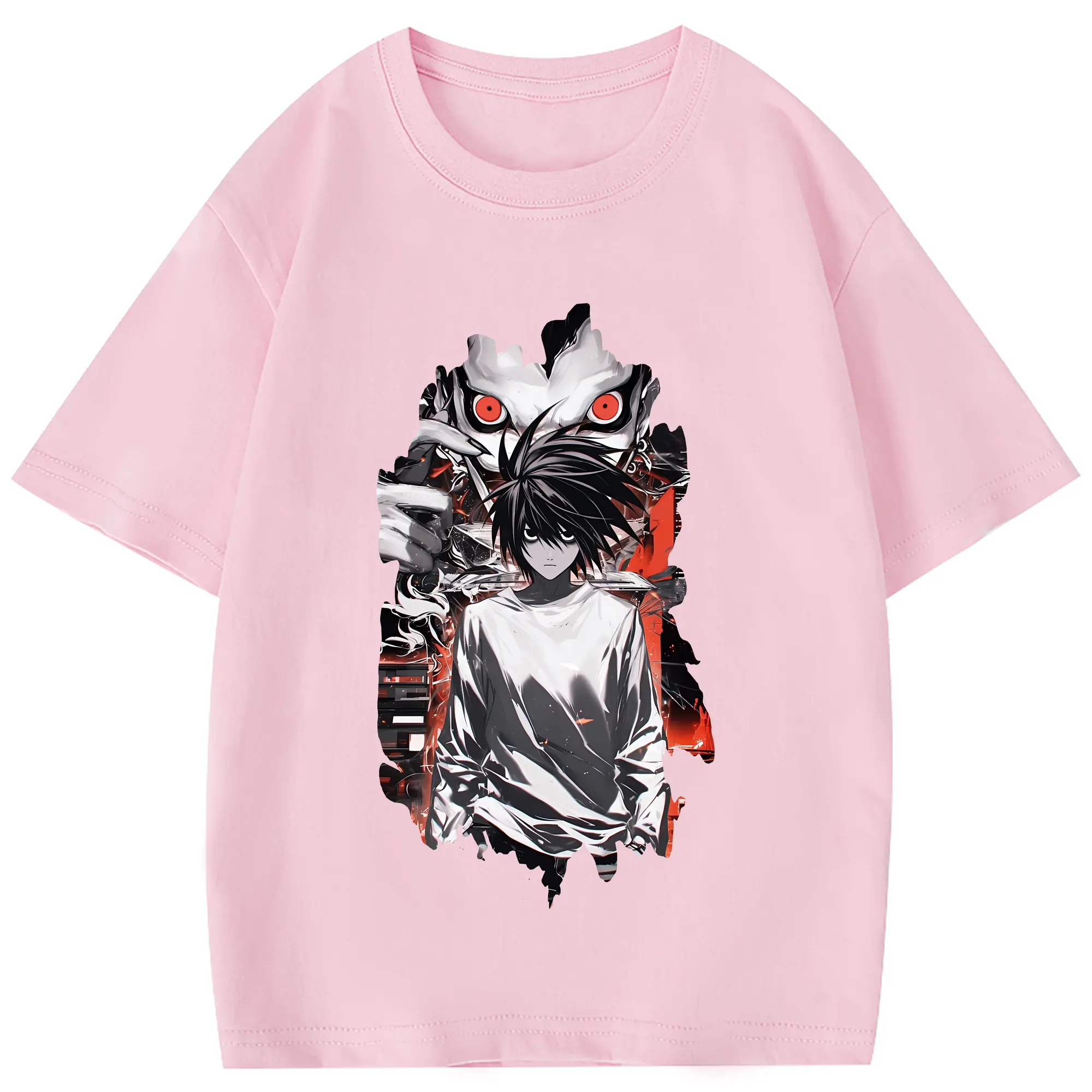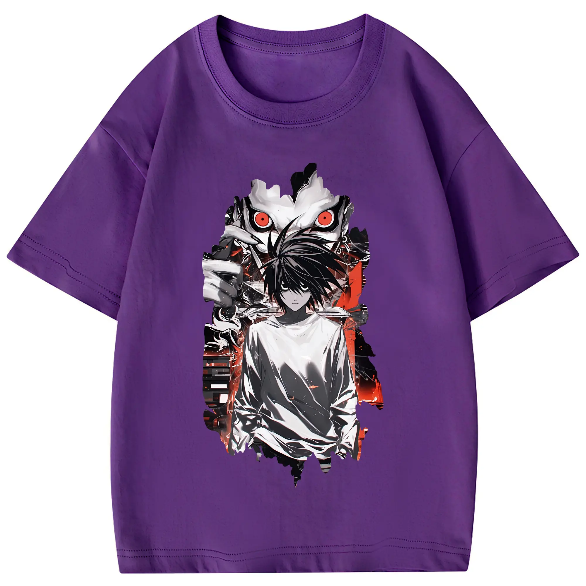 デスノート グッズ,L - 綿100% 半袖Tシャツ ・ フロントプリント ・ 快適 通気性 ・ 日常使い 散歩 スポーツ用