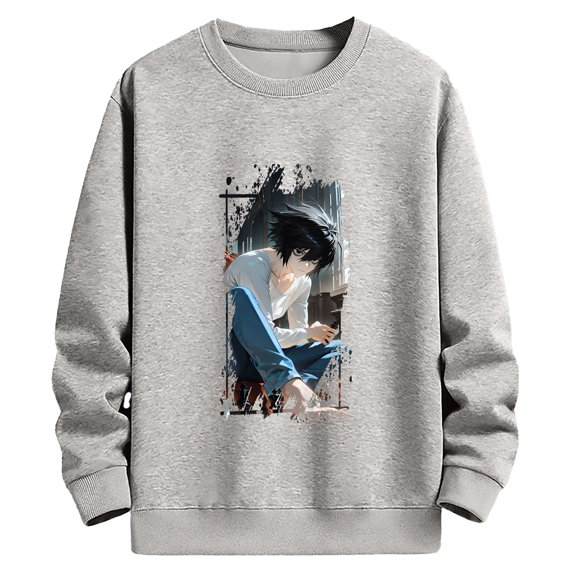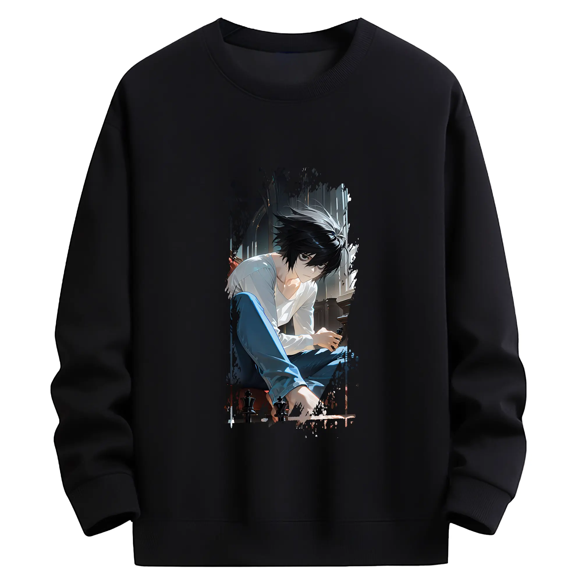 デスノート グッズ,L - 高品質 クルーネック スウェット ・ コットン59% ポリエステル41% ・ ユニセックス 長袖 トレーナー ・ カジュアル デイリー スポーツ 散歩用