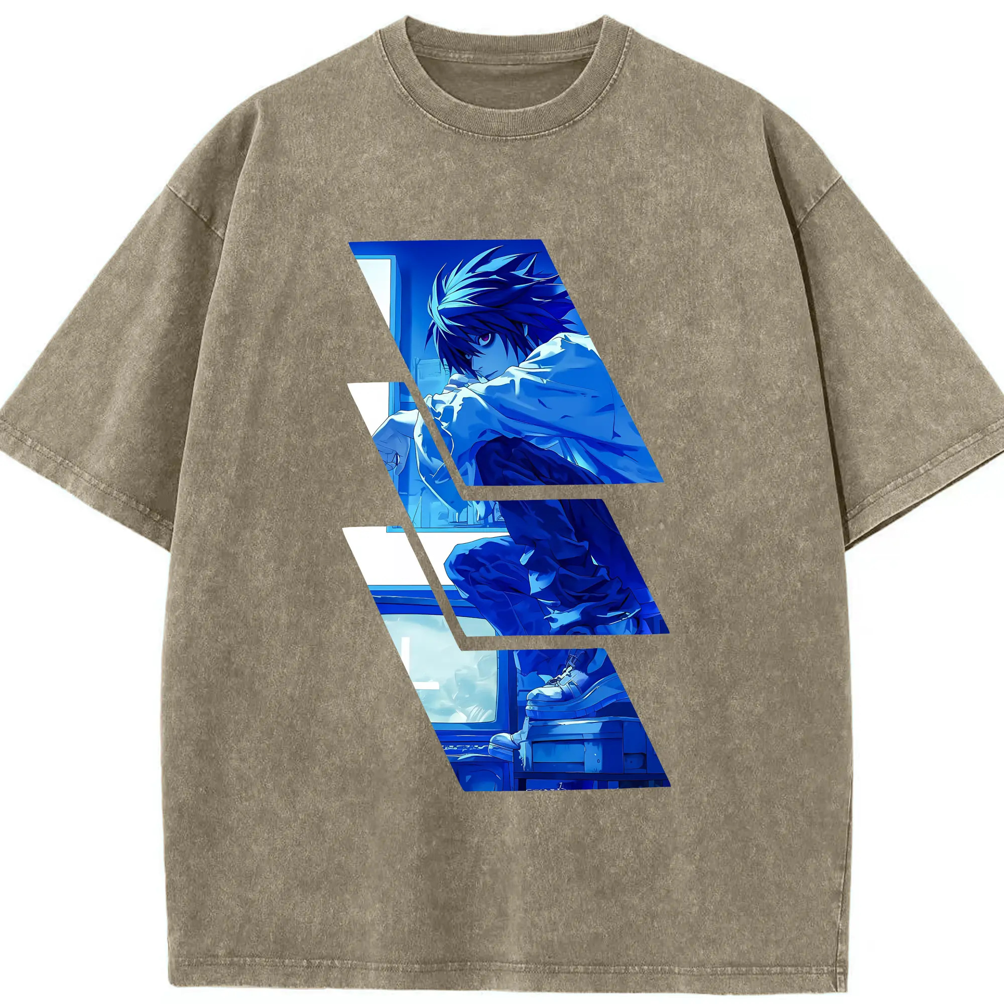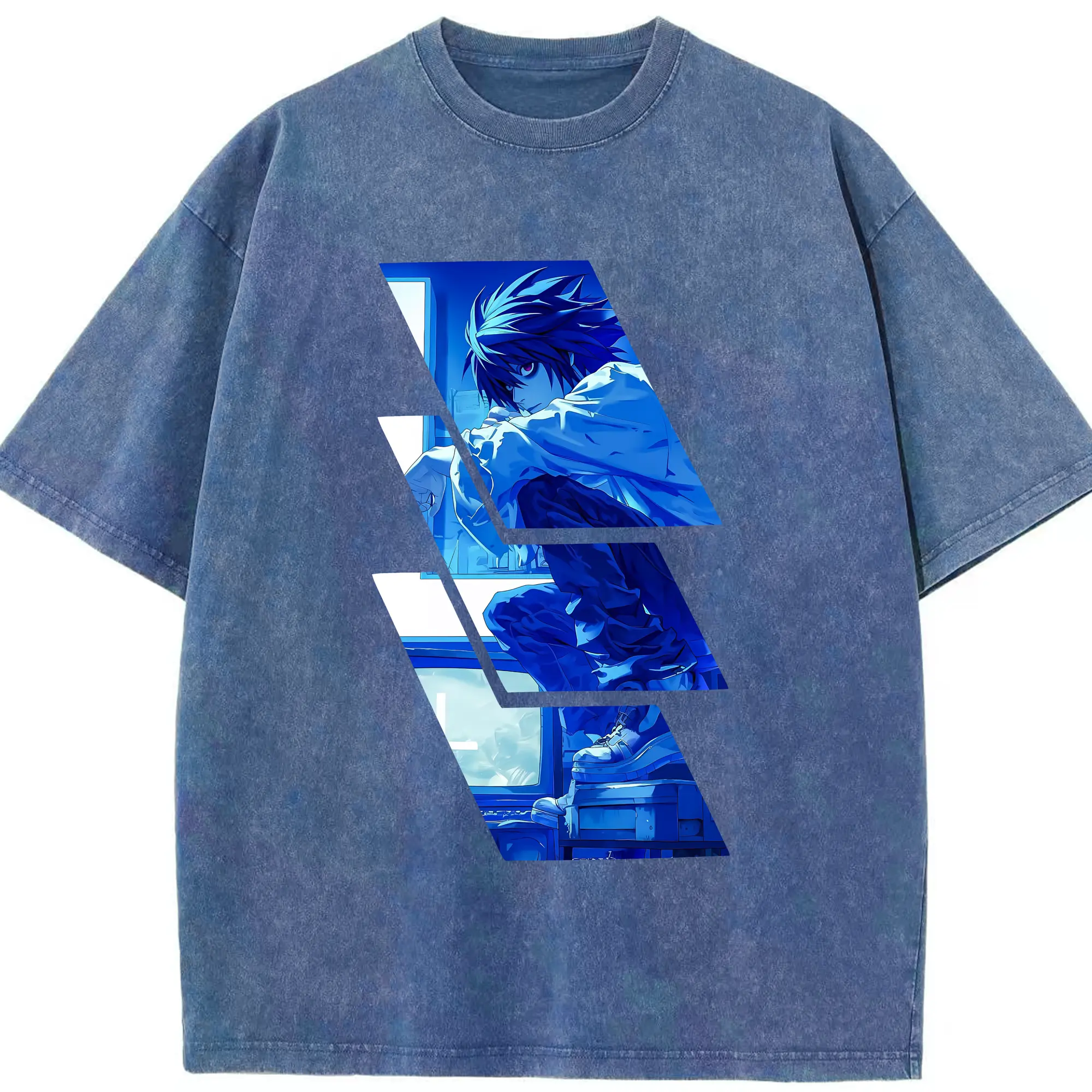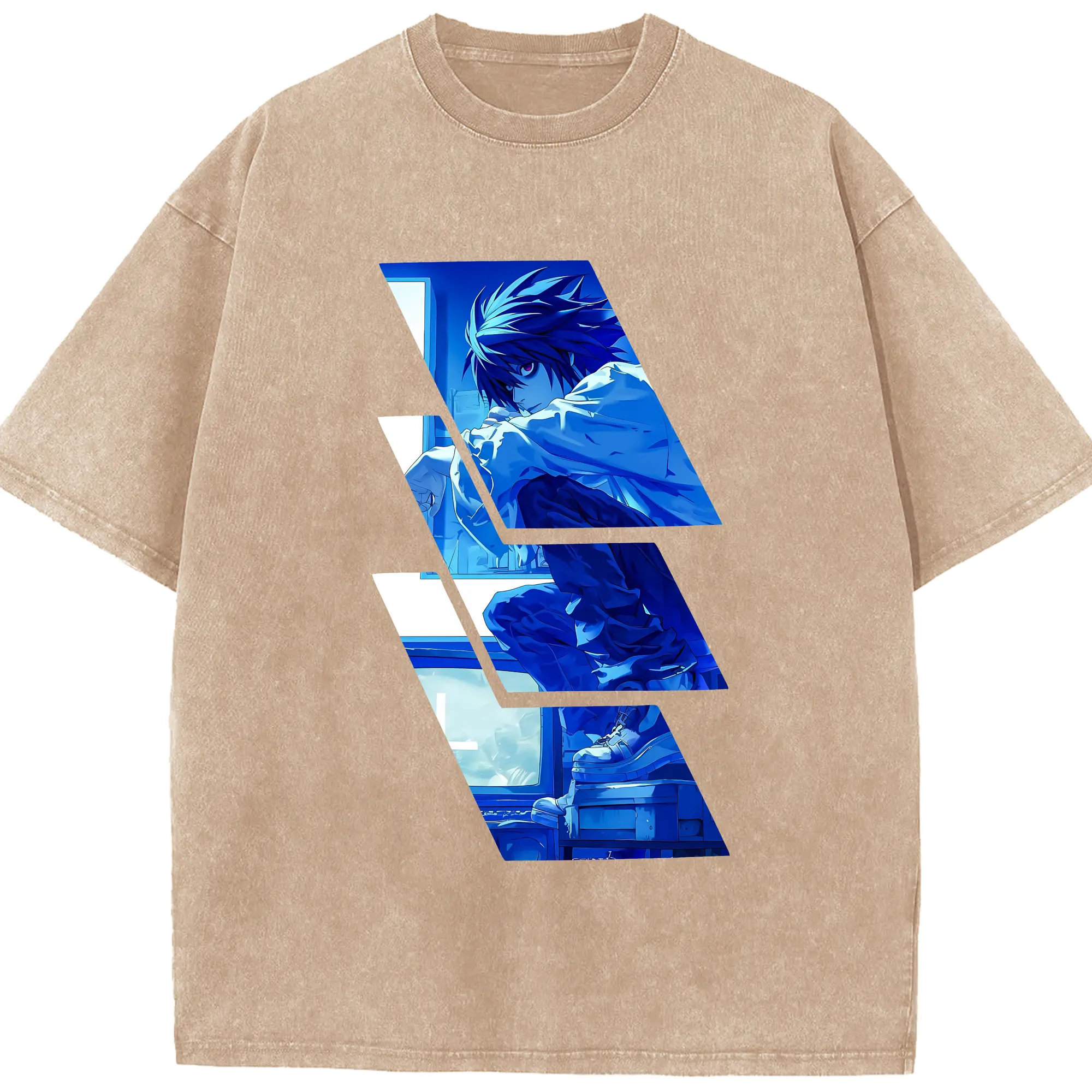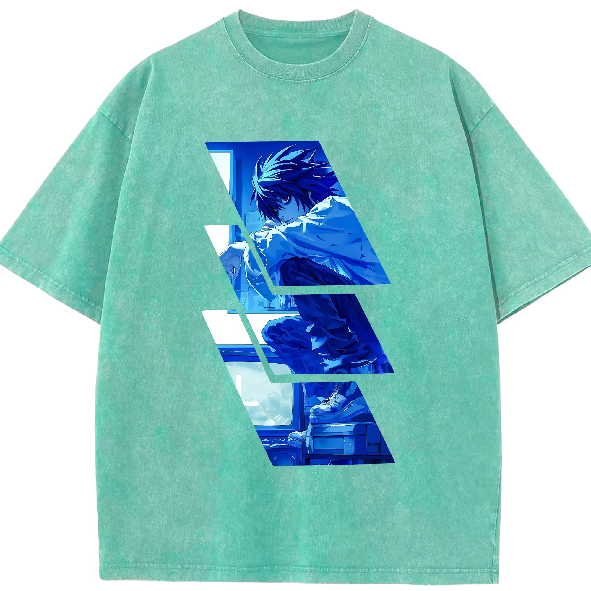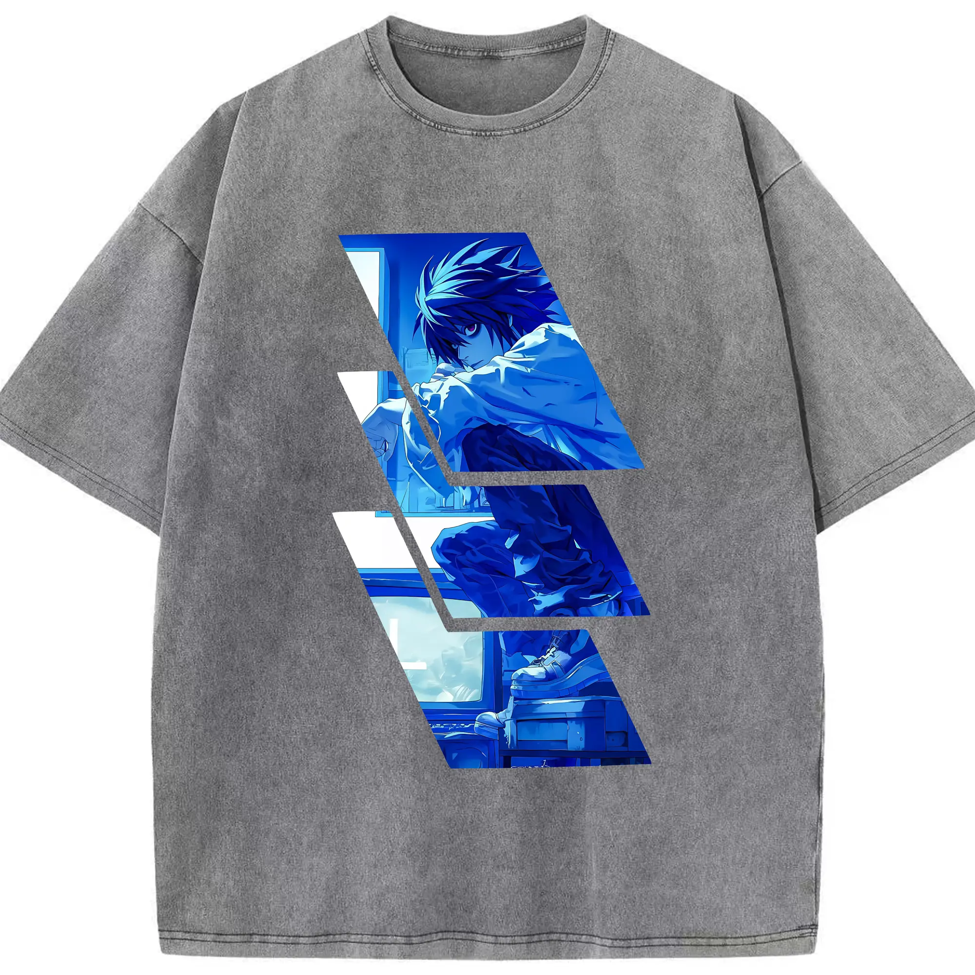 デスノート グッズ,L - 綿100% ヴィンテージ風 半袖Tシャツ ・ 背面プリント ・ 柔らか肌触り ・ 通気性 快適 ・ スポーツ カジュアル 外出用