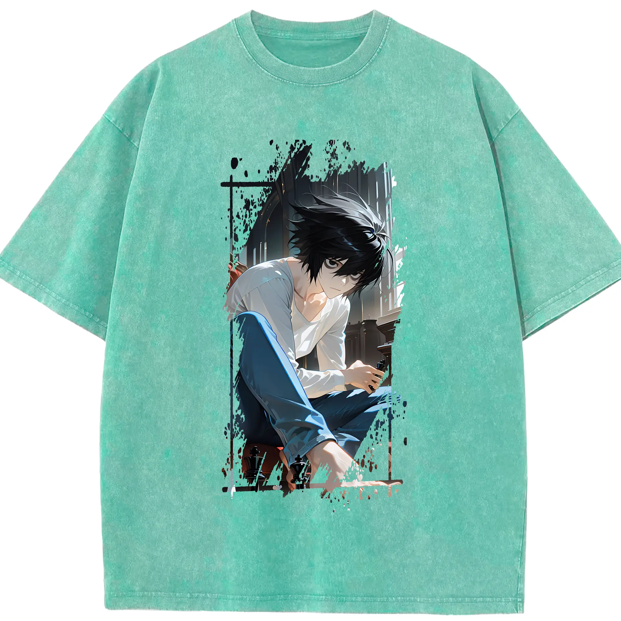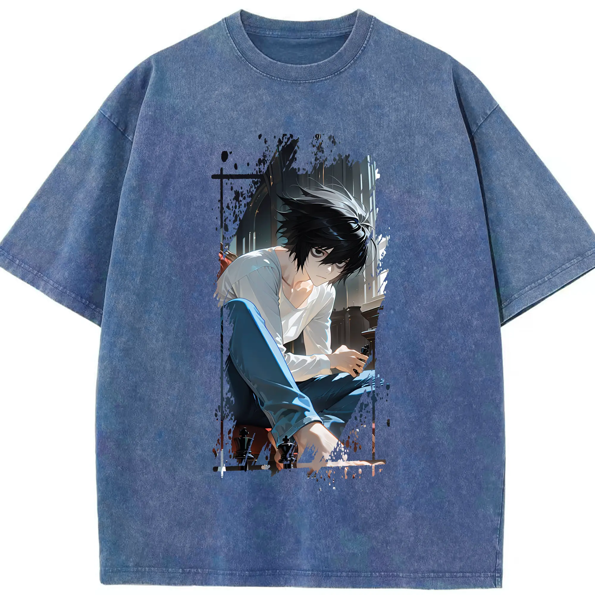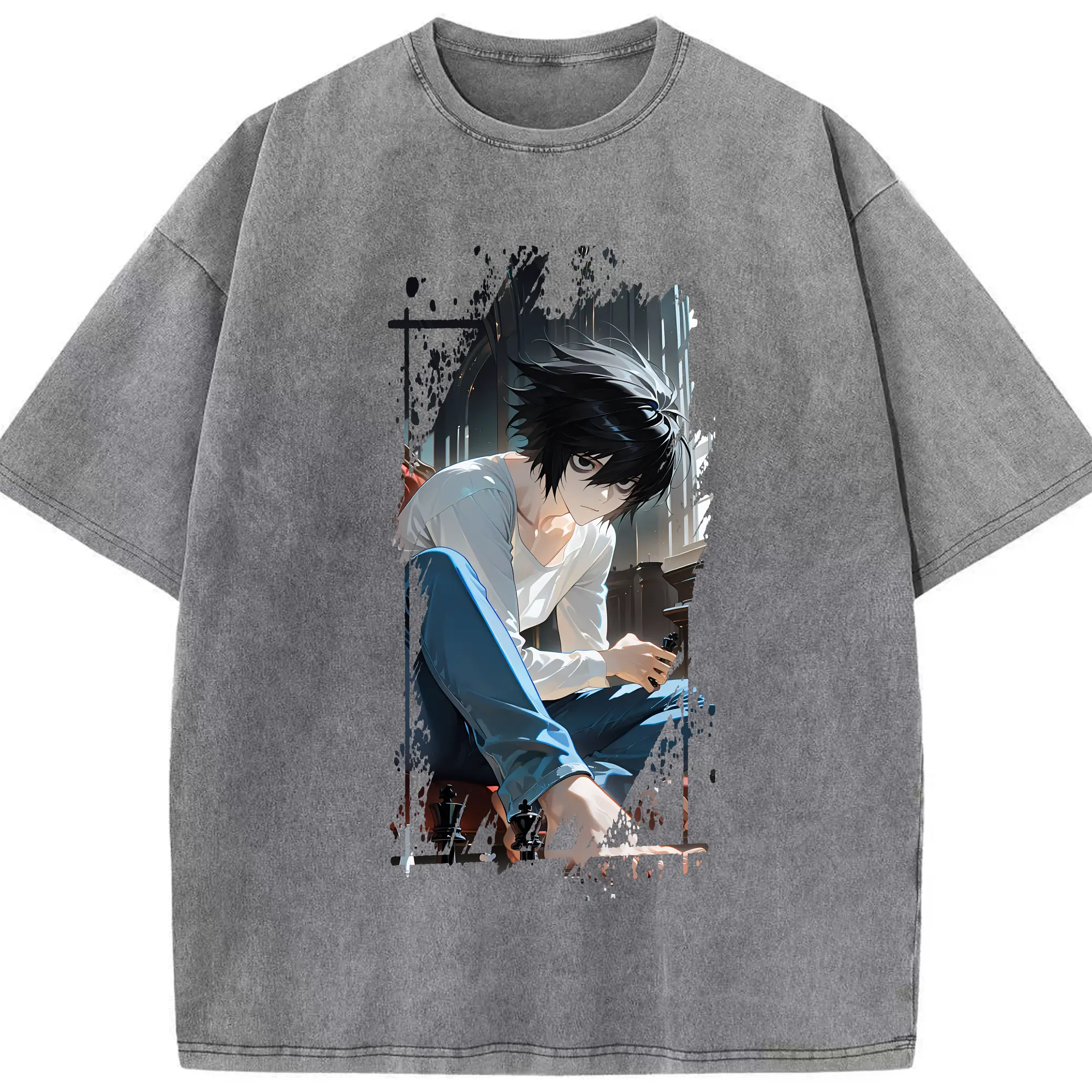 デスノート グッズ,L - 綿100% ヴィンテージ風 半袖Tシャツ ・ 背面プリント ・ 柔らか肌触り ・ 通気性 快適 ・ スポーツ カジュアル 外出用