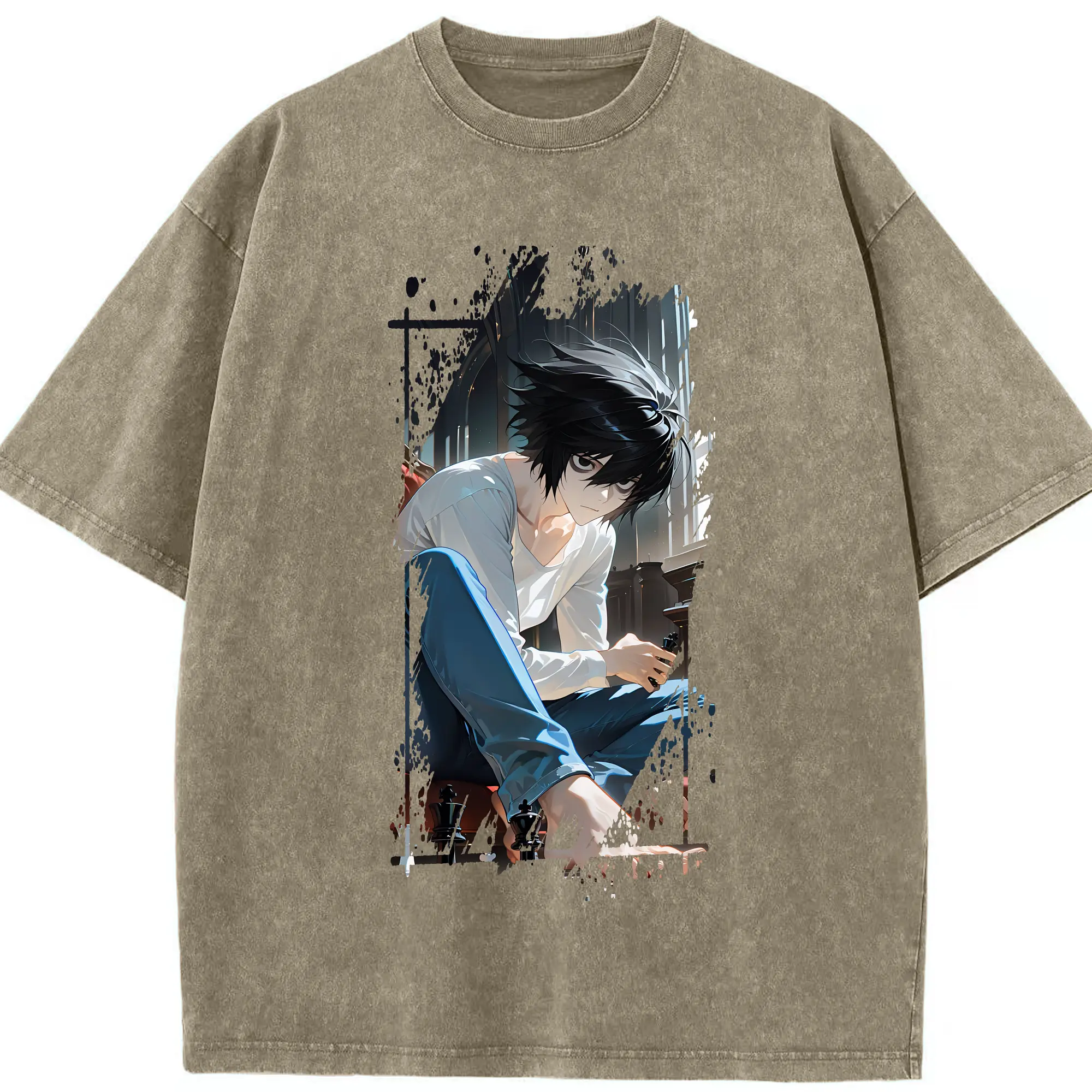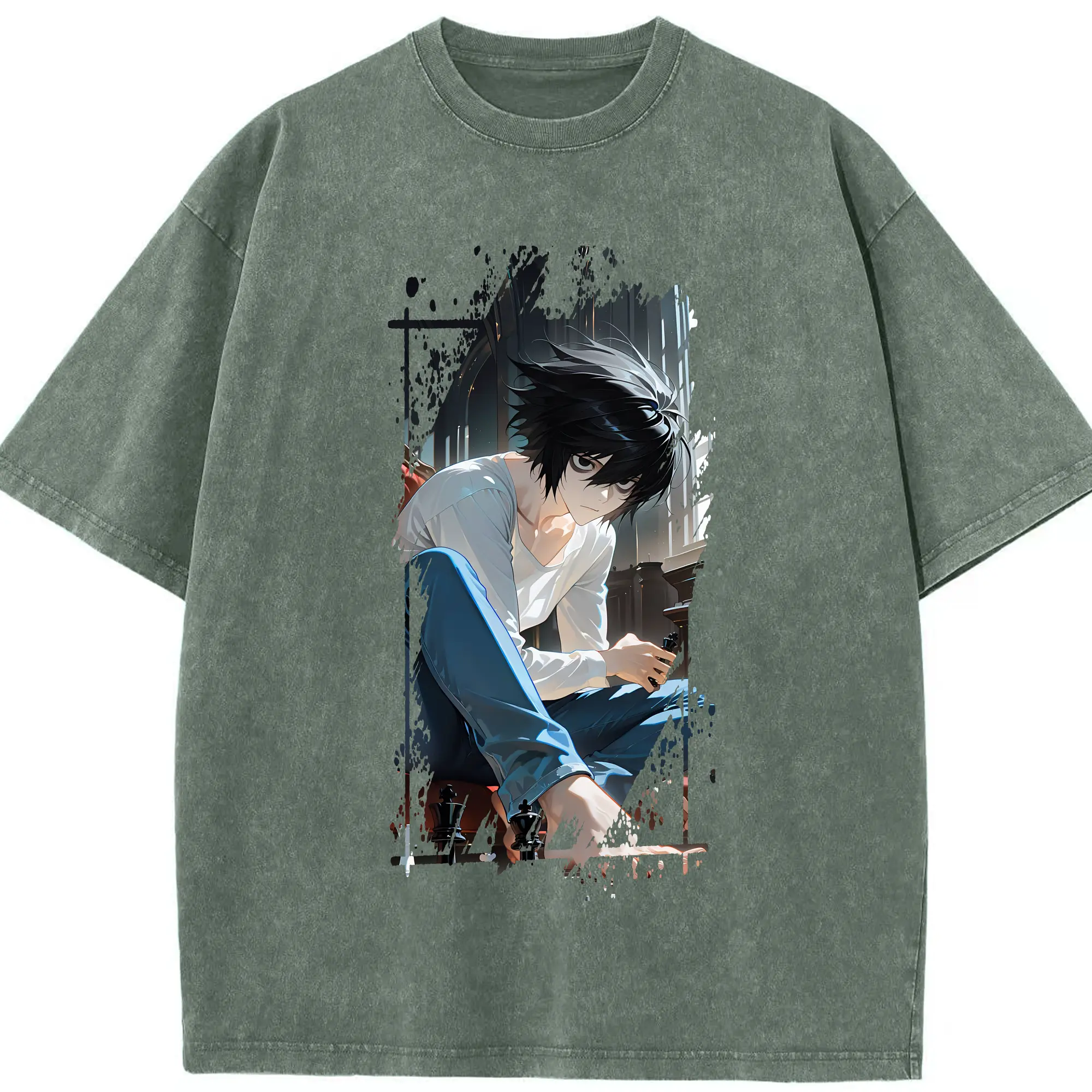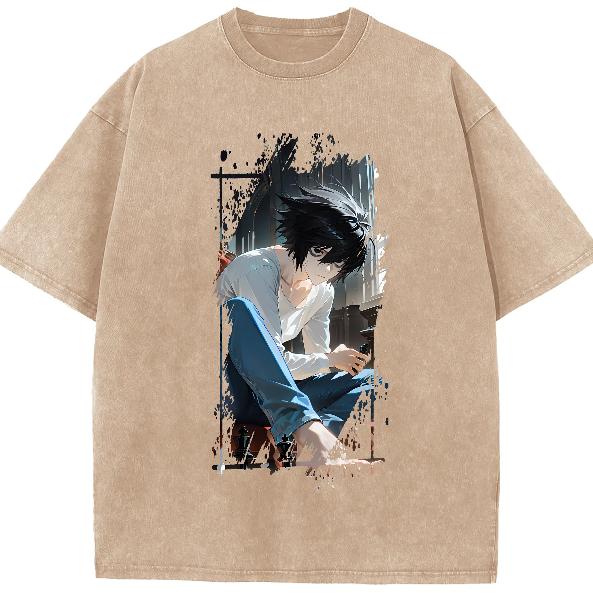 デスノート グッズ,L - 綿100% ヴィンテージ風 半袖Tシャツ ・ 背面プリント ・ 柔らか肌触り ・ 通気性 快適 ・ スポーツ カジュアル 外出用