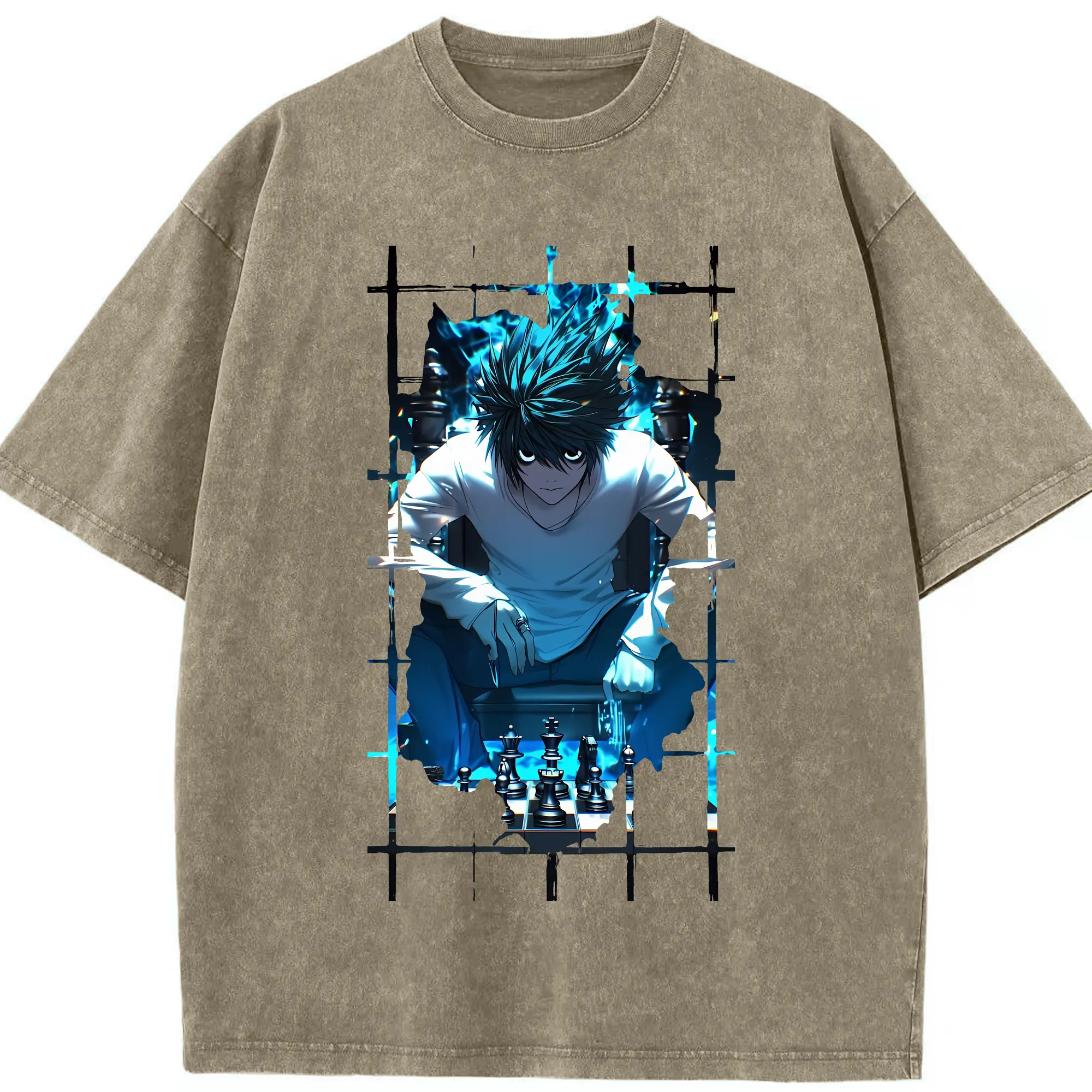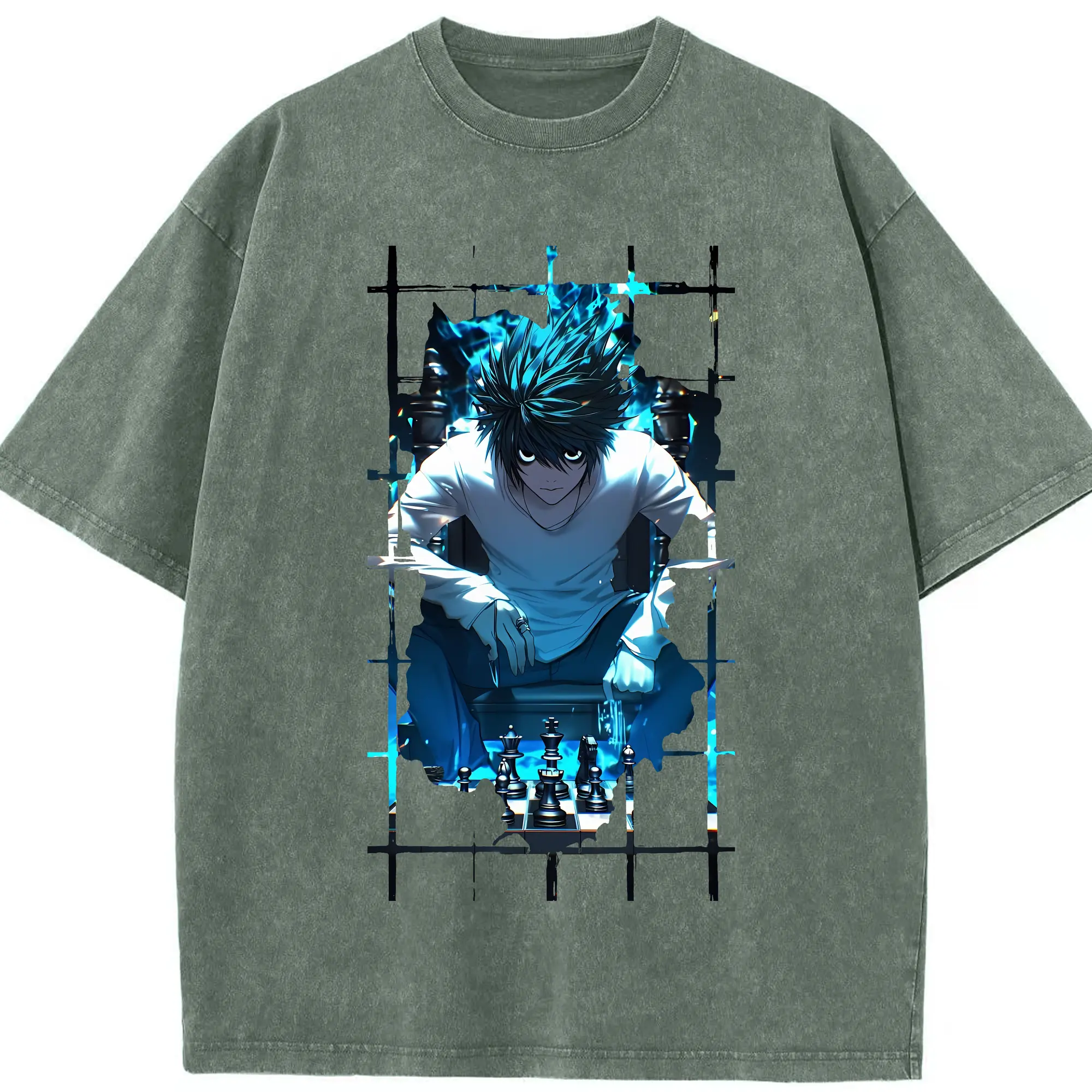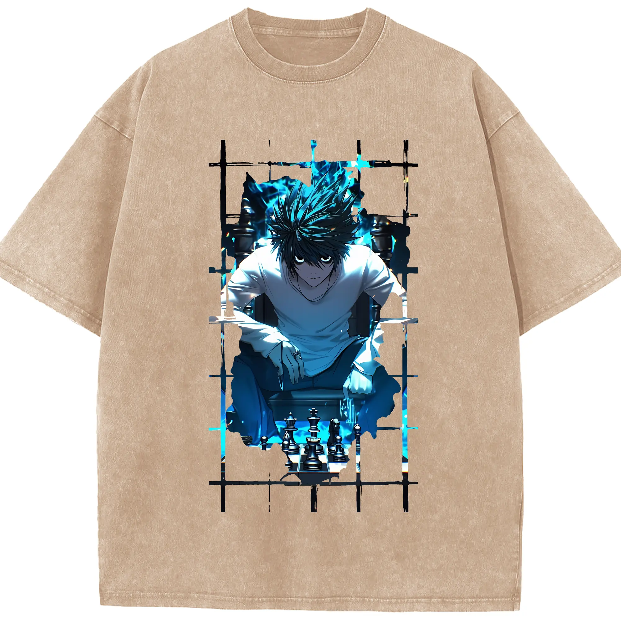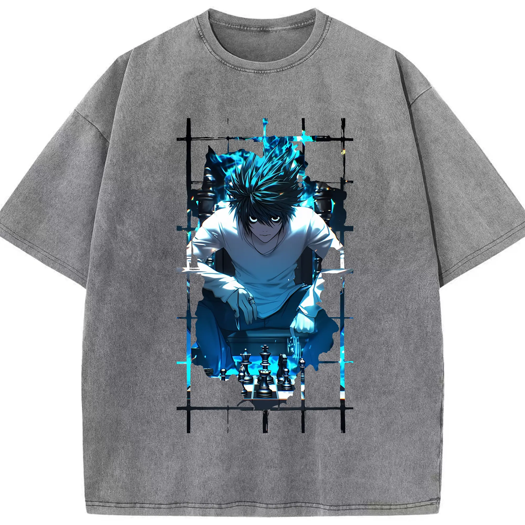 デスノート グッズ,L - 綿100% ヴィンテージ風 半袖Tシャツ ・ 背面プリント ・ 柔らか肌触り ・ 通気性 快適 ・ スポーツ カジュアル 外出用