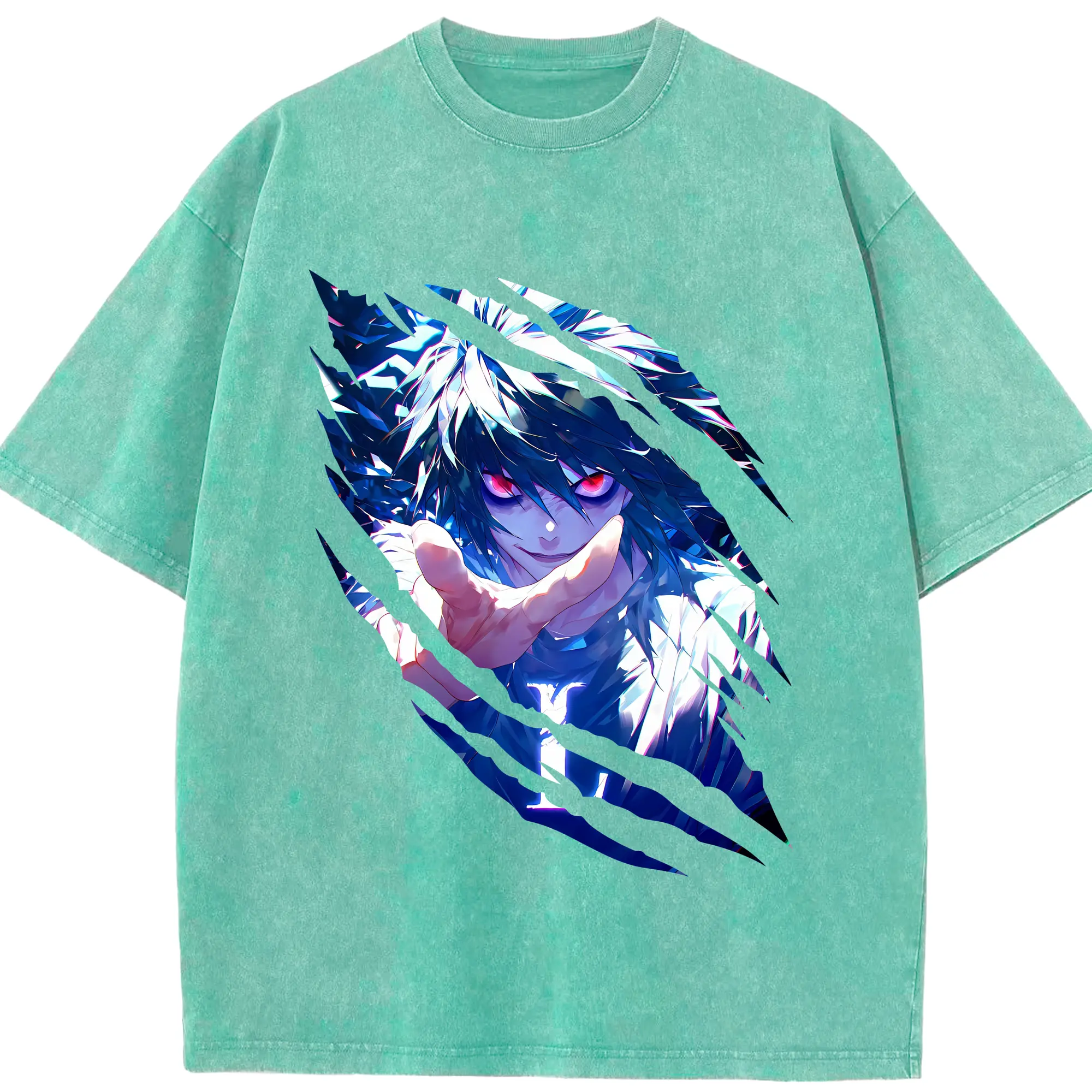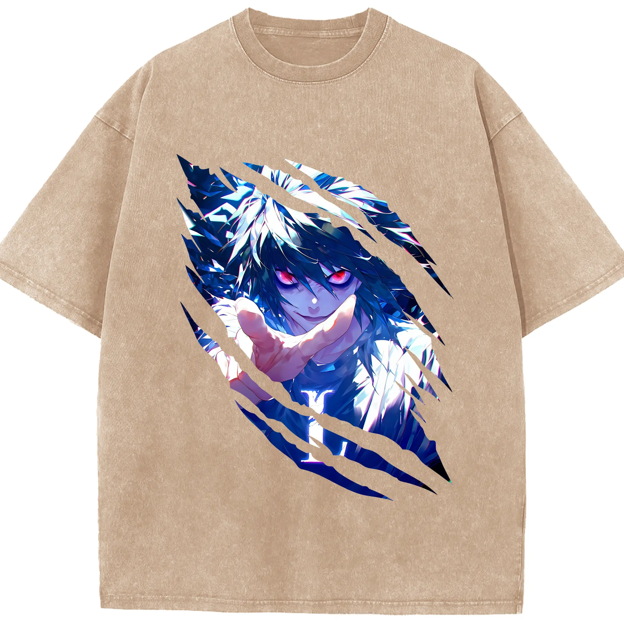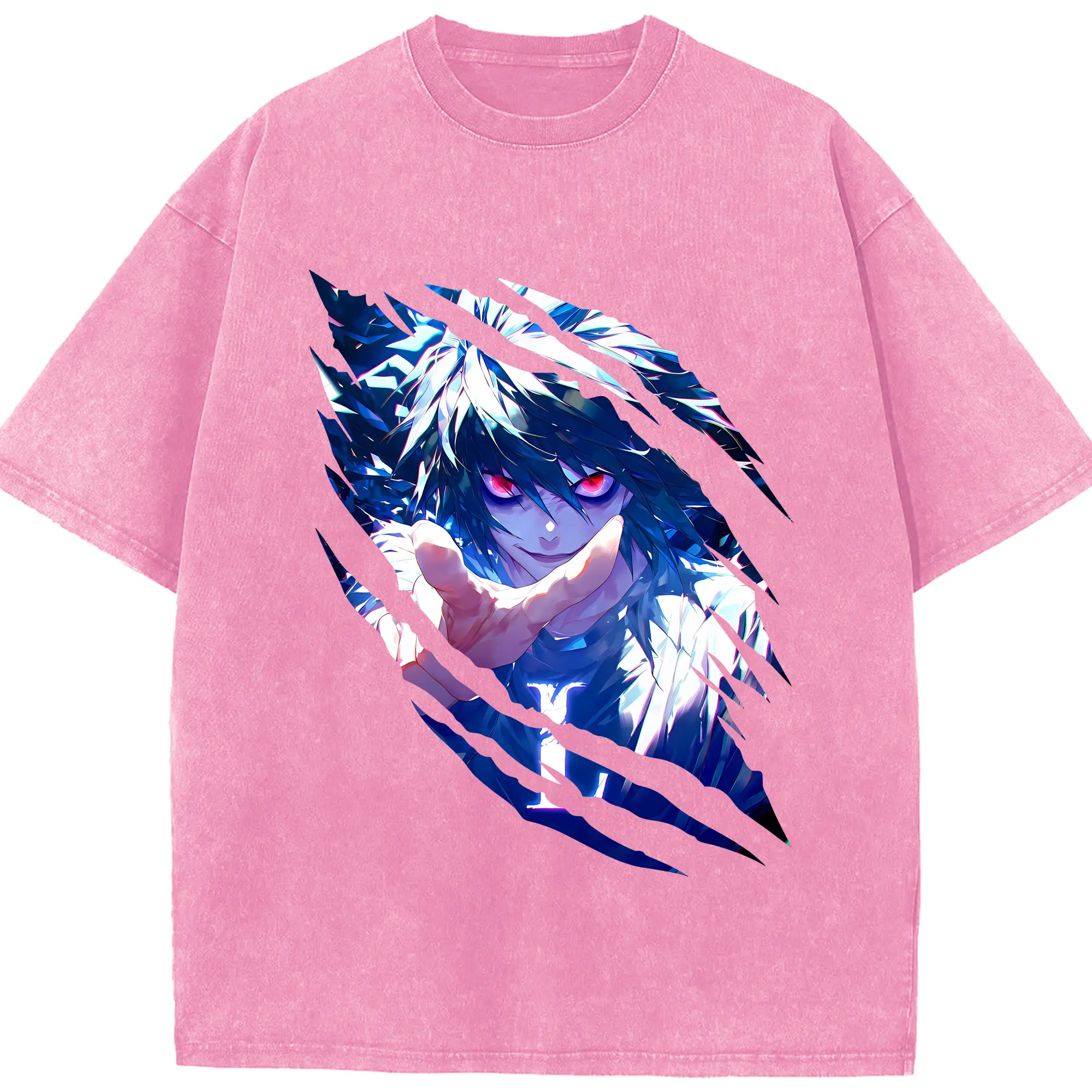 デスノート グッズ,L - 綿100% ヴィンテージ風 半袖Tシャツ ・ 背面プリント ・ 柔らか肌触り ・ 通気性 快適 ・ スポーツ カジュアル 外出用