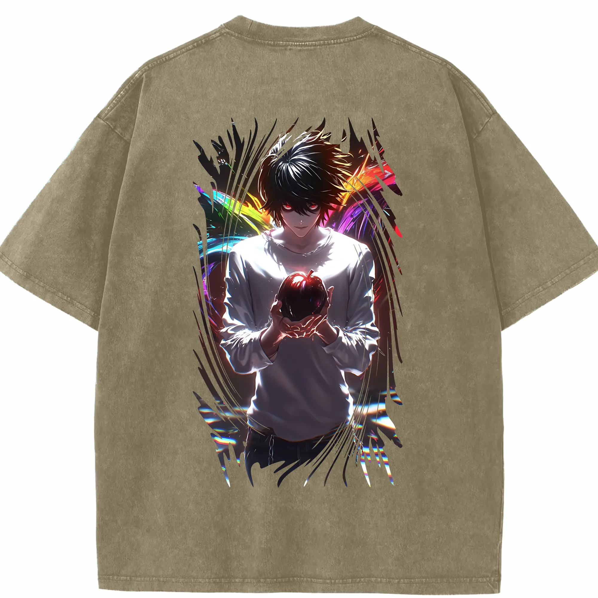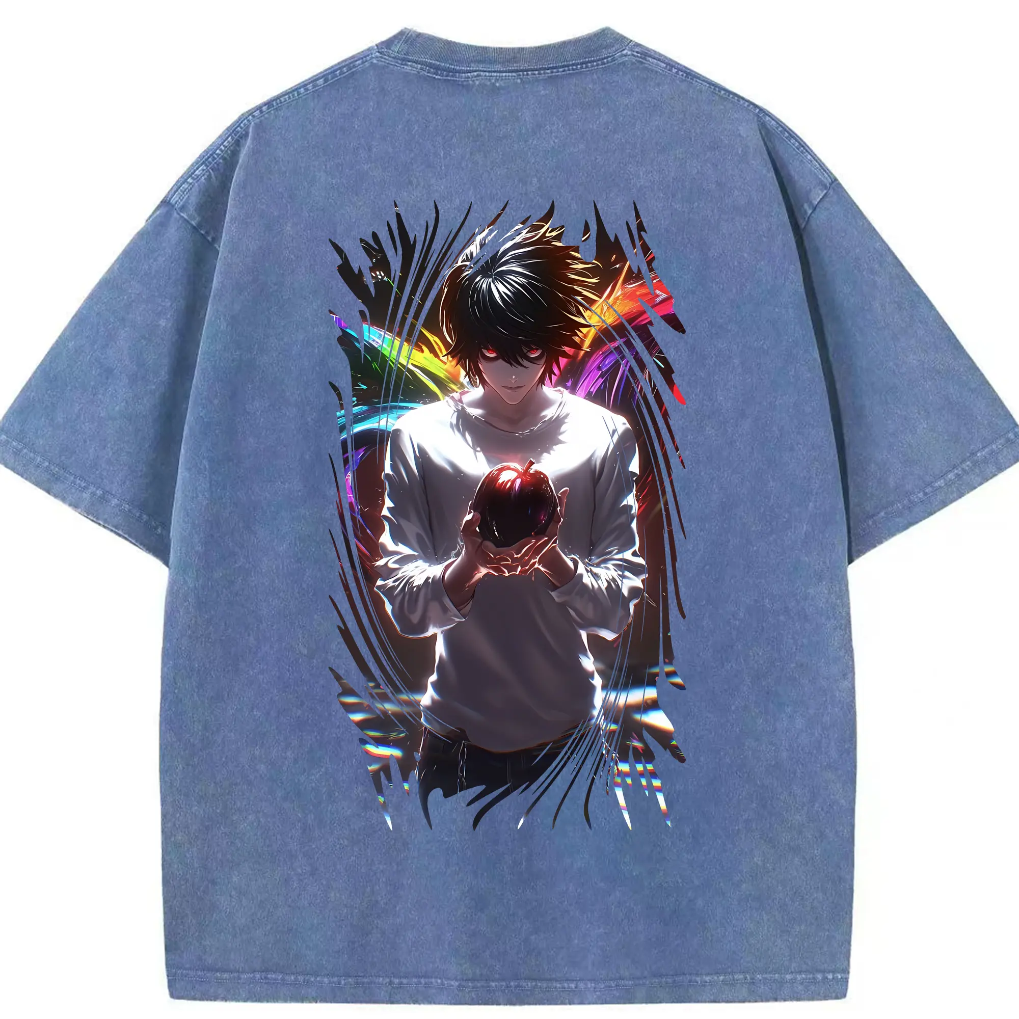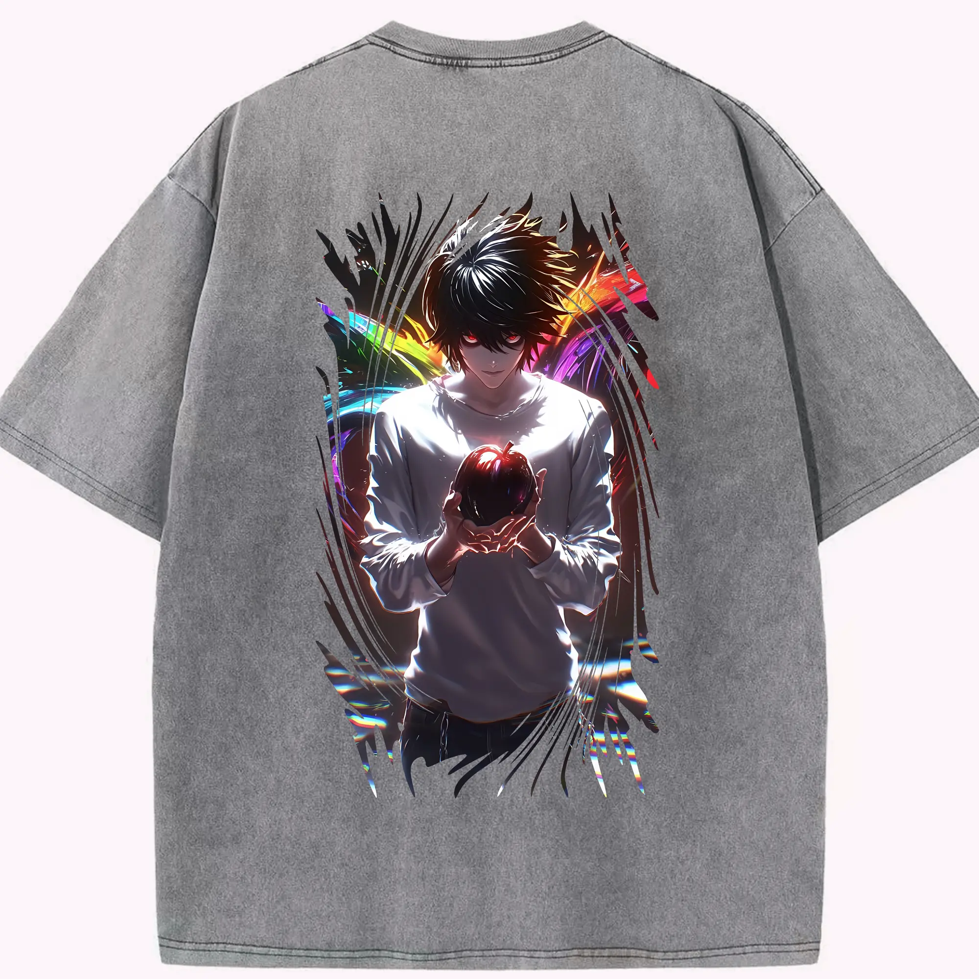 デスノート グッズ,L - 綿100% ヴィンテージ風 半袖Tシャツ ・ フロントプリント ・ 柔らか肌触り ・ 通気性 快適 ・ スポーツ カジュアル 外出用
