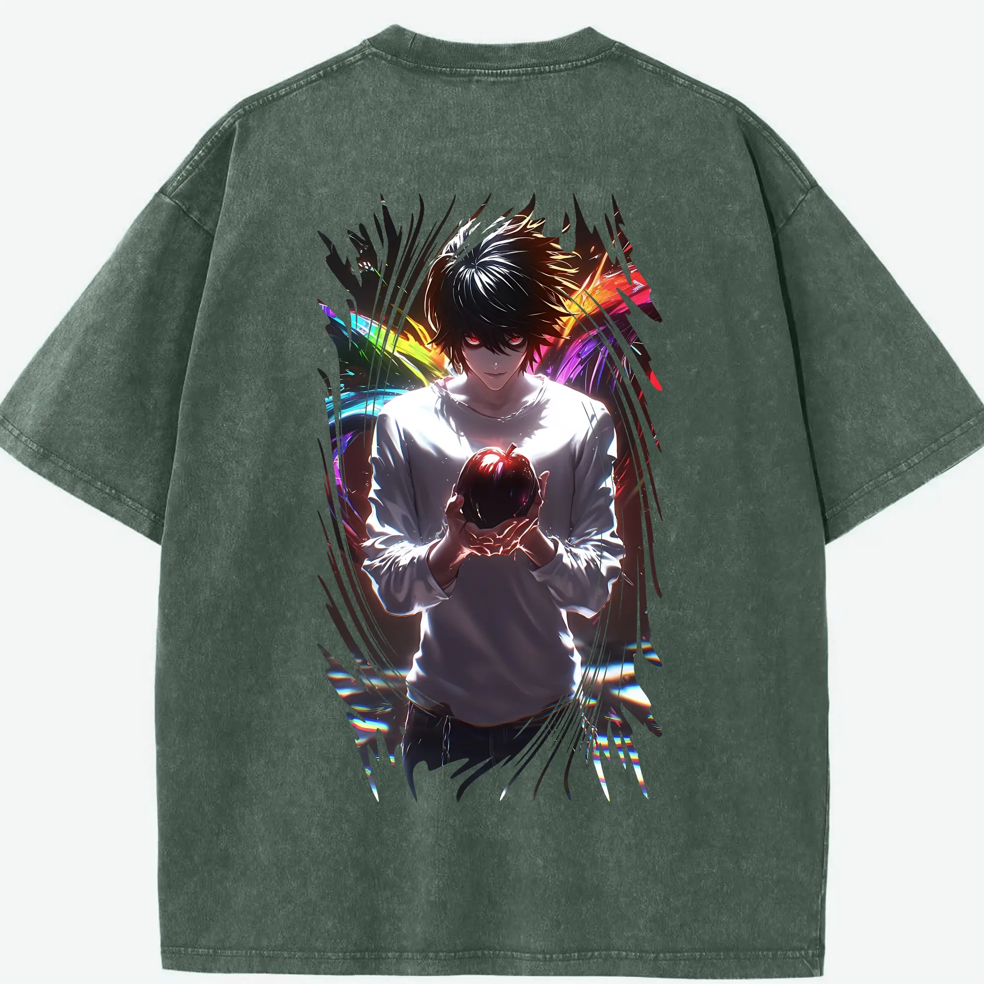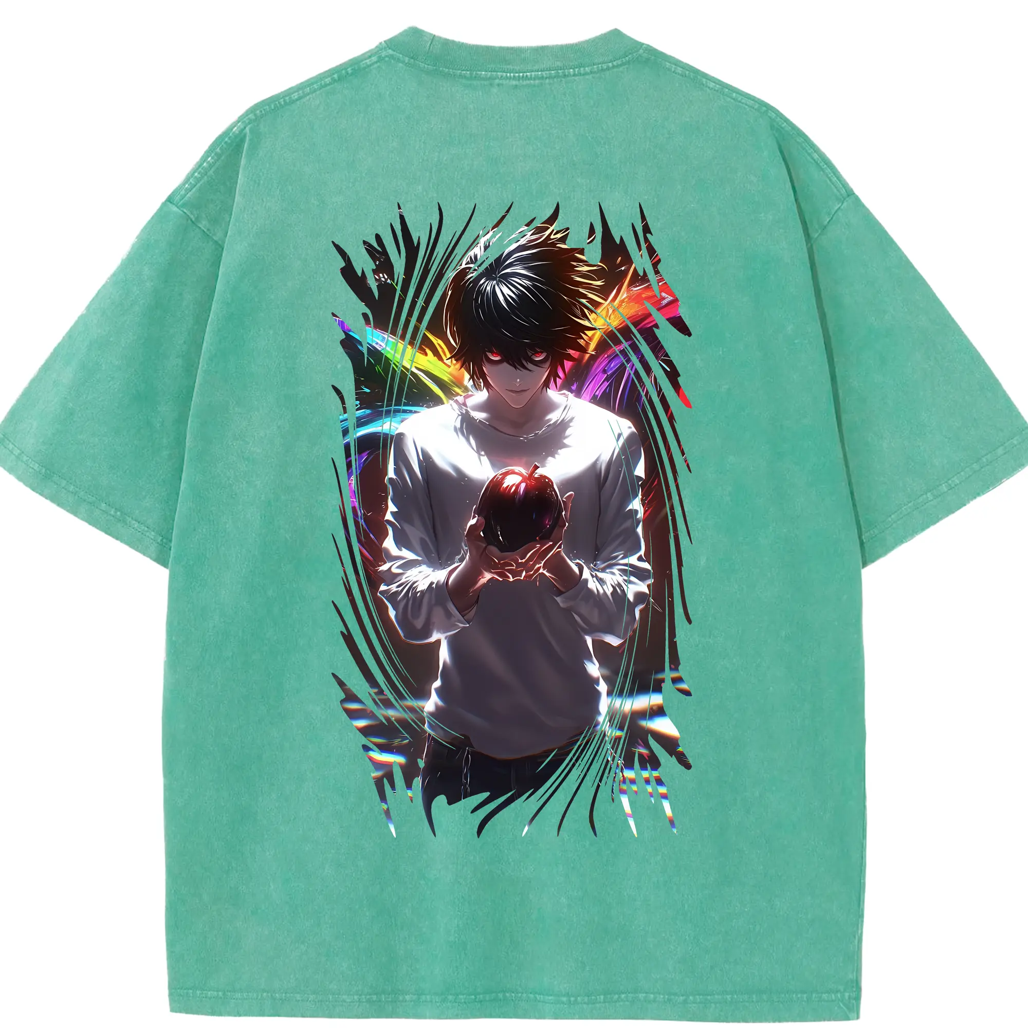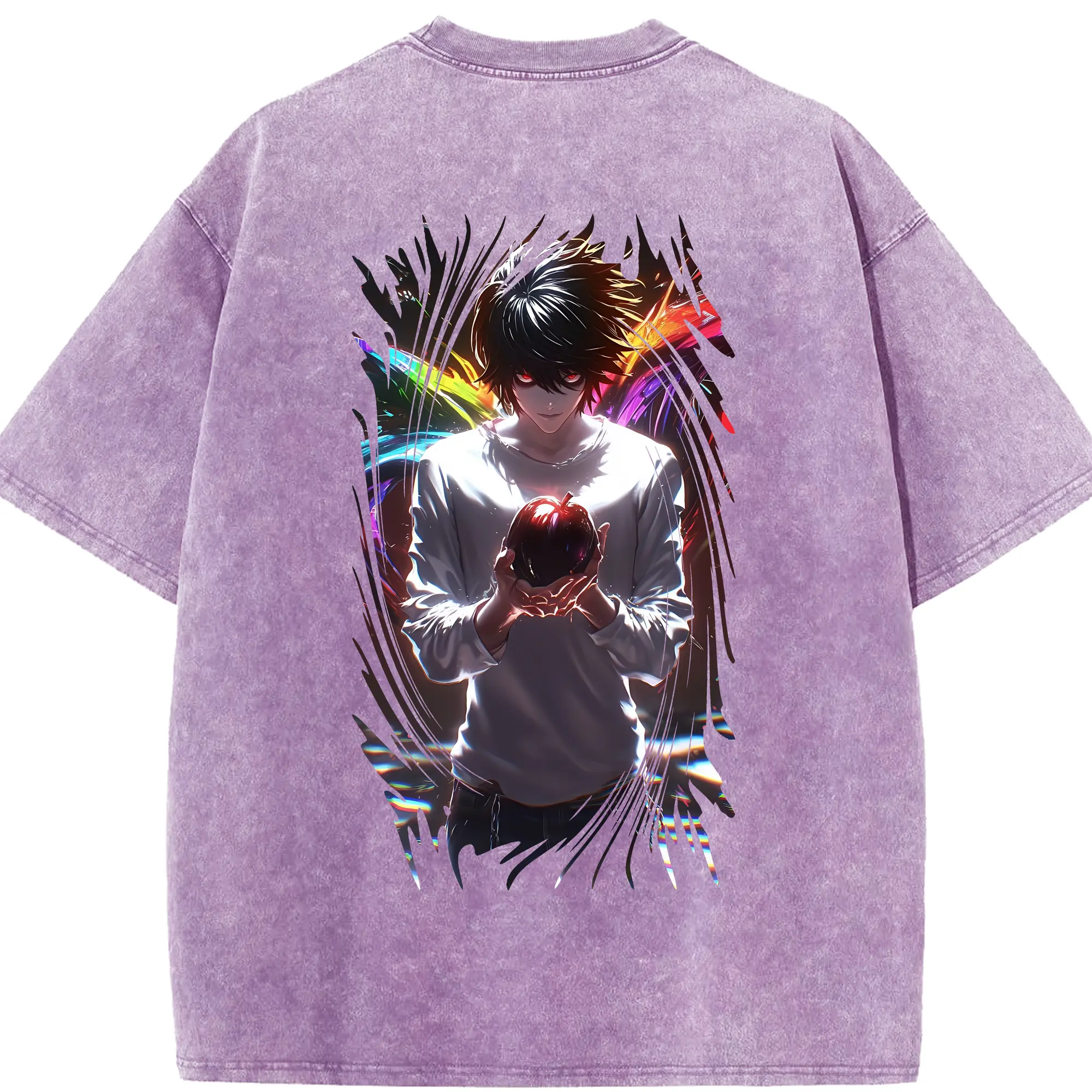 デスノート グッズ,L - 綿100% ヴィンテージ風 半袖Tシャツ ・ フロントプリント ・ 柔らか肌触り ・ 通気性 快適 ・ スポーツ カジュアル 外出用