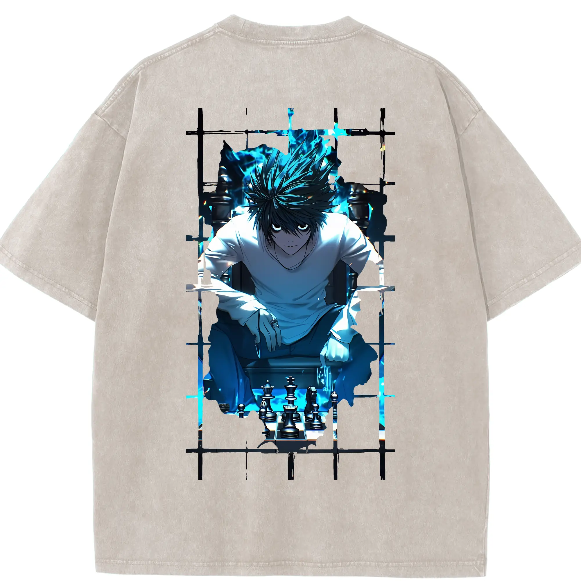 デスノート グッズ,L - 綿100% 半袖Tシャツ ・ バックプリント ・ 快適 通気性 ・ 日常使い 散歩 スポーツ用