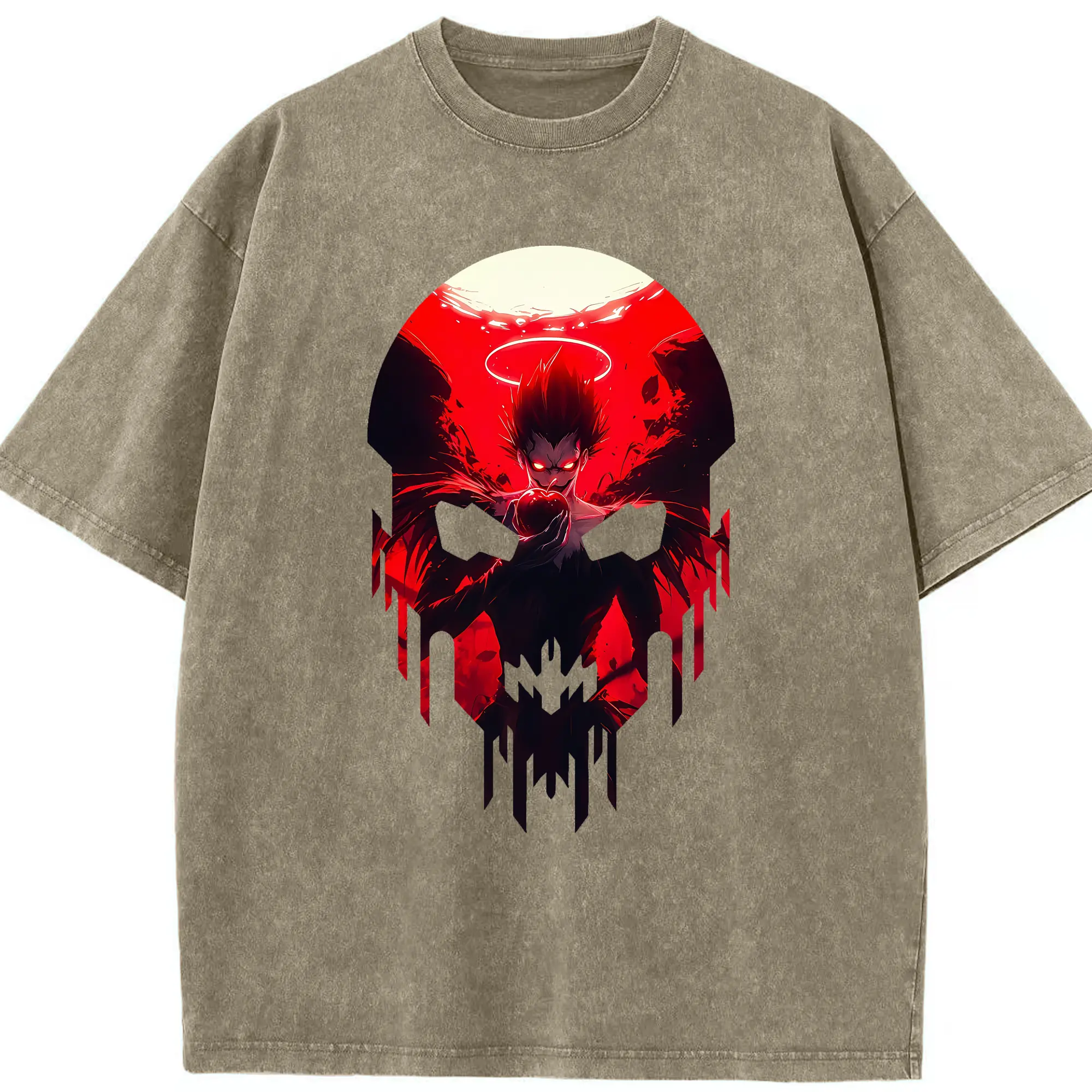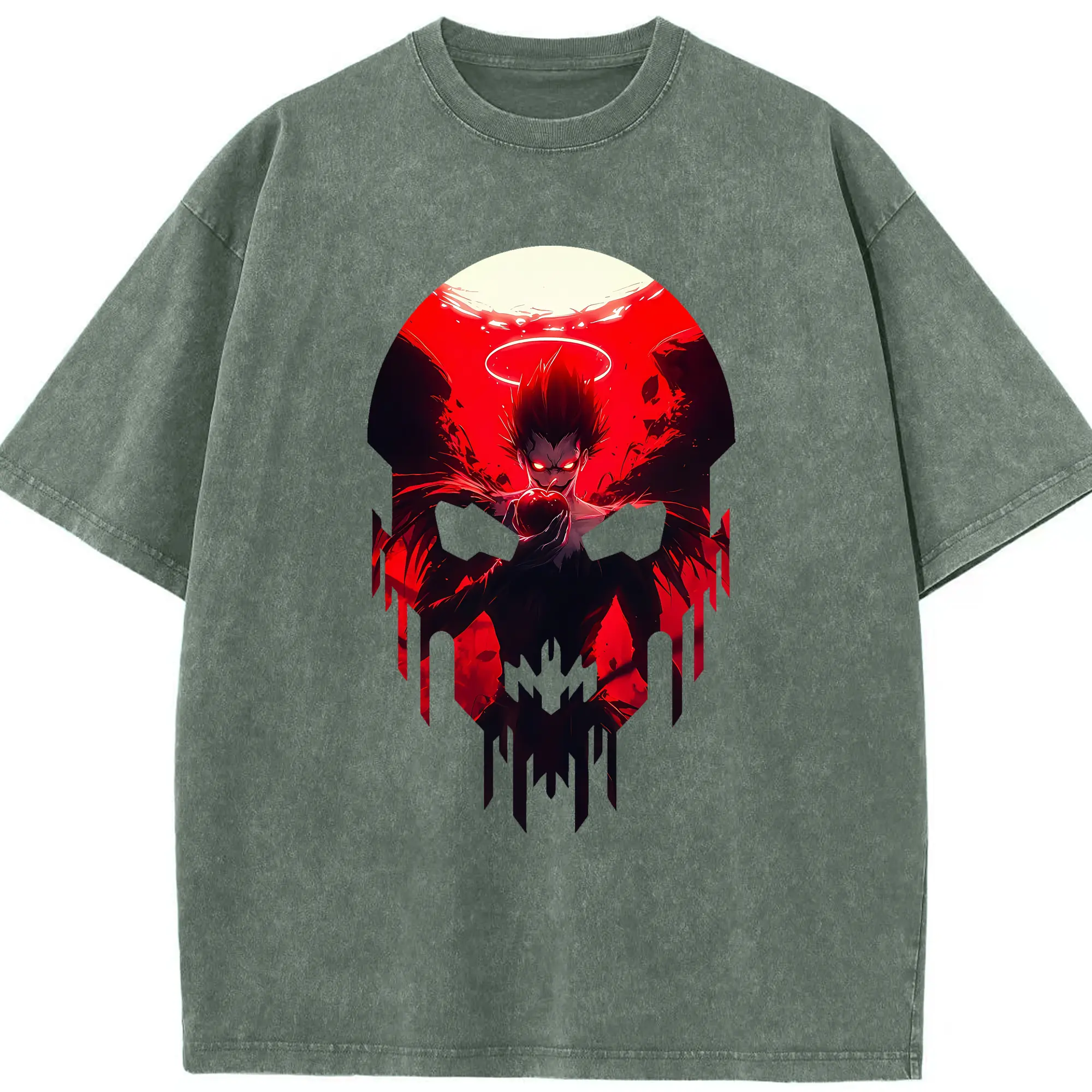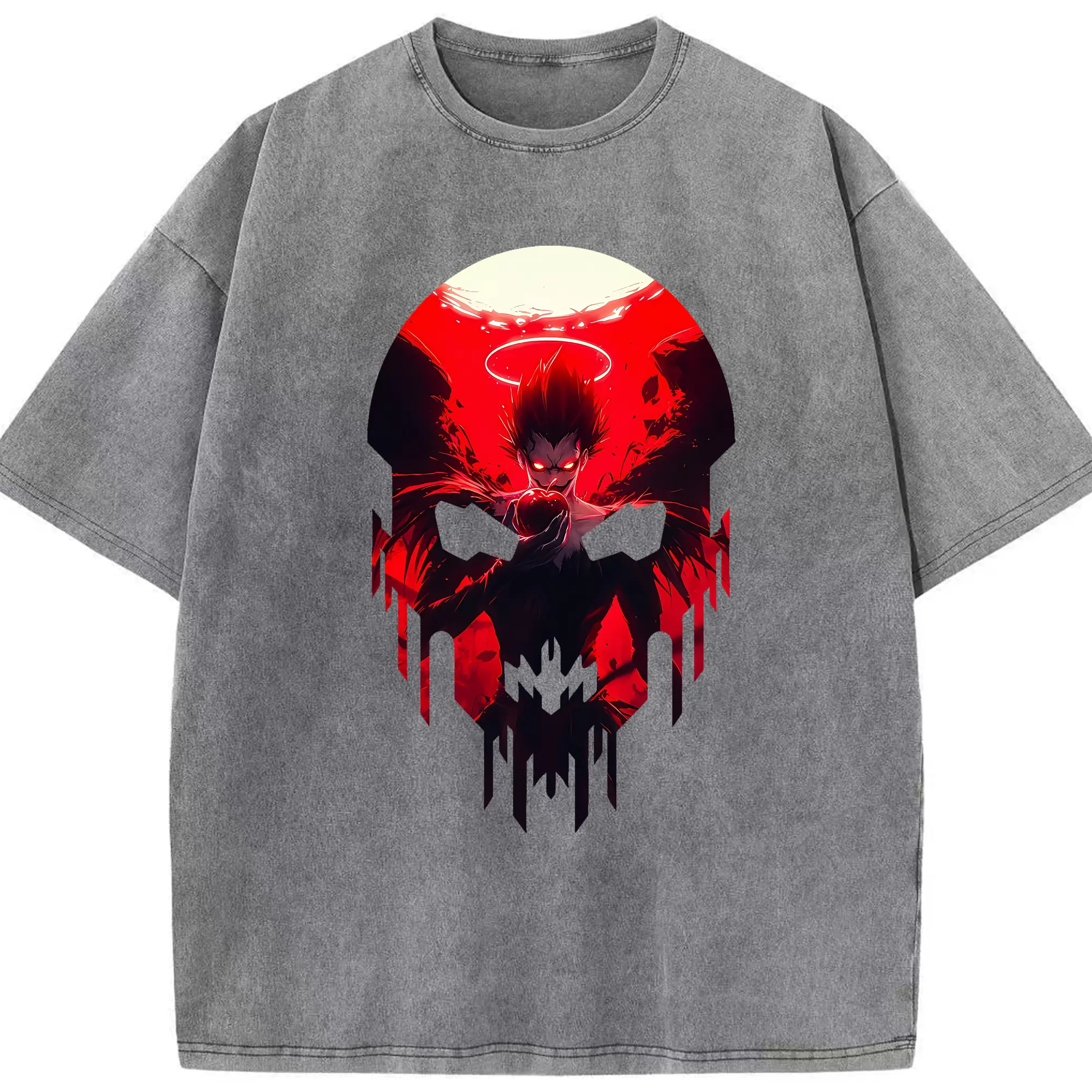 デスノート グッズ,リューク - 綿100% ヴィンテージ風 半袖Tシャツ ・ 背面プリント ・ 柔らか肌触り ・ 通気性 快適 ・ スポーツ カジュアル 外出用
