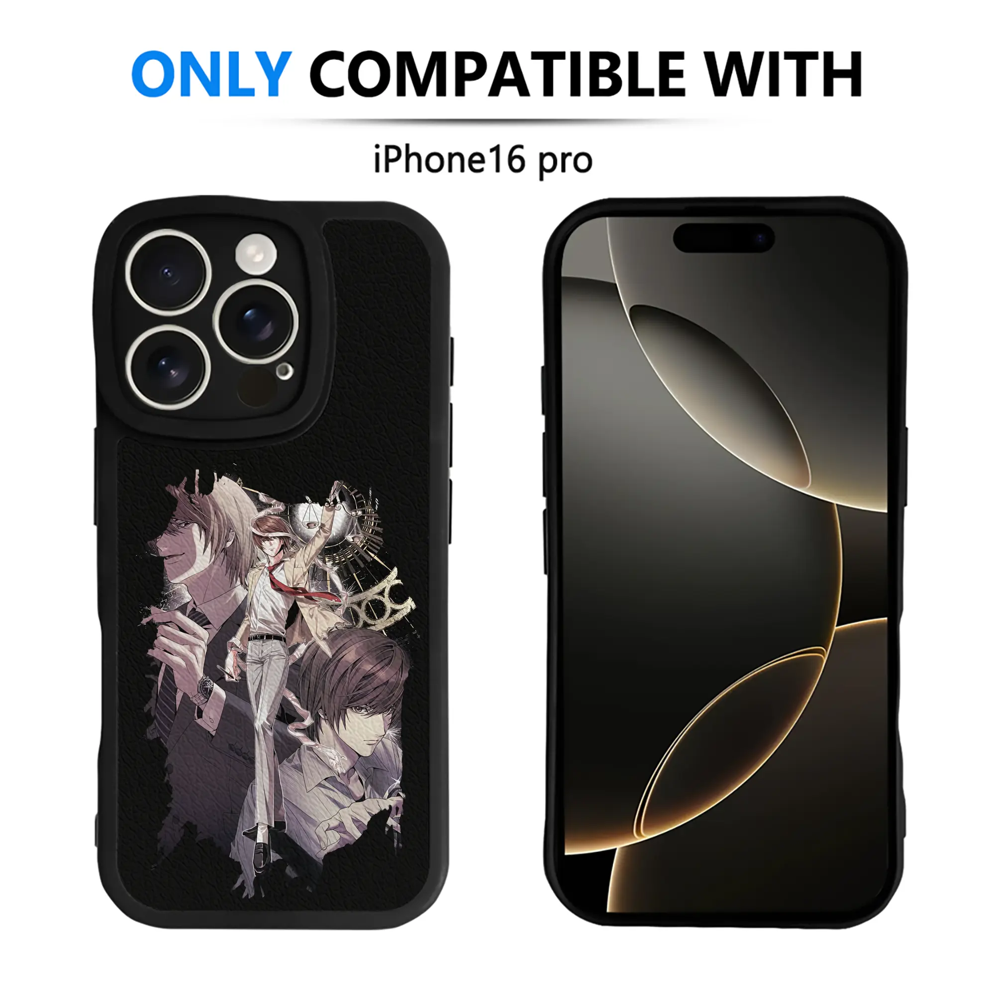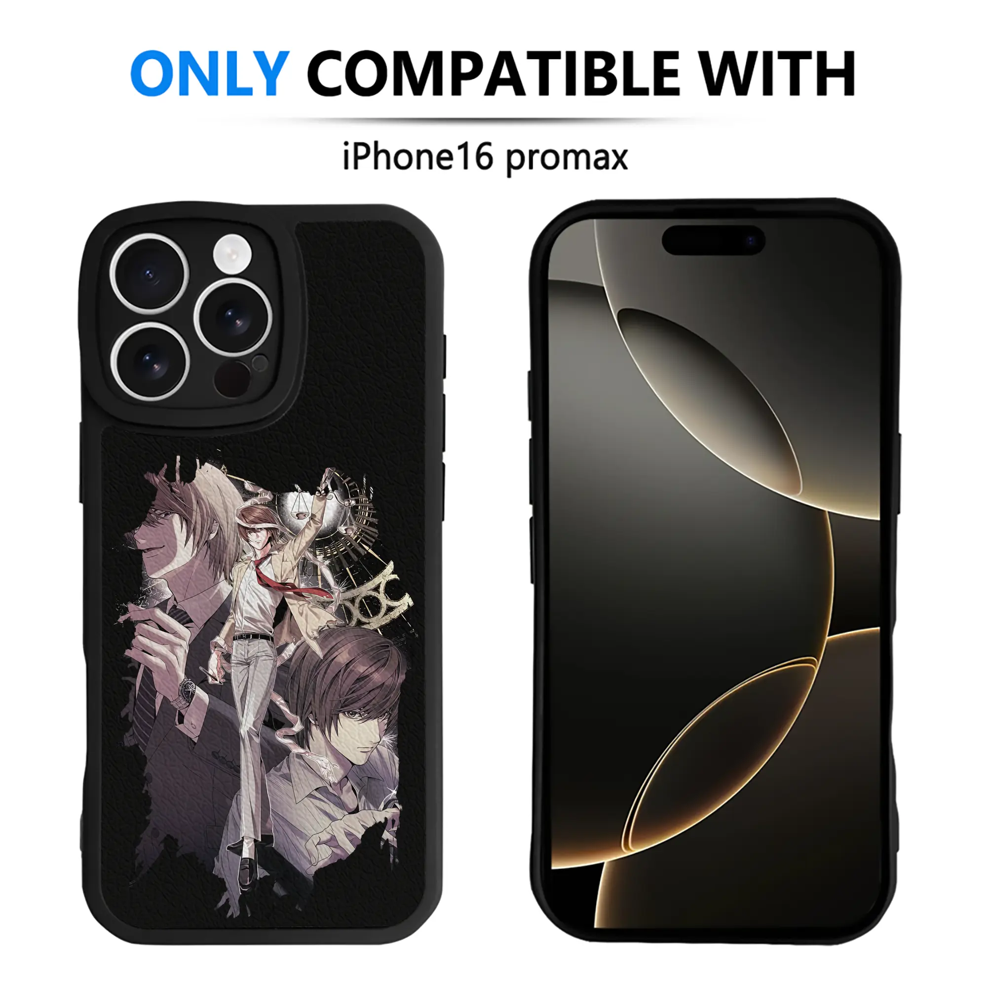 デスノート グッズ,夜神月 - IPhone 16シリーズ対応 ・ シリコンスマホケース ・ レザー調 ・ 高精度フィット ・ 耐衝撃 ・ ワイヤレス充電対応 ・ 精密カット