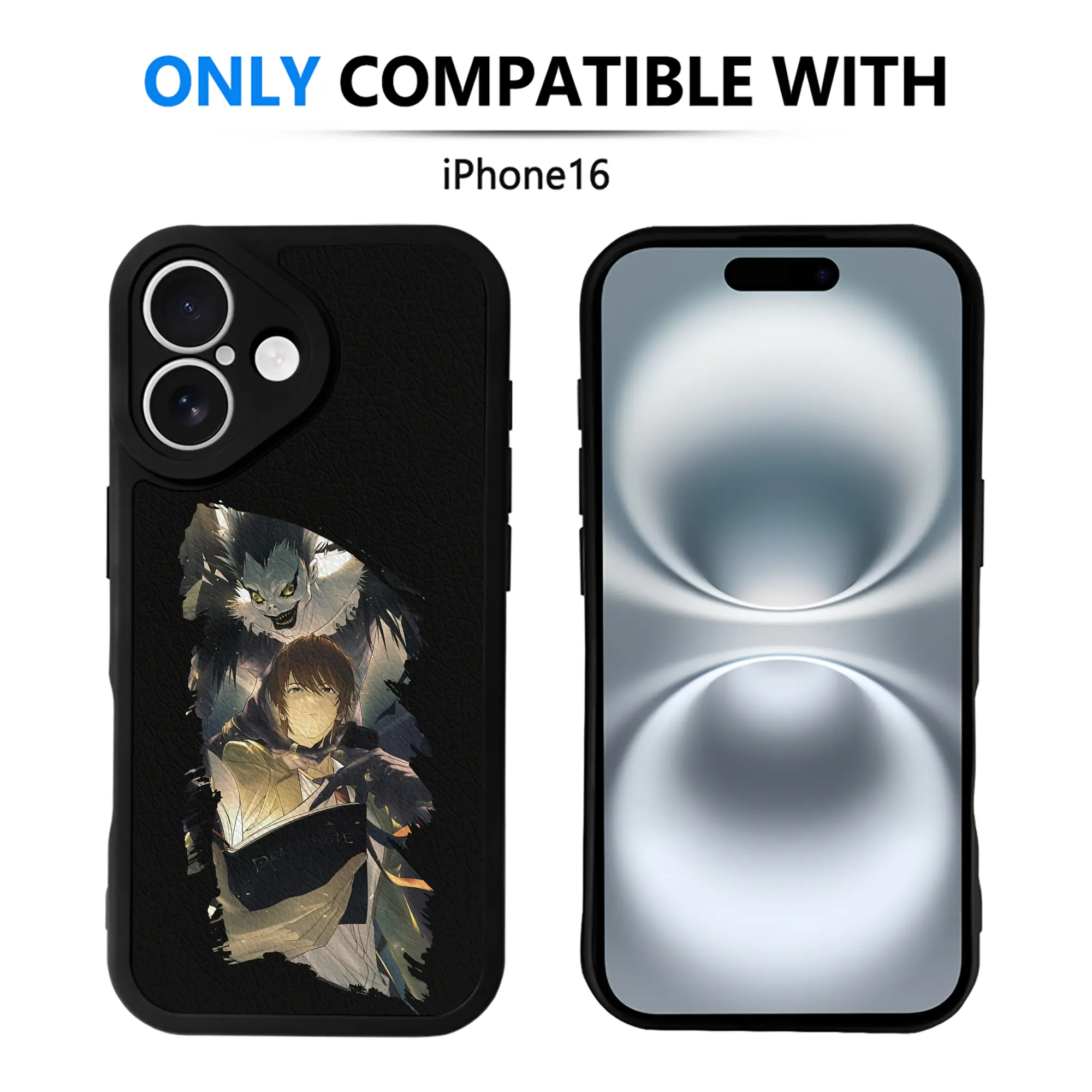 デスノート グッズ,夜神月 - IPhone 16シリーズ対応 ・ シリコンスマホケース ・ レザー調 ・ 高精度フィット ・ 耐衝撃 ・ ワイヤレス充電対応 ・ 精密カット