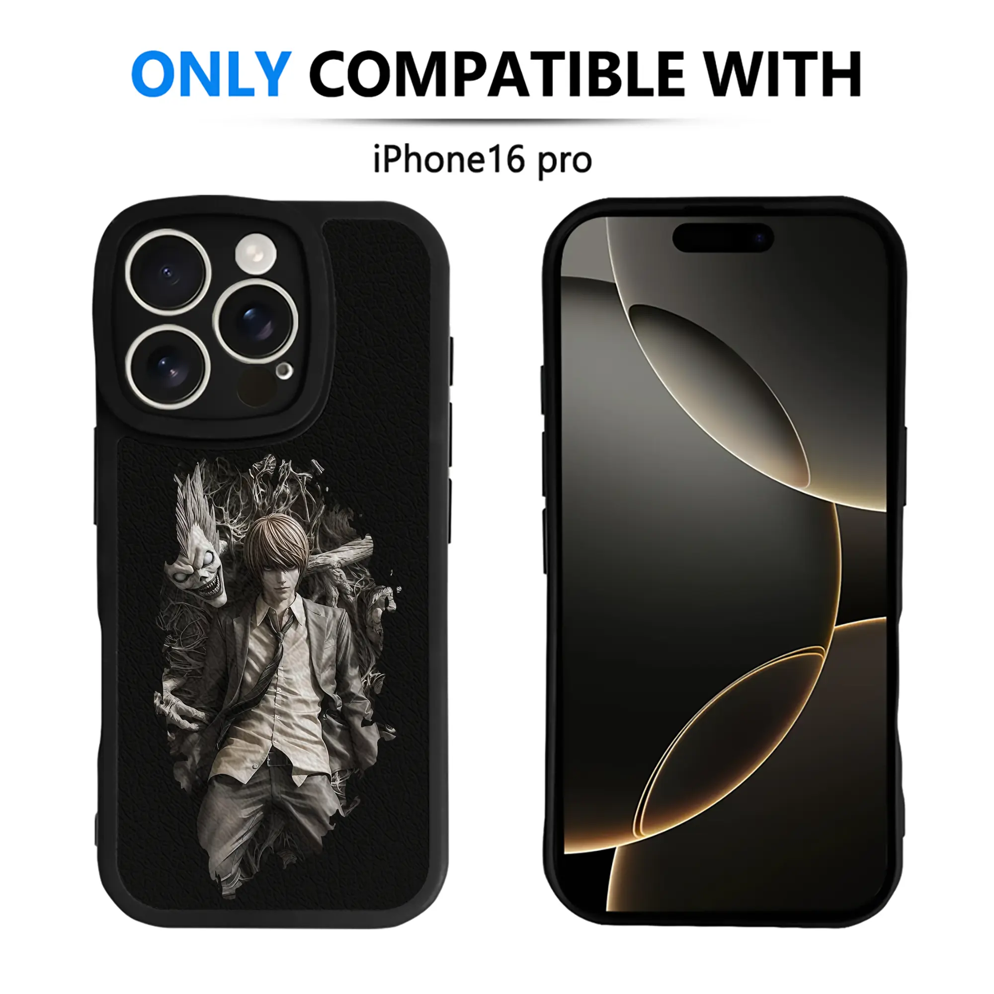 デスノート グッズ,夜神月 - IPhone 16シリーズ対応 ・ シリコンスマホケース ・ レザー調 ・ 高精度フィット ・ 耐衝撃 ・ ワイヤレス充電対応 ・ 精密カット