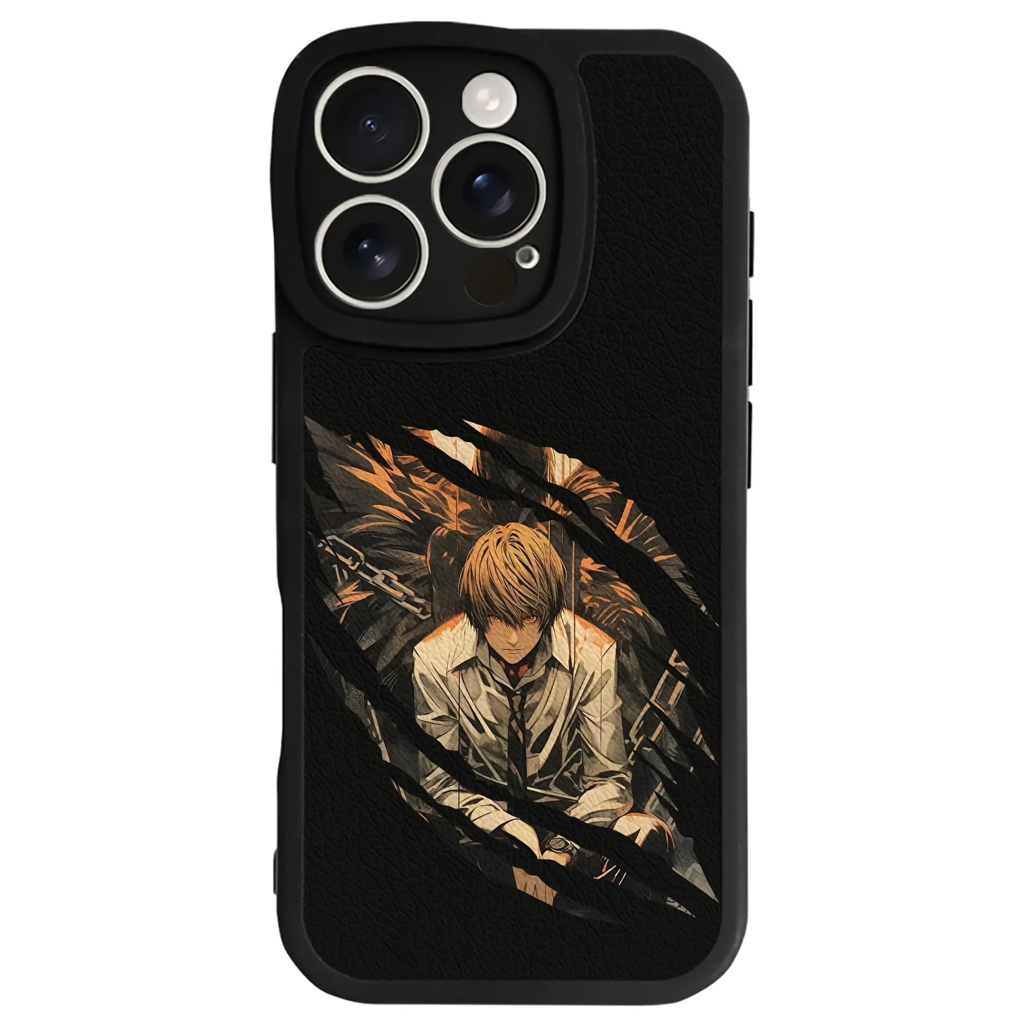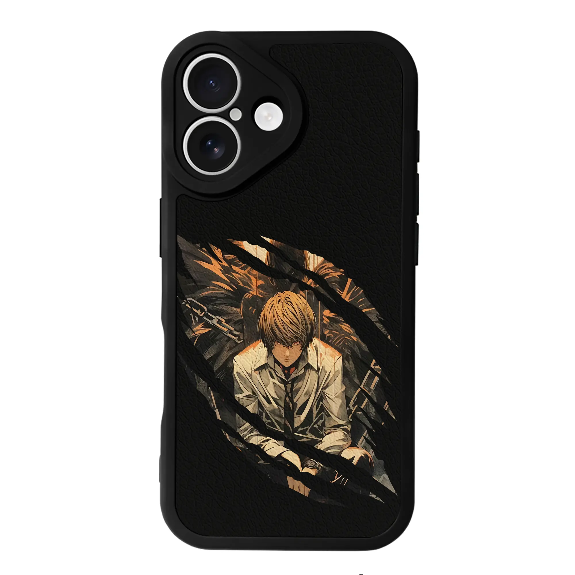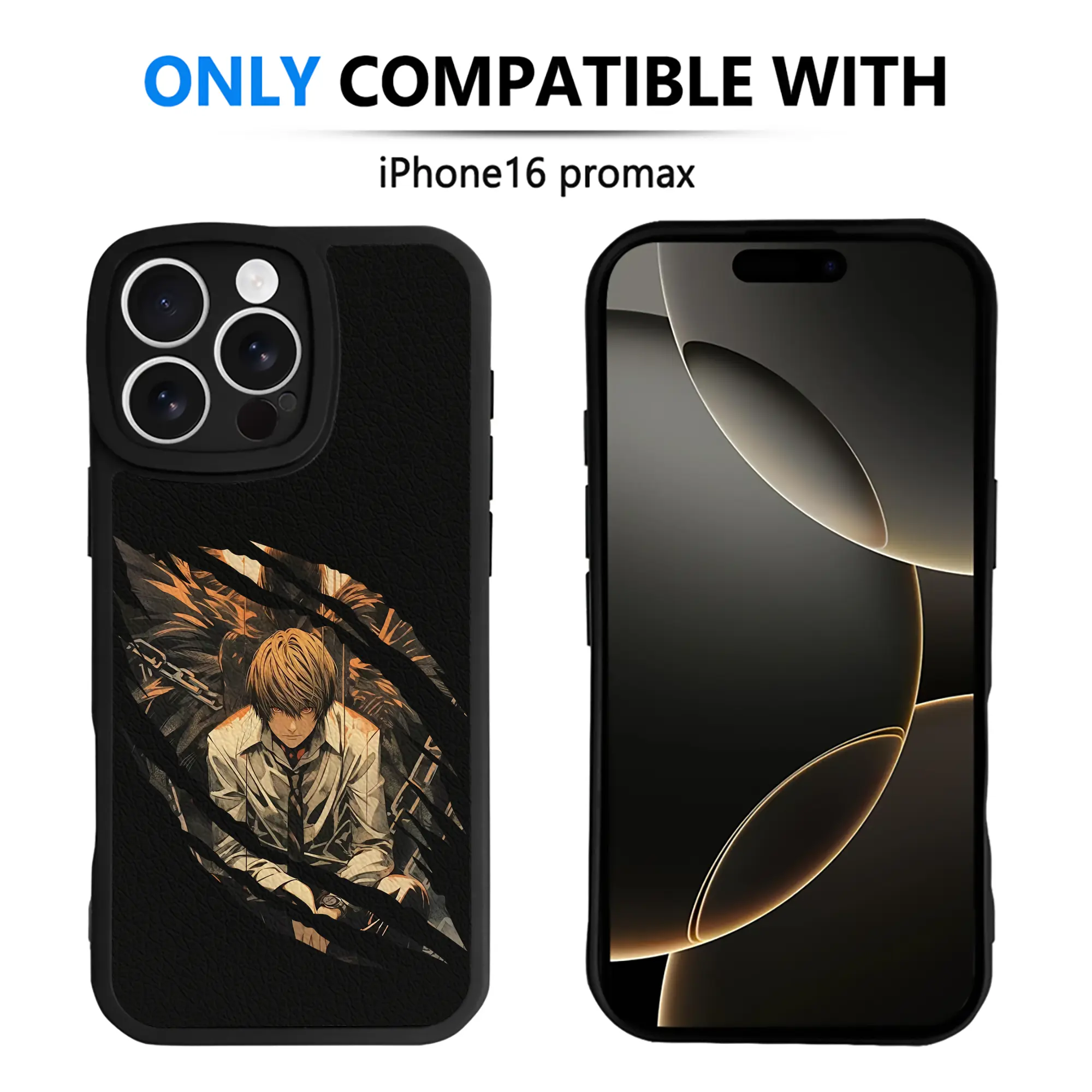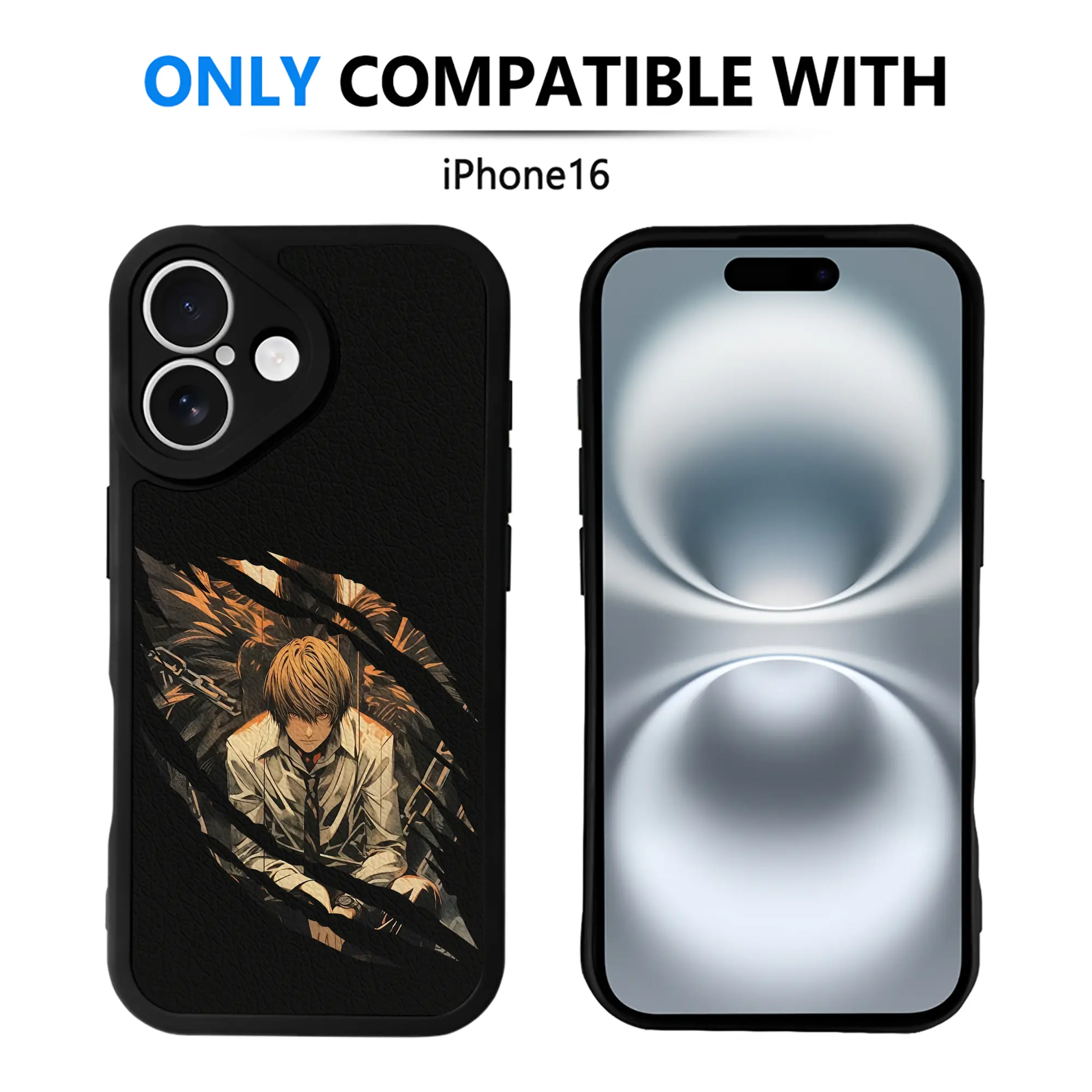 デスノート グッズ,夜神月 - IPhone 16シリーズ対応 ・ シリコンスマホケース ・ レザー調 ・ 高精度フィット ・ 耐衝撃 ・ ワイヤレス充電対応 ・ 精密カット