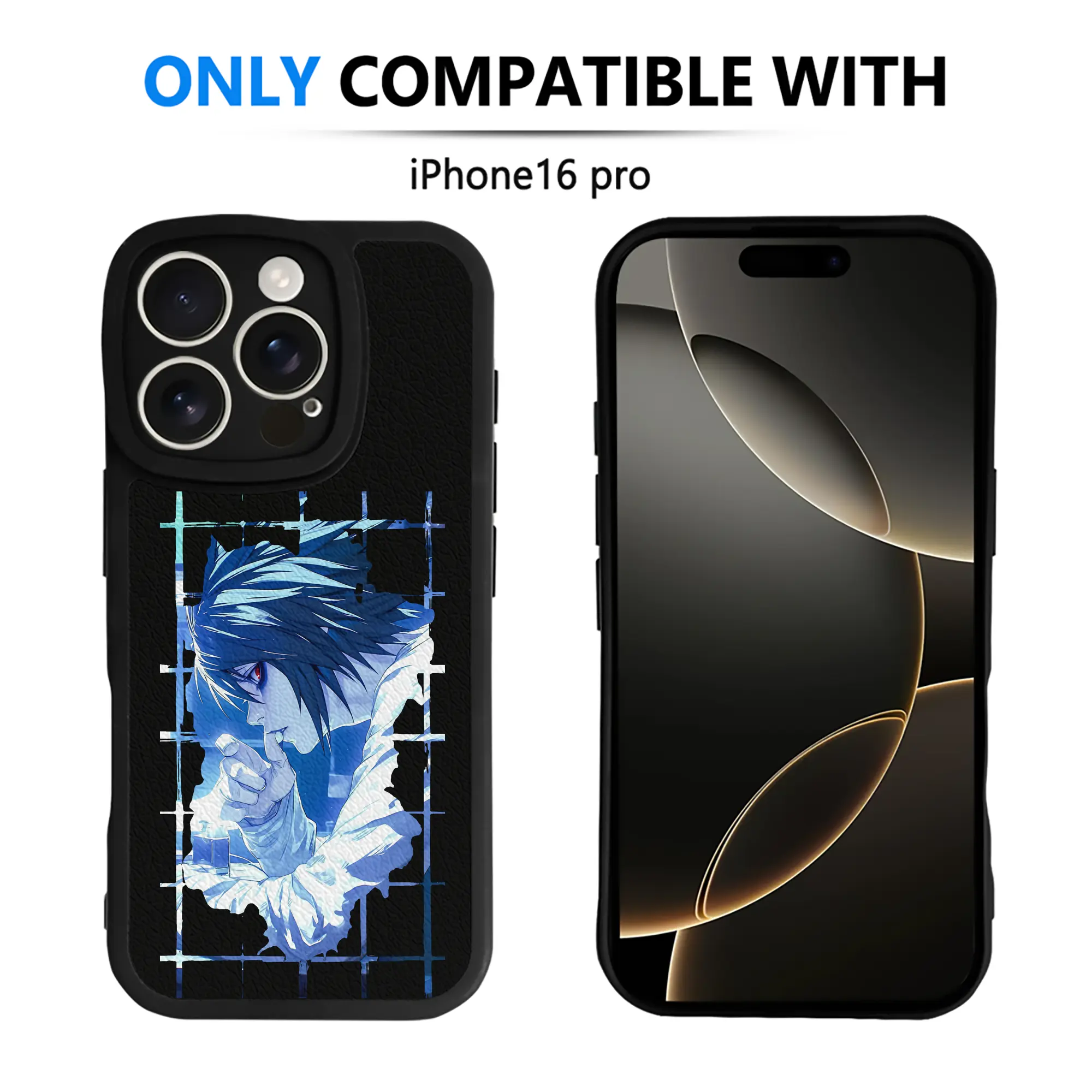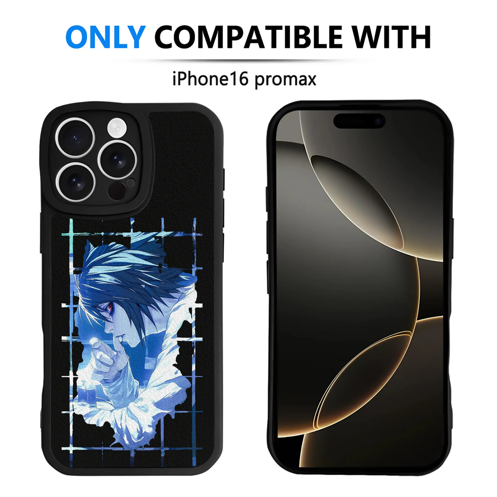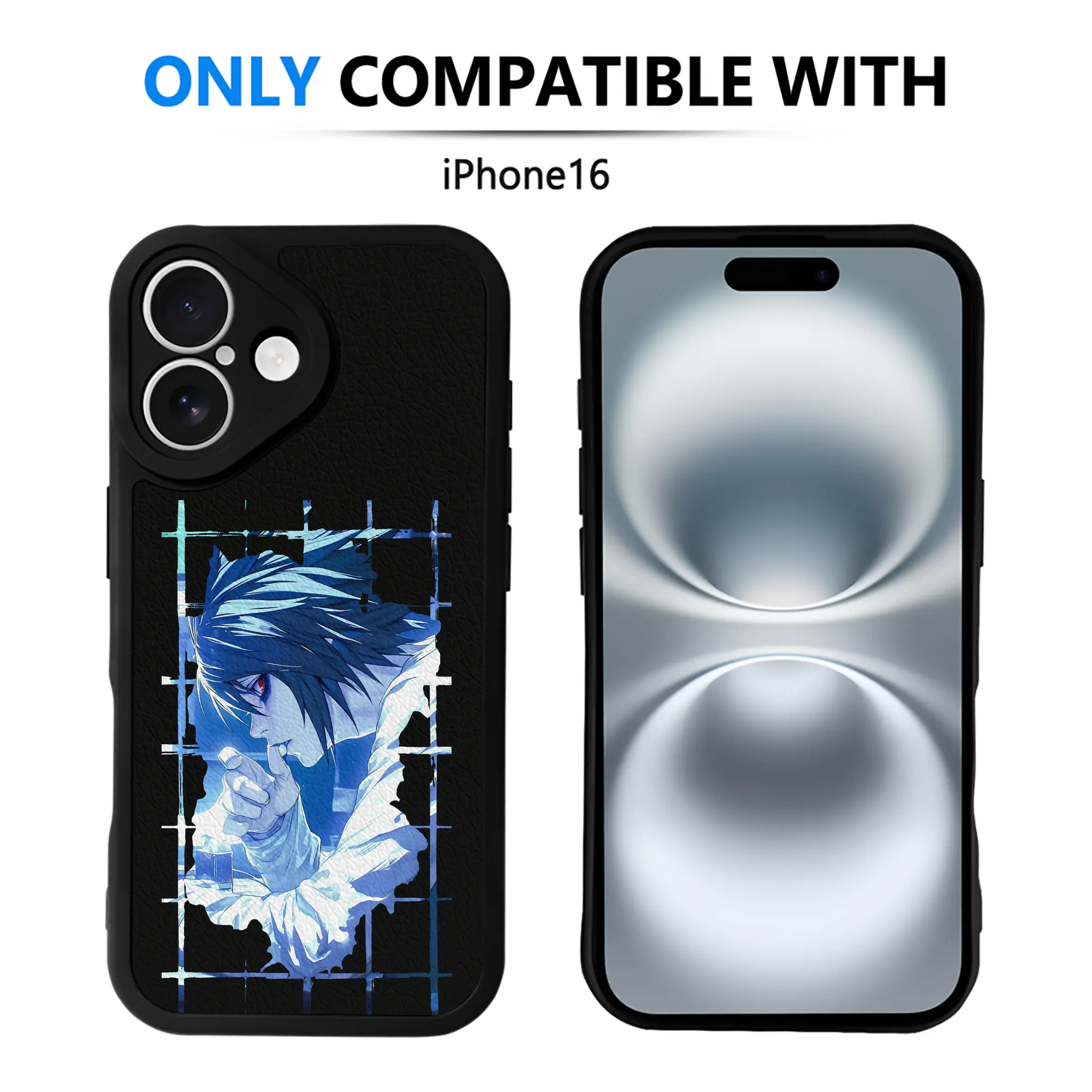 デスノート グッズ,L - IPhone 16シリーズ対応 ・ シリコンスマホケース ・ レザー調 ・ 高精度フィット ・ 耐衝撃 ・ ワイヤレス充電対応 ・ 精密カット