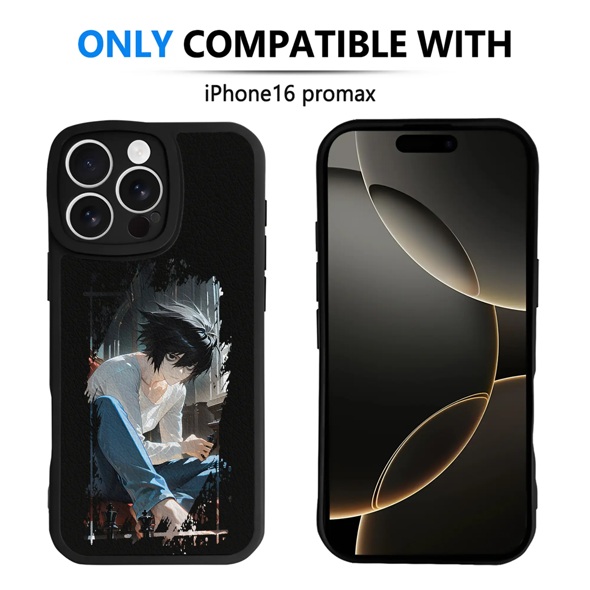 デスノート グッズ,L - IPhone 16シリーズ対応 ・ シリコンスマホケース ・ レザー調 ・ 高精度フィット ・ 耐衝撃 ・ ワイヤレス充電対応 ・ 精密カット