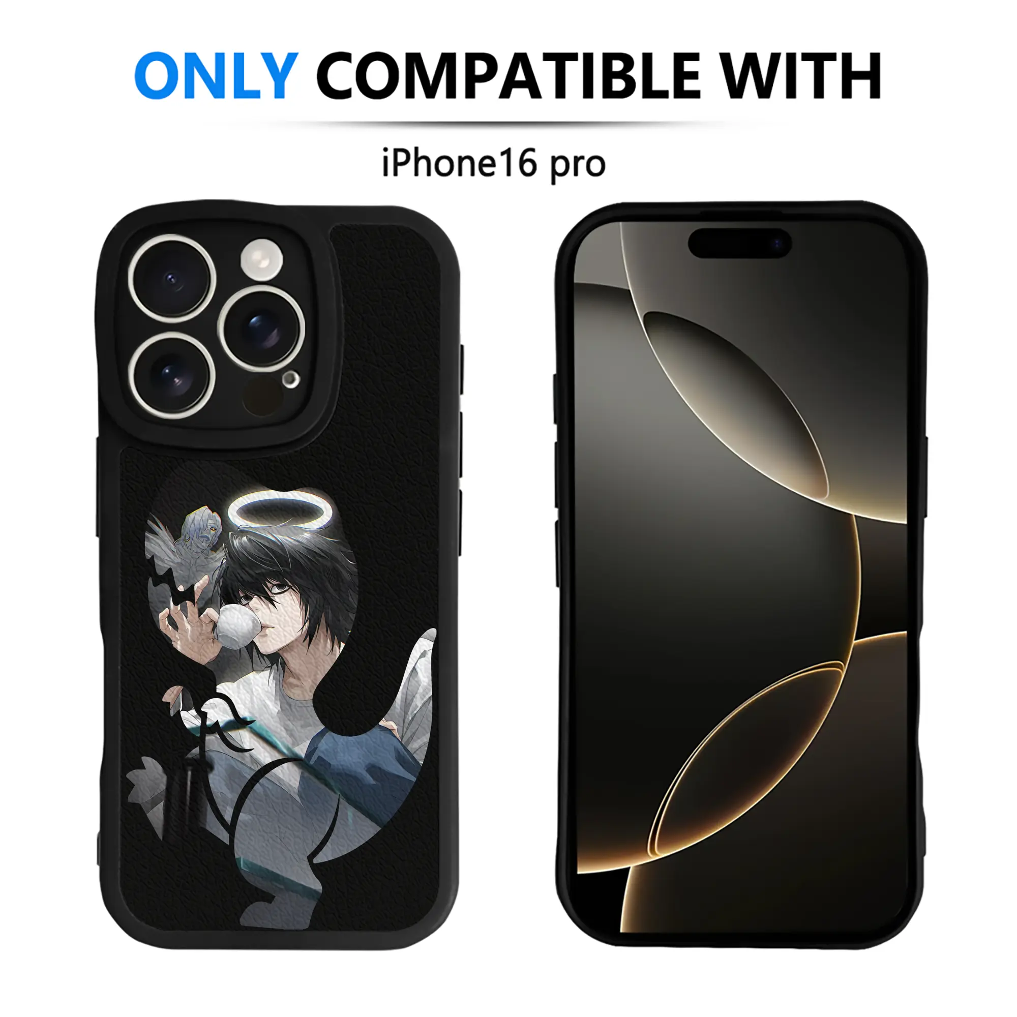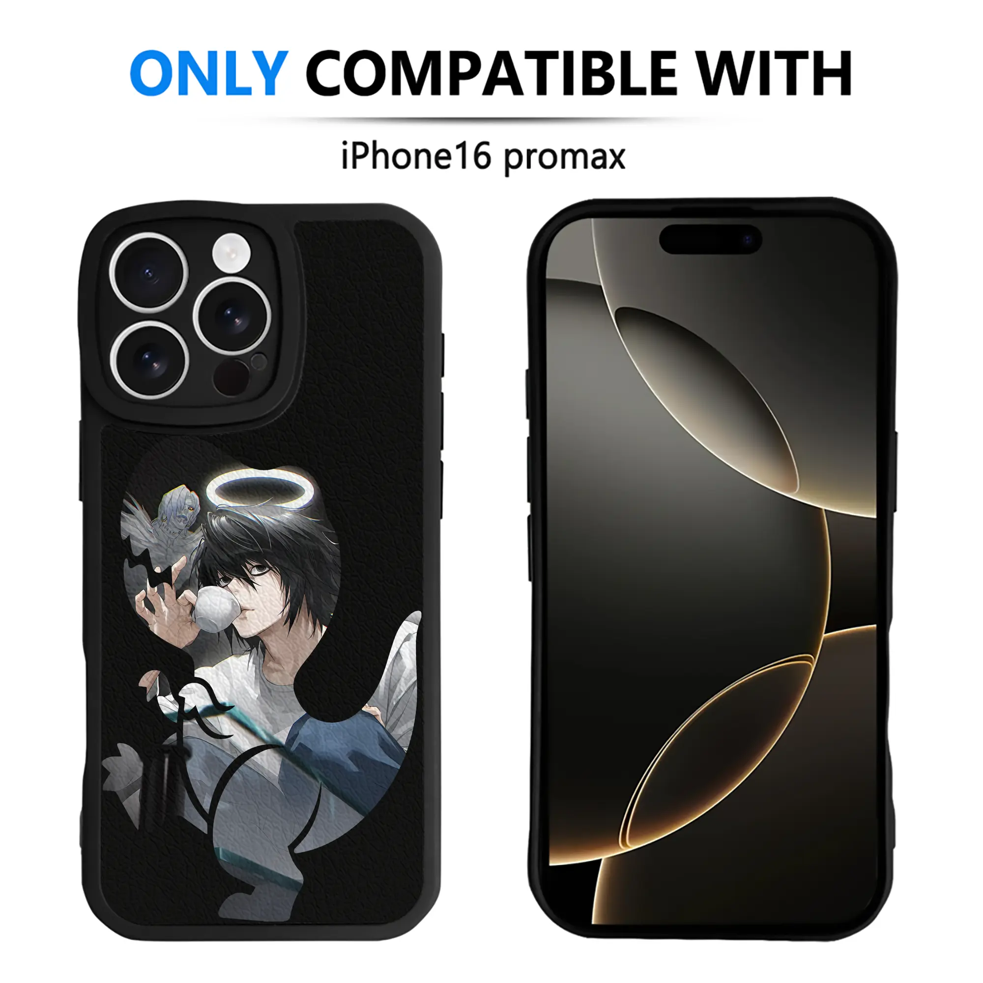 デスノート グッズ,L - IPhone 16シリーズ対応 ・ シリコンスマホケース ・ レザー調 ・ 高精度フィット ・ 耐衝撃 ・ ワイヤレス充電対応 ・ 精密カット