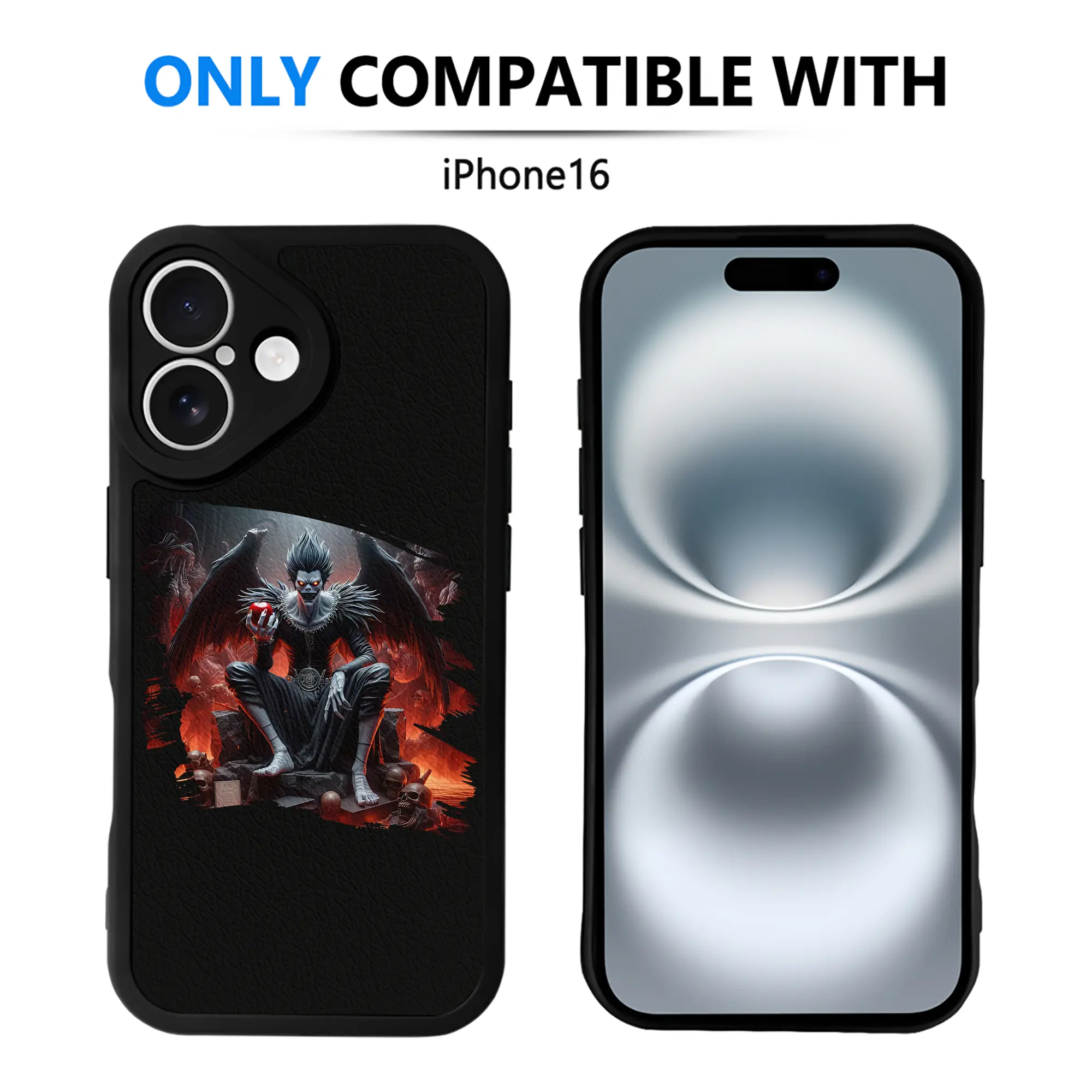 デスノート グッズ,リューク - IPhone 16シリーズ対応 ・ シリコンスマホケース ・ レザー調 ・ 高精度フィット ・ 耐衝撃 ・ ワイヤレス充電対応 ・ 精密カット