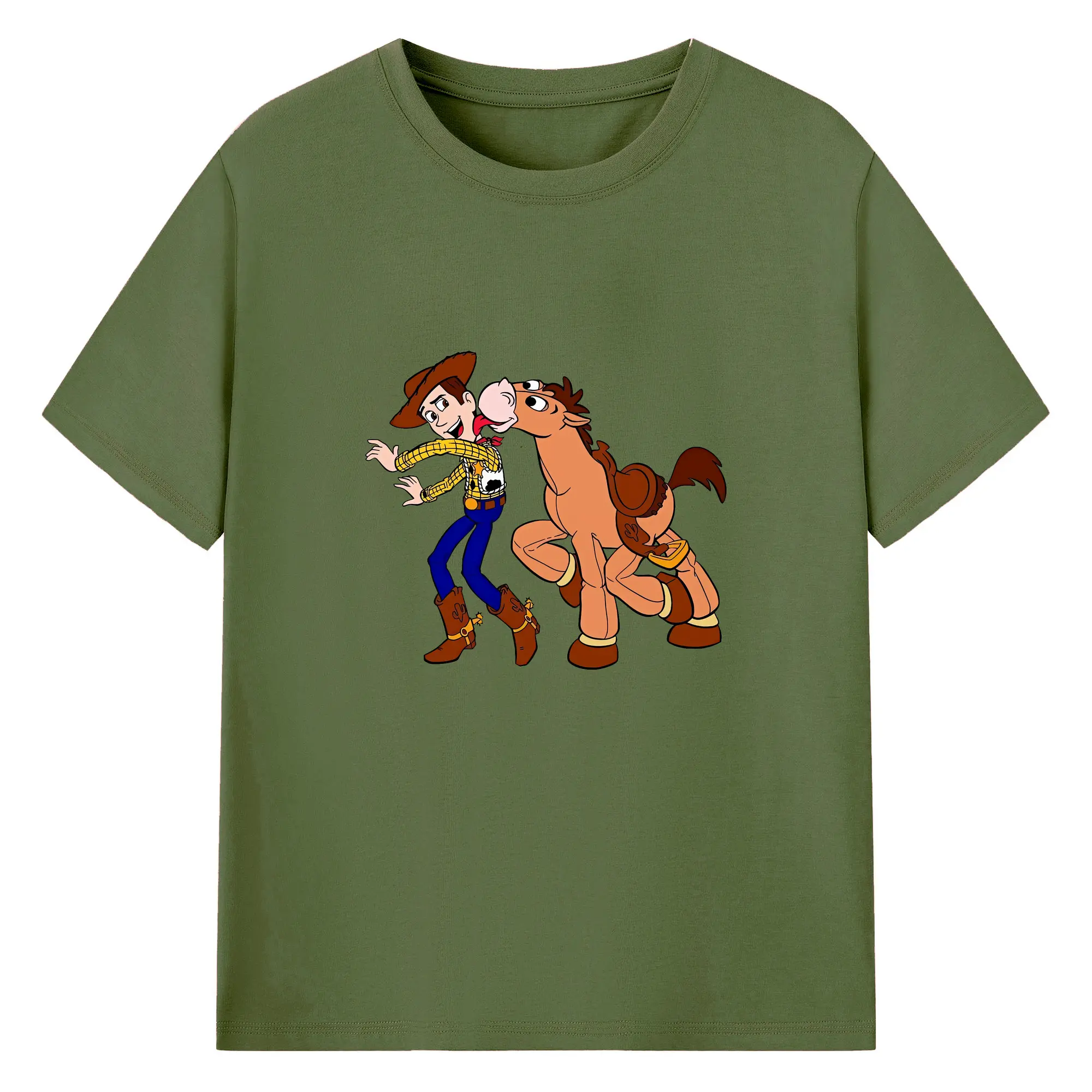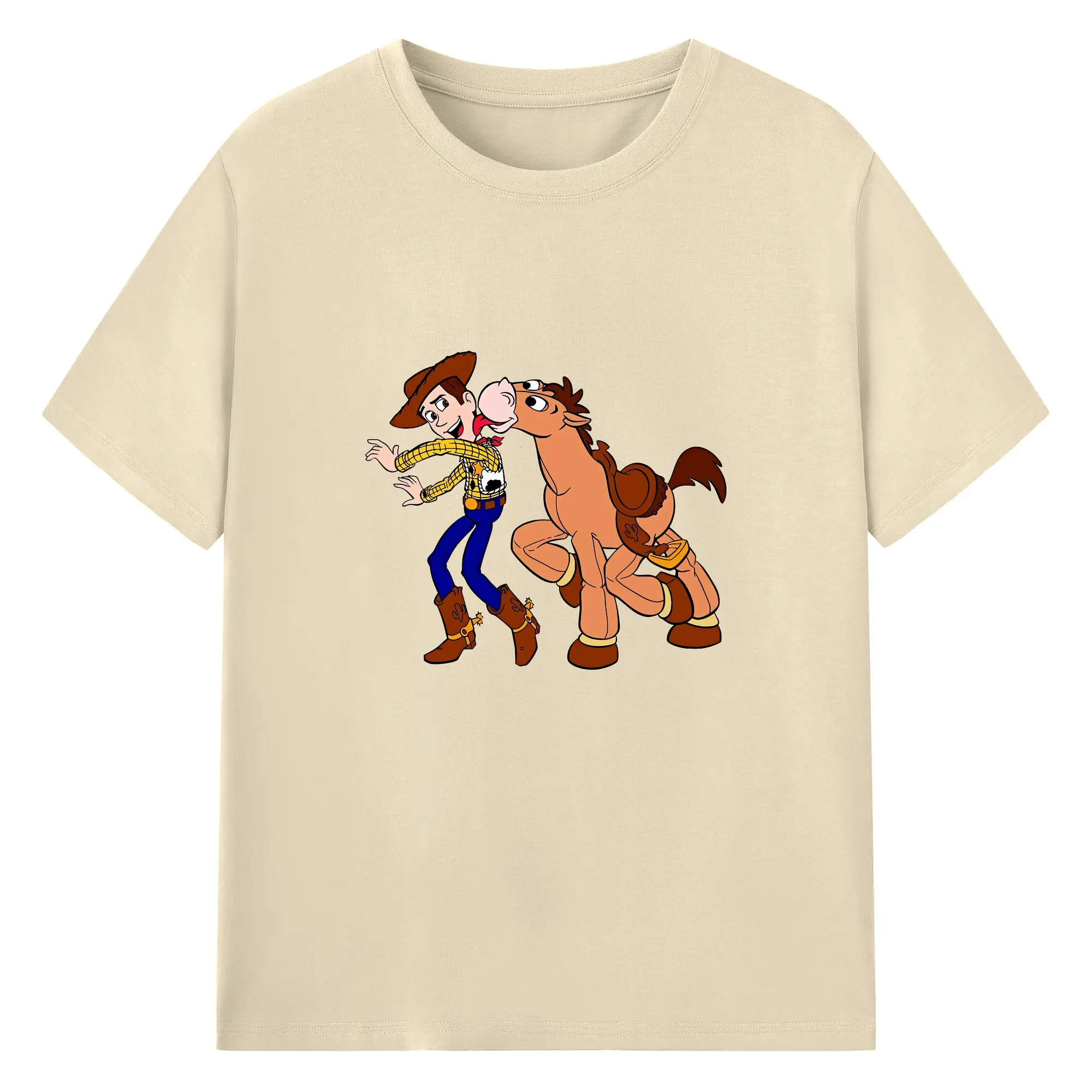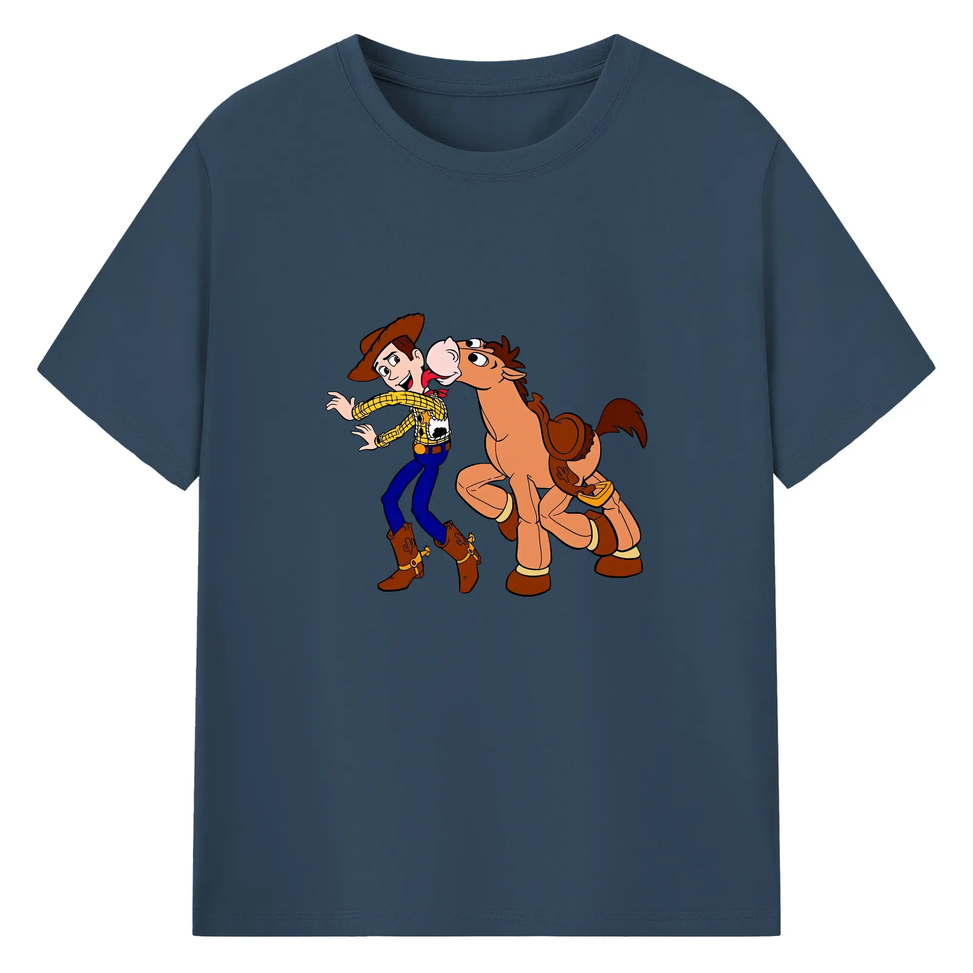 トイ・ストーリー グッズ ウッディ - 綿100% ヴィンテージ風 半袖Tシャツ ・ フロントプリント ・ 柔らか肌触り ・ 通気性 快適 ・ スポーツ カジュアル 外出用