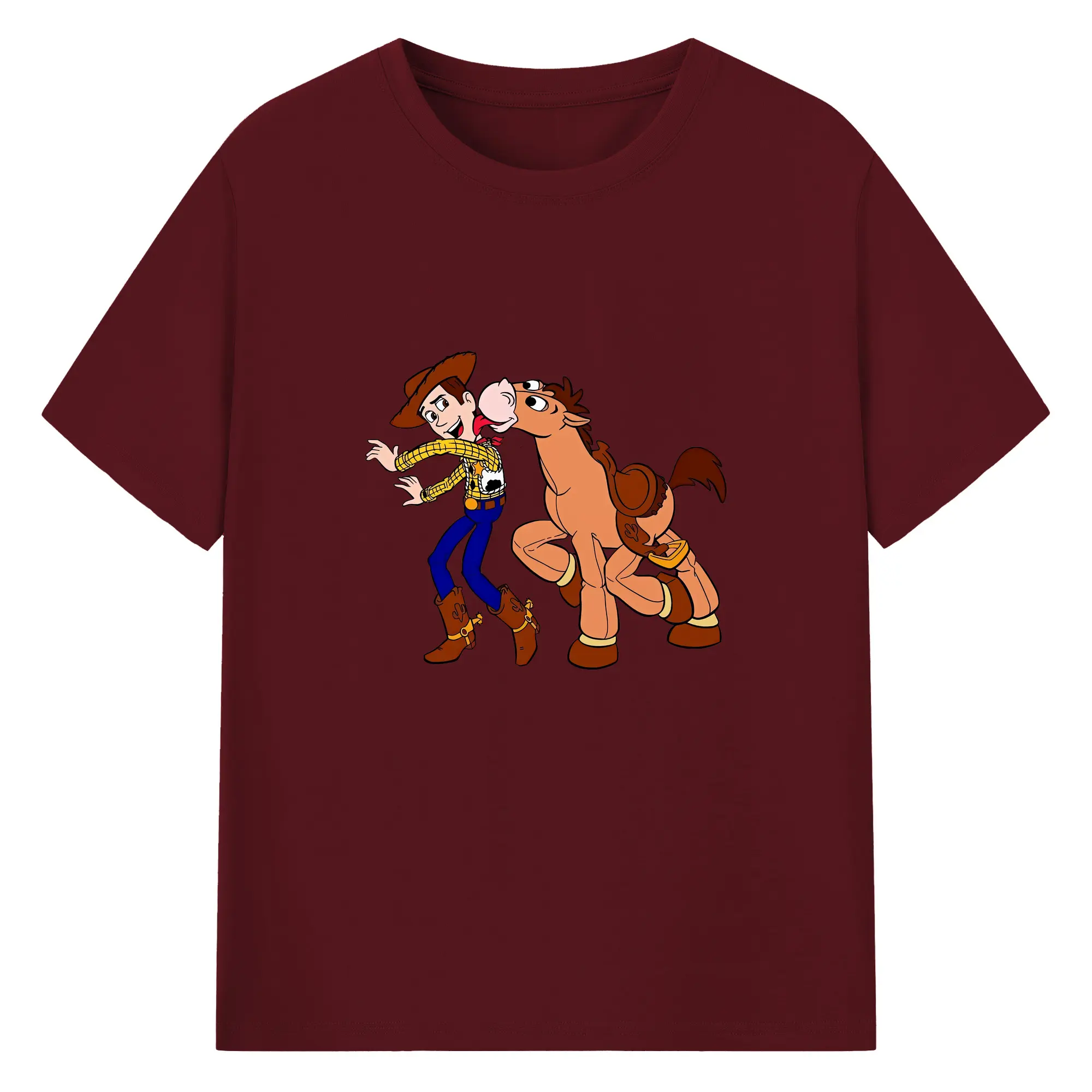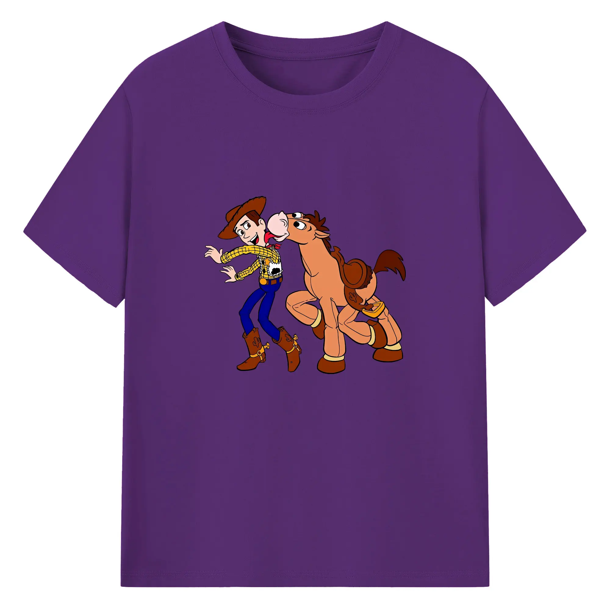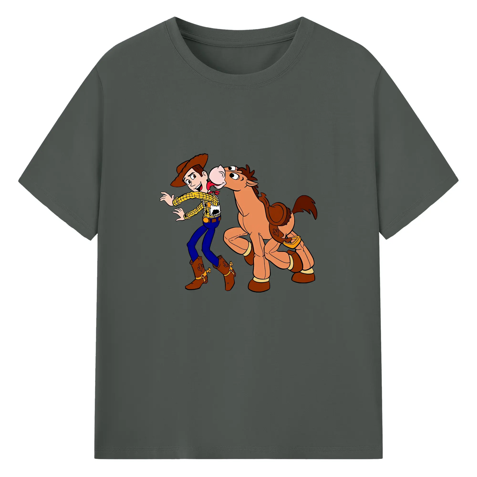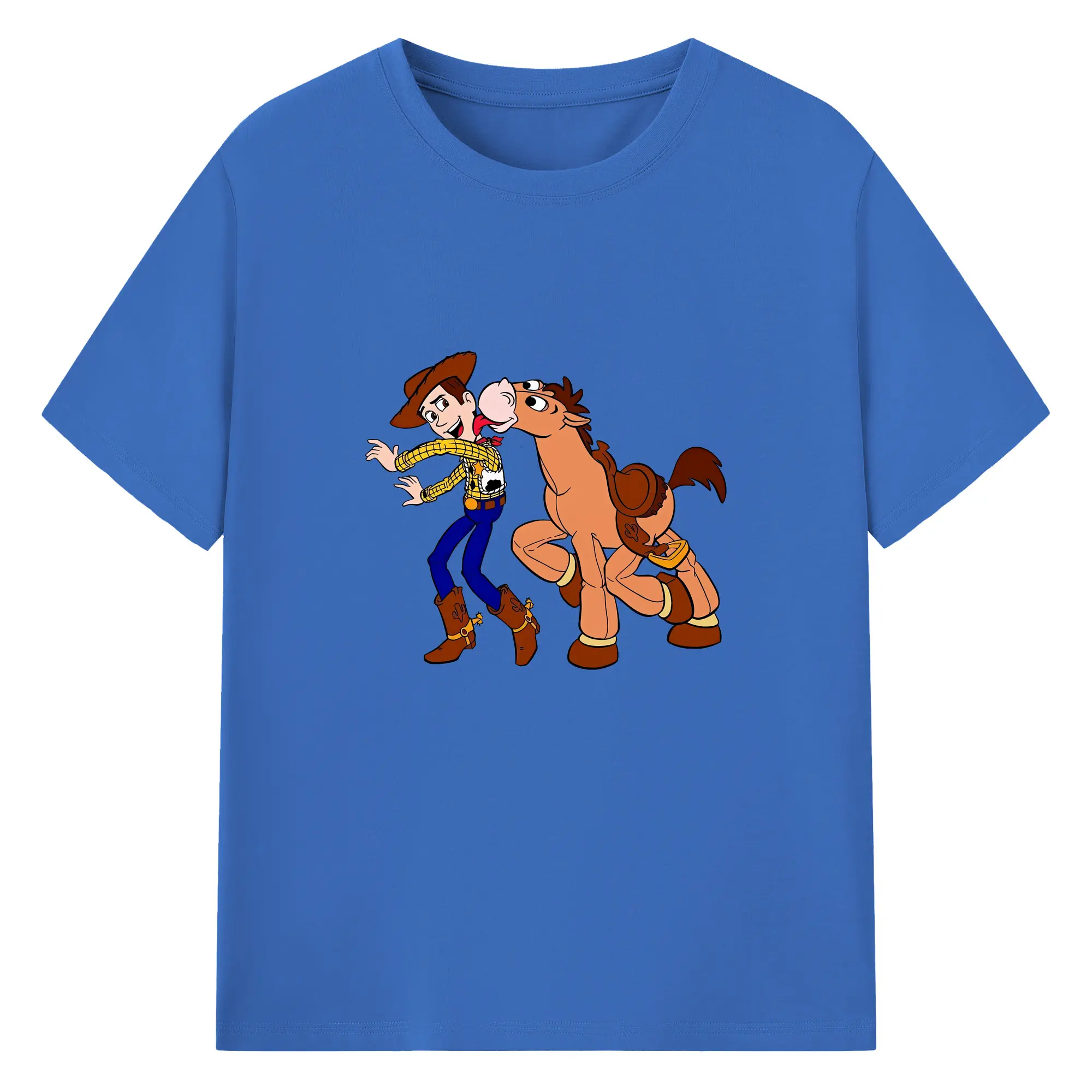 トイ・ストーリー グッズ ウッディ - 綿100% 半袖Tシャツ ・ バックプリント ・ 快適 通気性 ・ 日常使い 散歩 スポーツ用