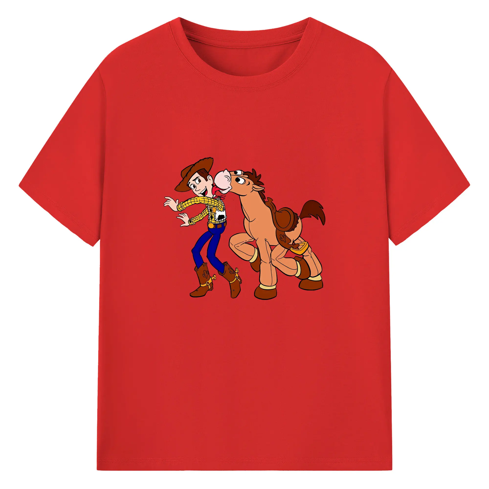 トイ・ストーリー グッズ ウッディ - 綿100% キッズTシャツ ・ フロントプリント ・ 快適 通気性 ・ スポーツ カジュアル 散歩用