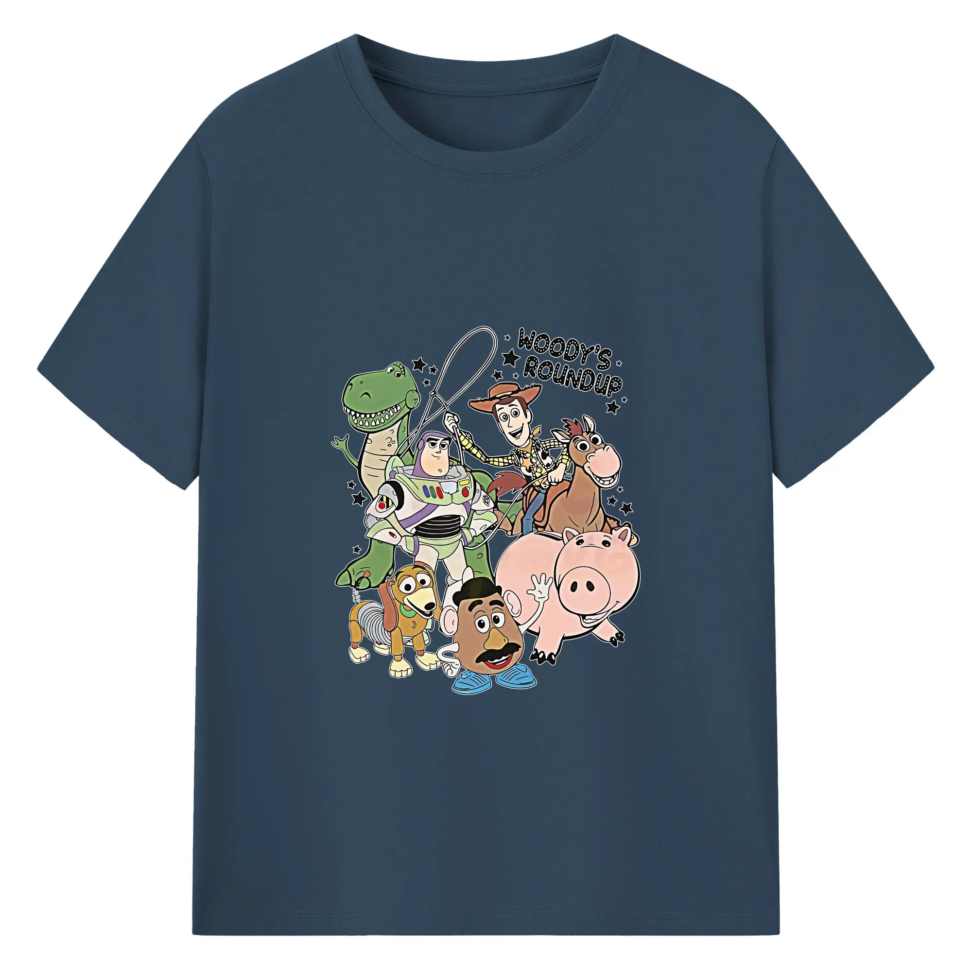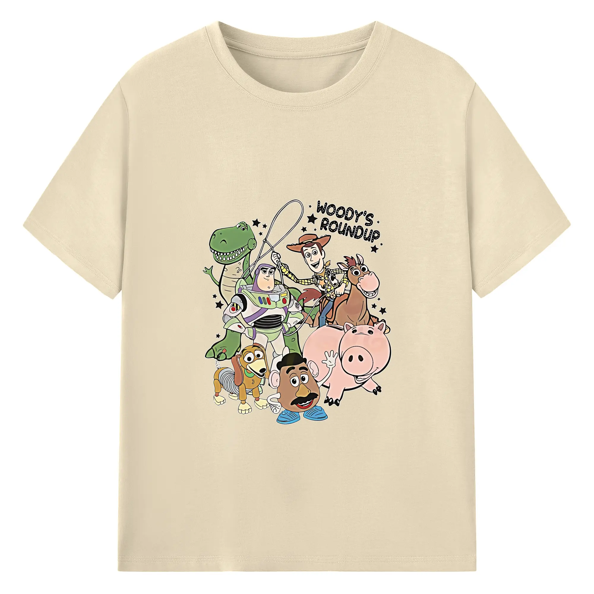 トイ・ストーリー グッズ ウッディ - 綿100% ヴィンテージ風 半袖Tシャツ ・ フロントプリント ・ 柔らか肌触り ・ 通気性 快適 ・ スポーツ カジュアル 外出用