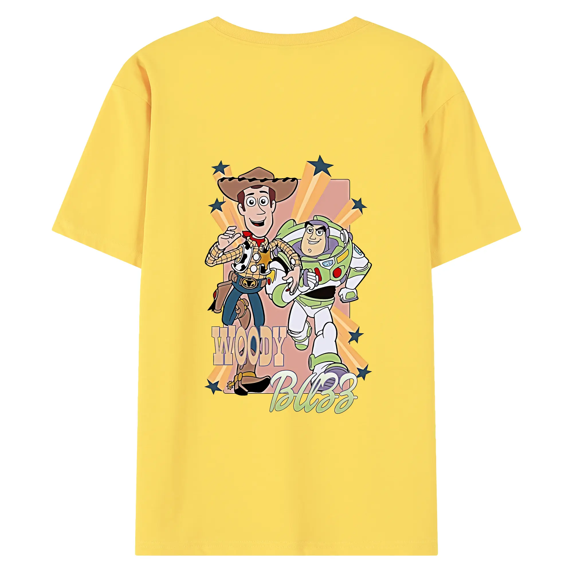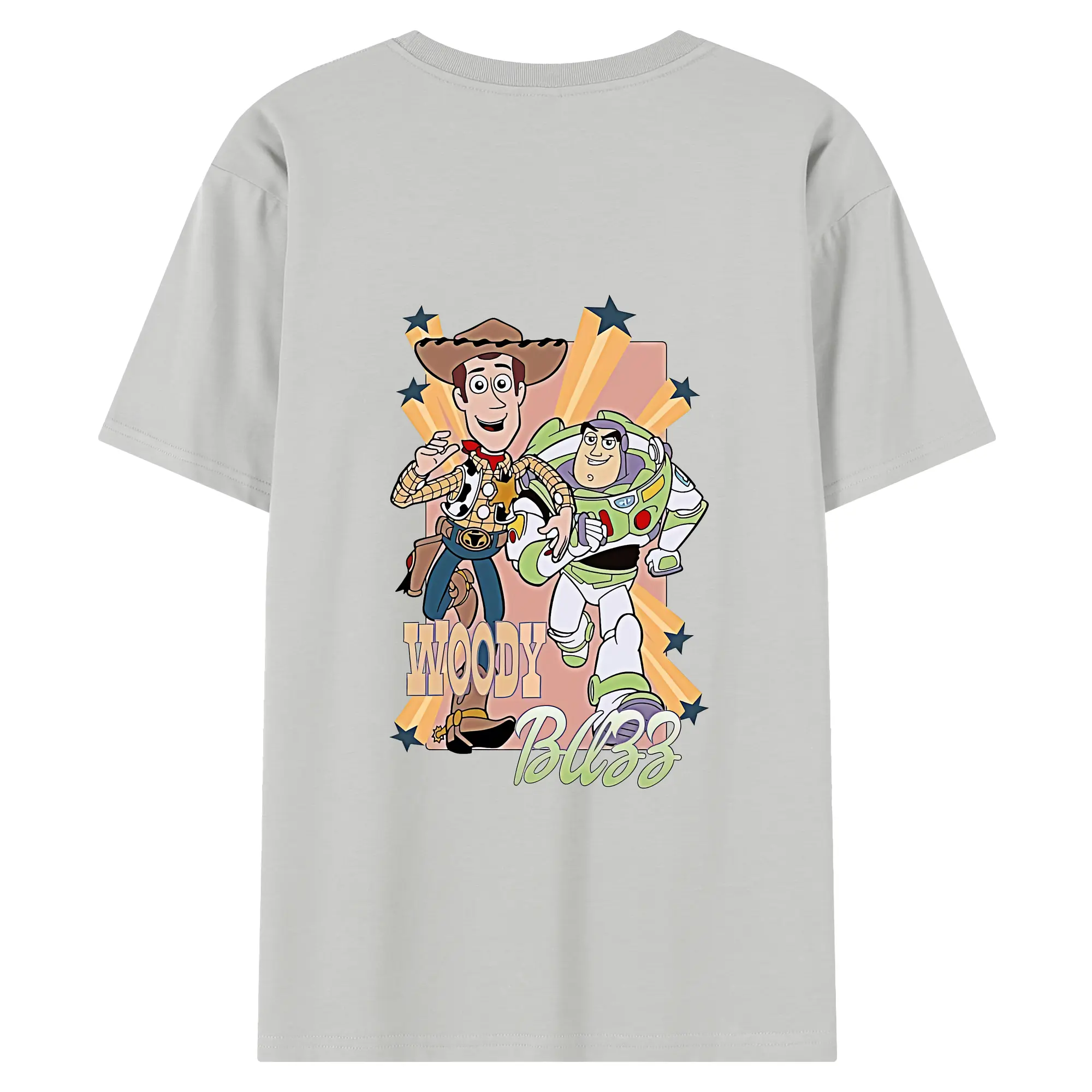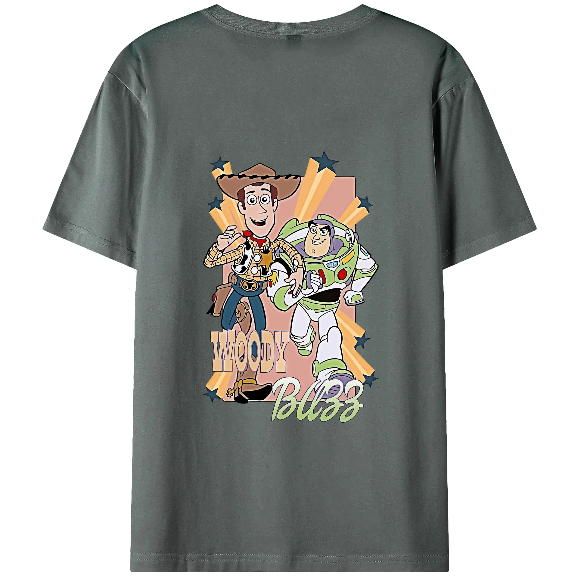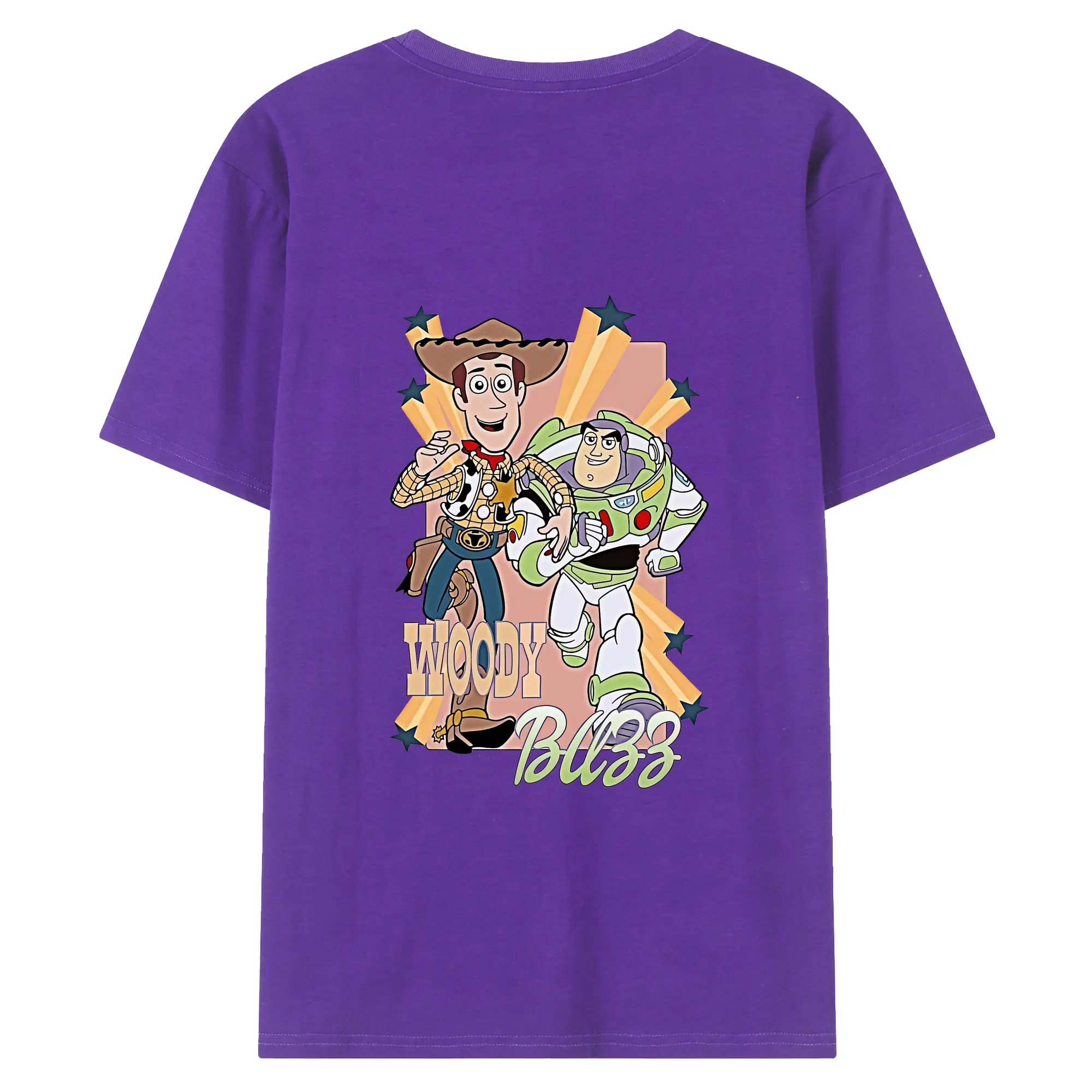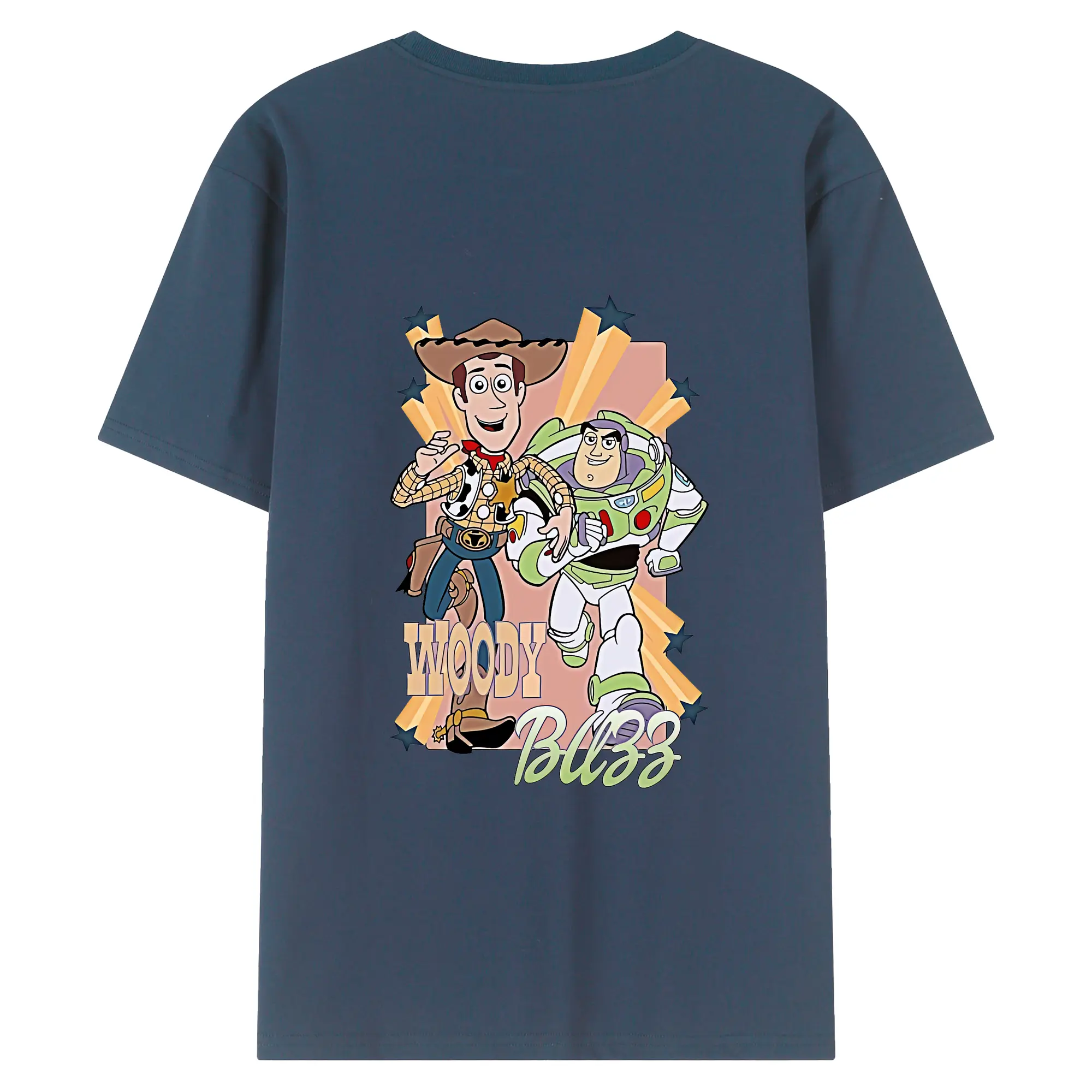 トイ・ストーリー グッズ ウッディ - 綿100% ヴィンテージ風 半袖Tシャツ ・ 背面プリント ・ 柔らか肌触り ・ 通気性 快適 ・ スポーツ カジュアル 外出用