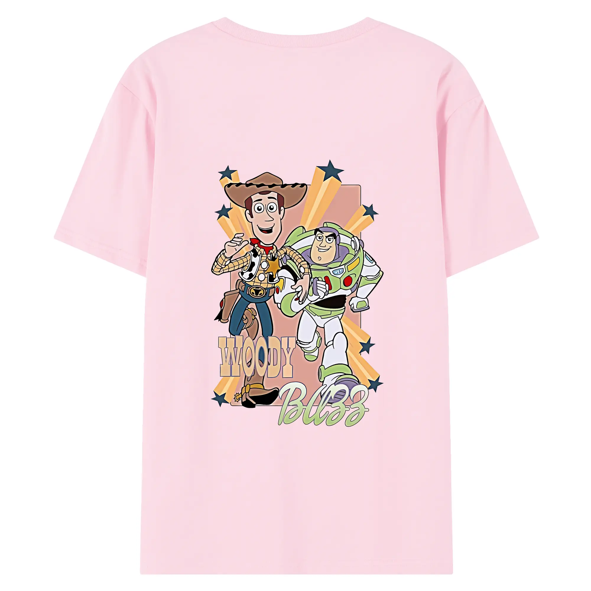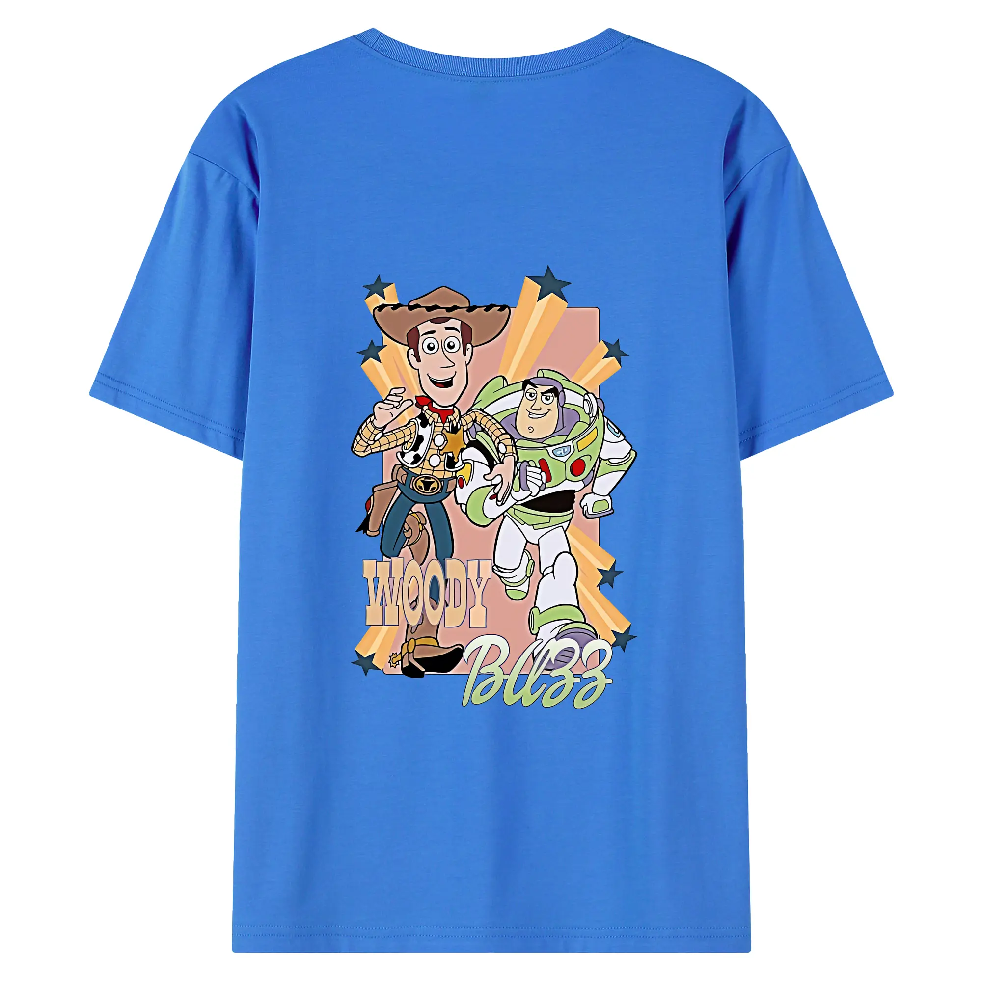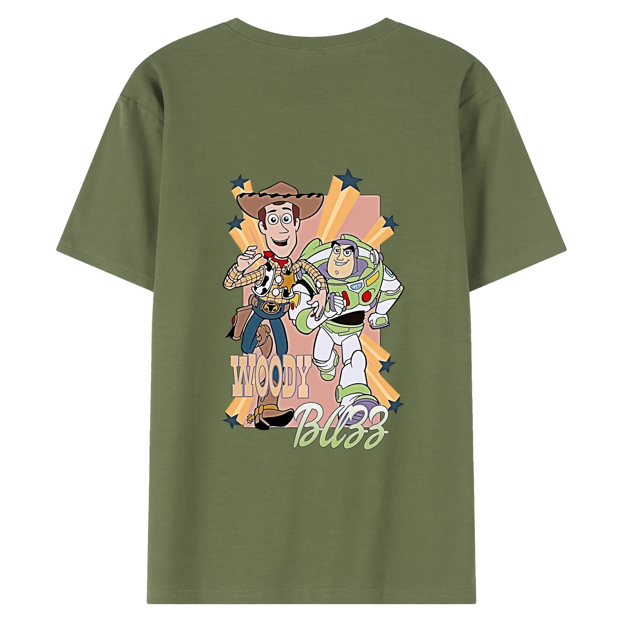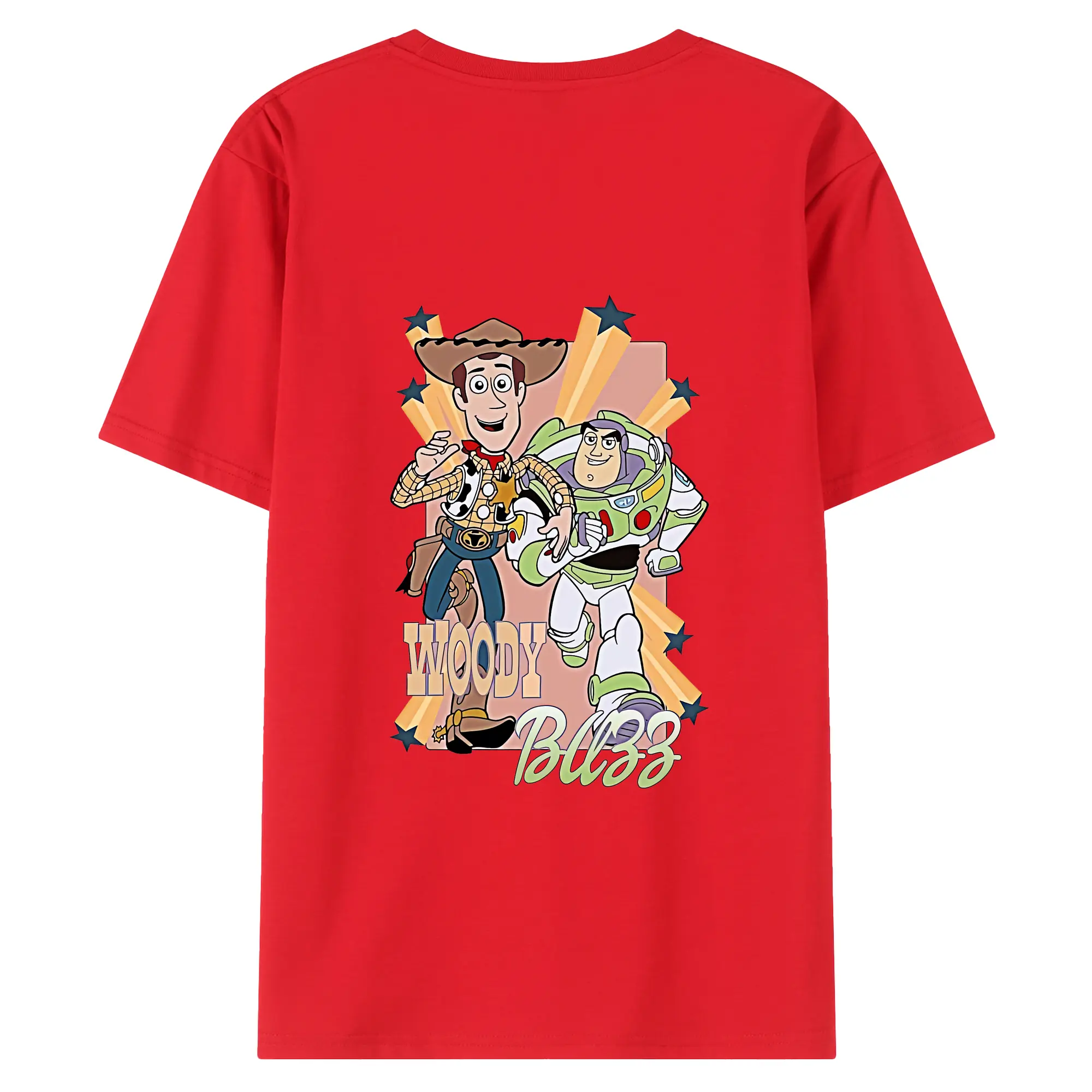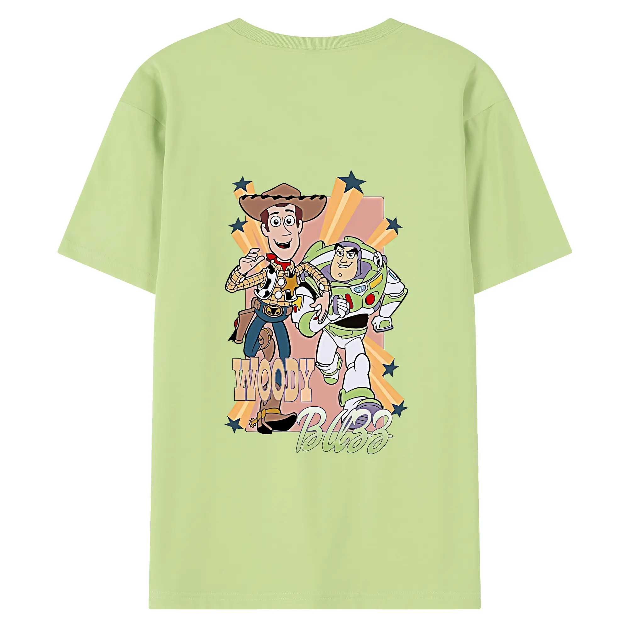 トイ・ストーリー グッズ ウッディ - 綿100% ヴィンテージ風 半袖Tシャツ ・ 背面プリント ・ 柔らか肌触り ・ 通気性 快適 ・ スポーツ カジュアル 外出用
