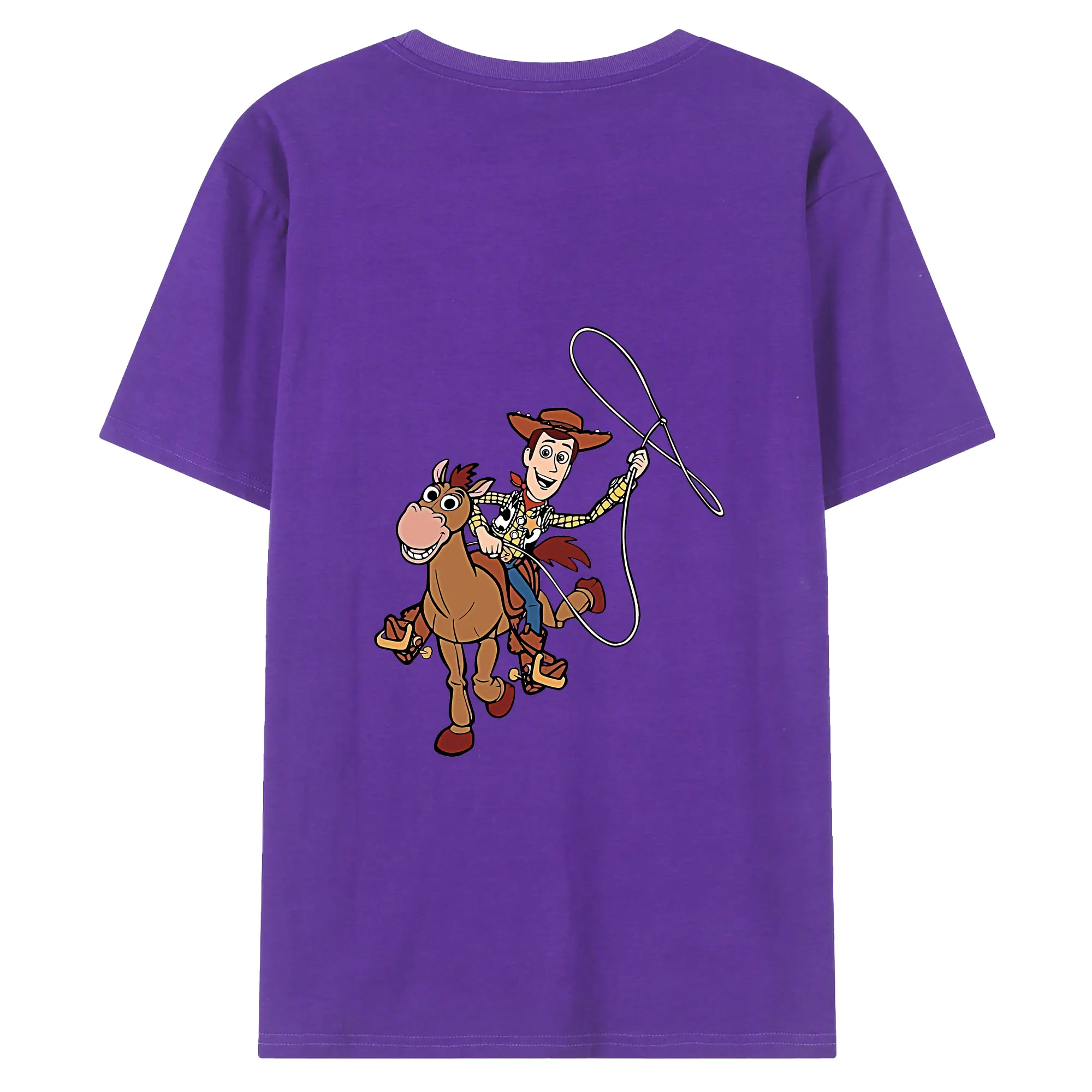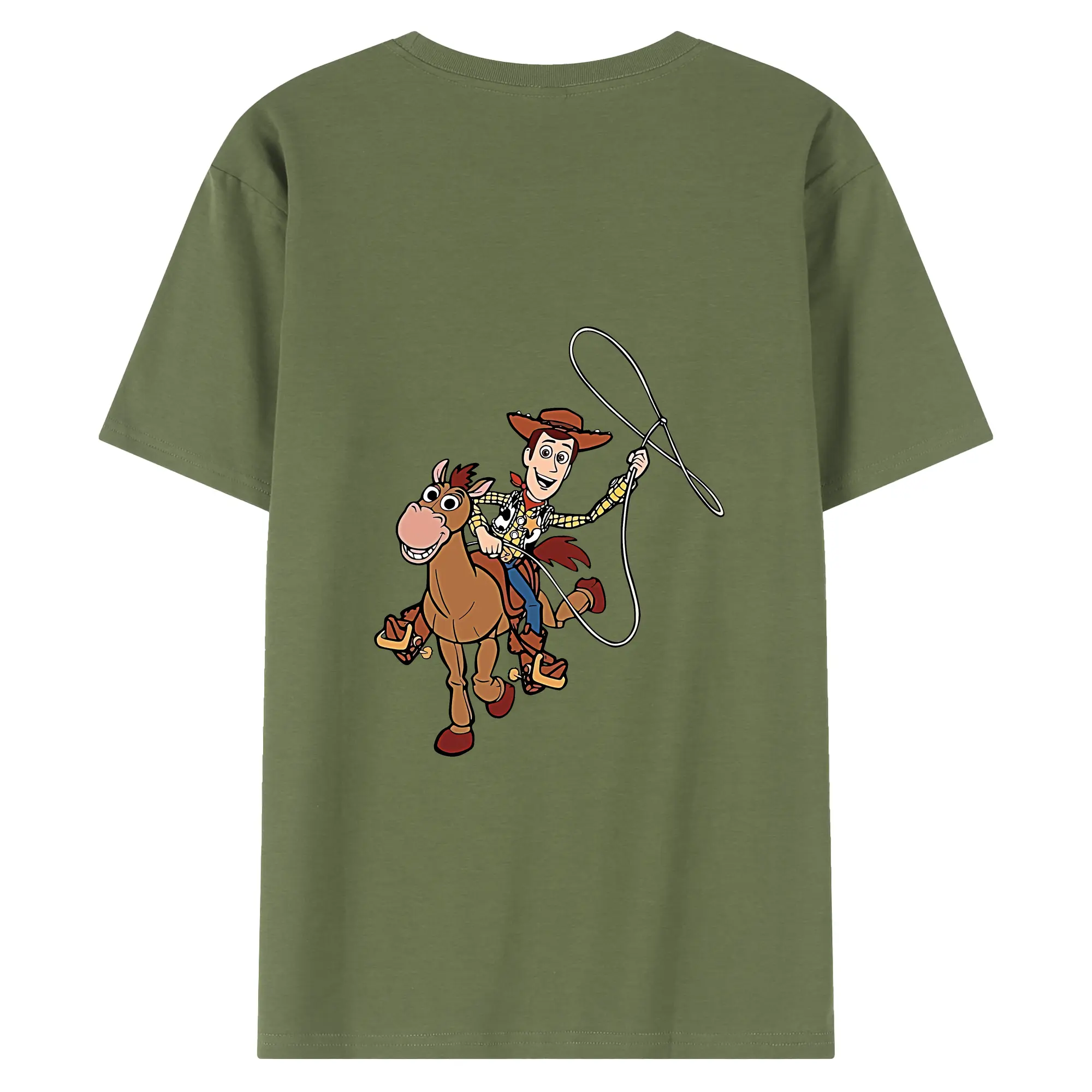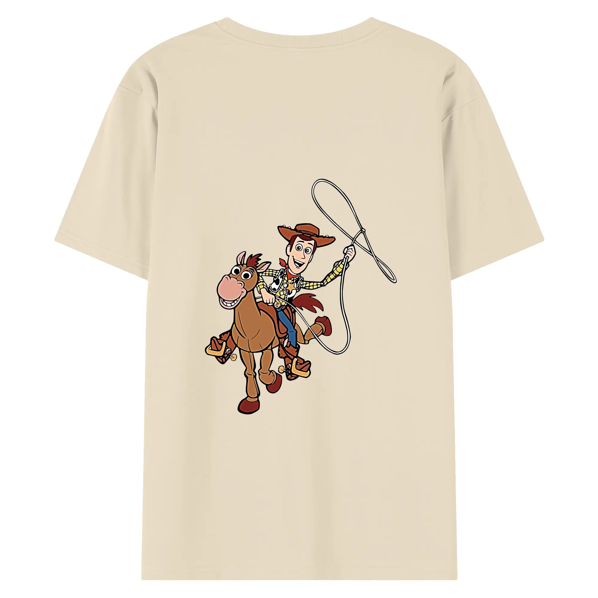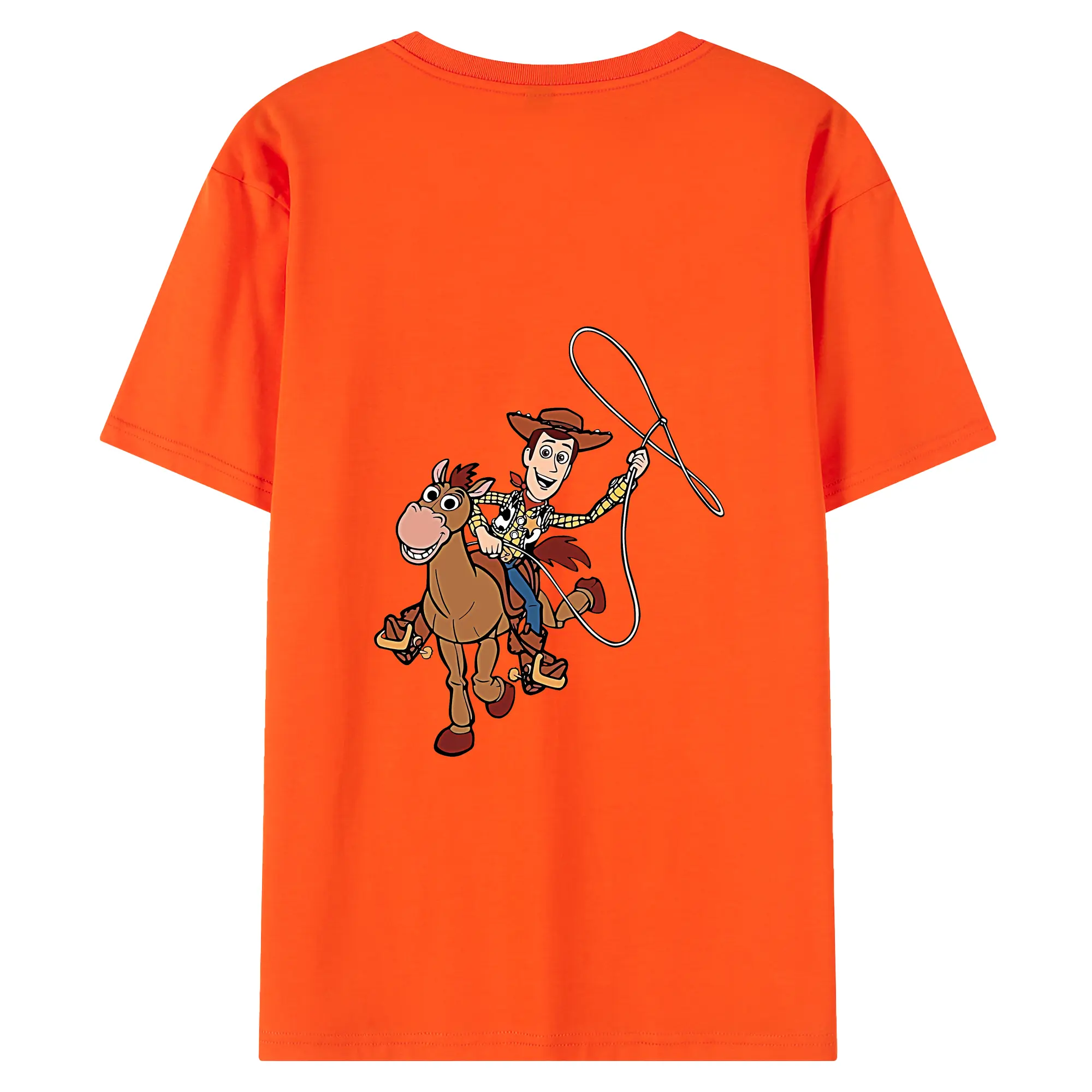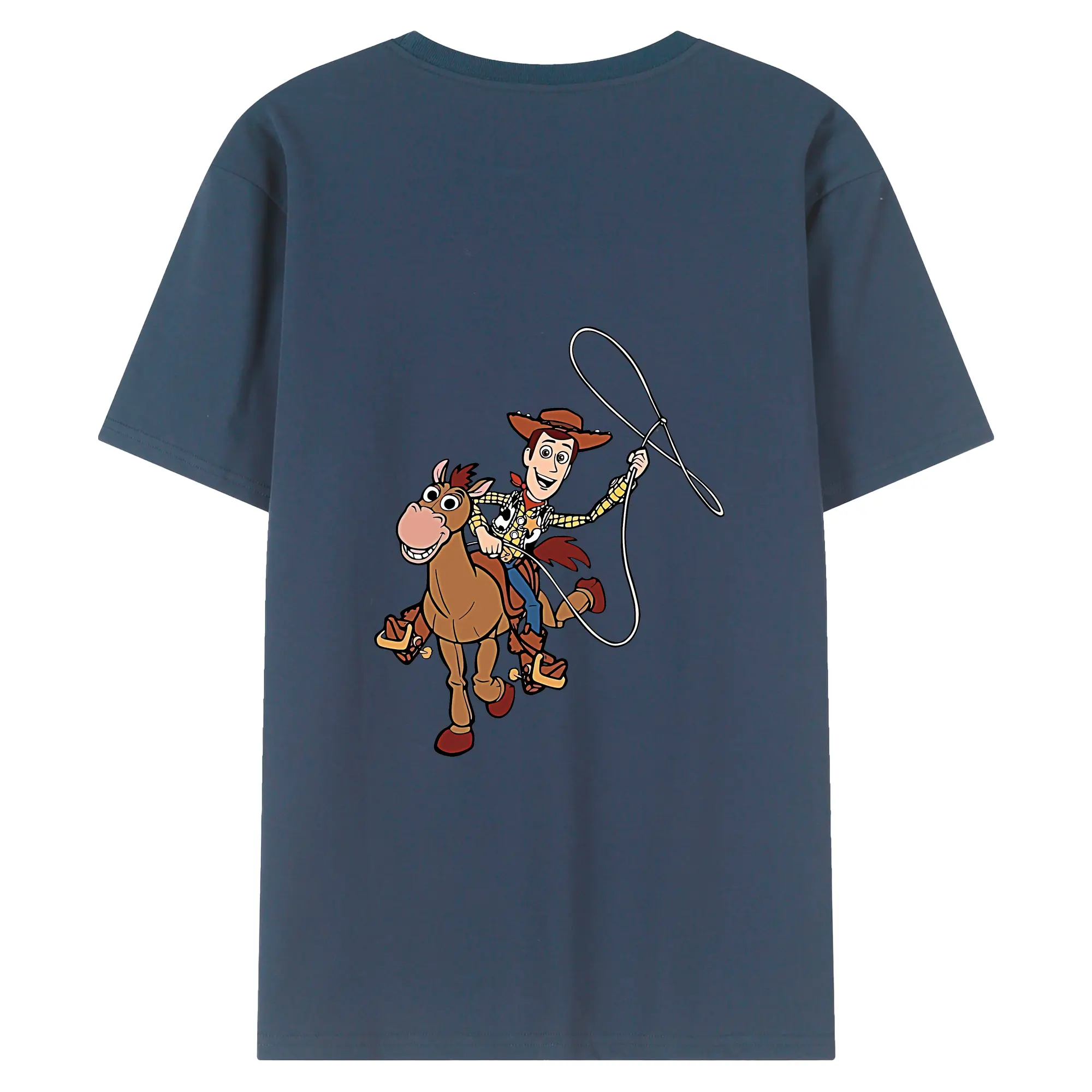 トイ・ストーリー グッズ ウッディ - 綿100% ヴィンテージ風 半袖Tシャツ ・ 背面プリント ・ 柔らか肌触り ・ 通気性 快適 ・ スポーツ カジュアル 外出用
