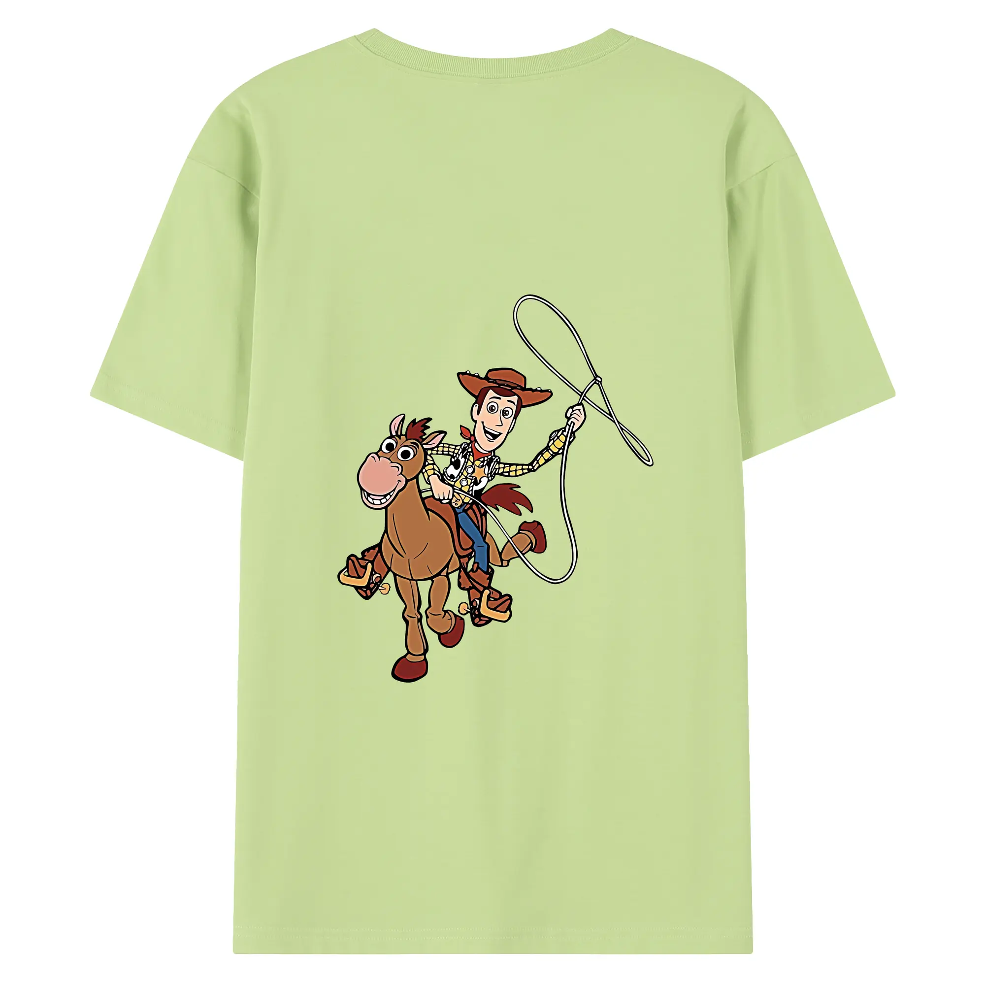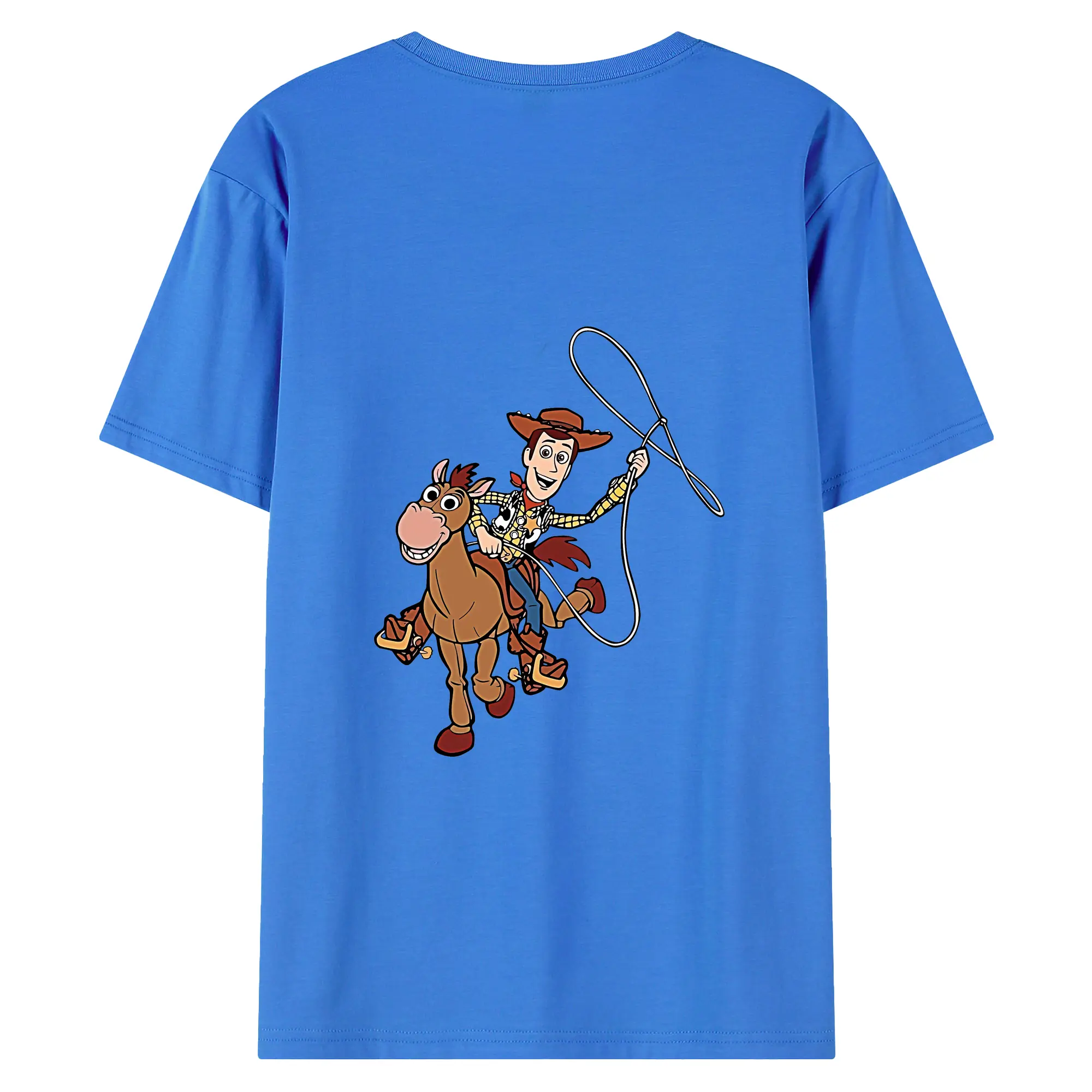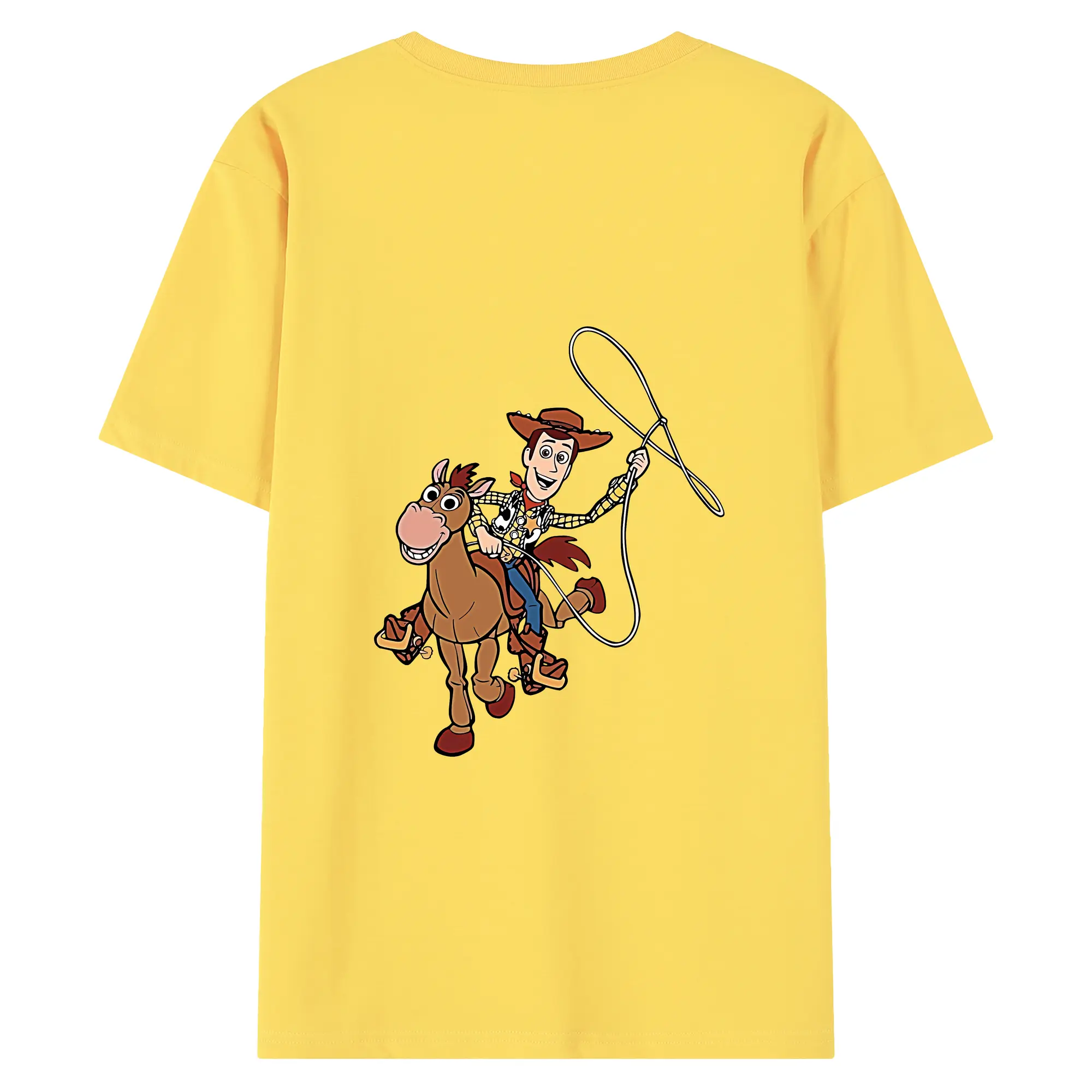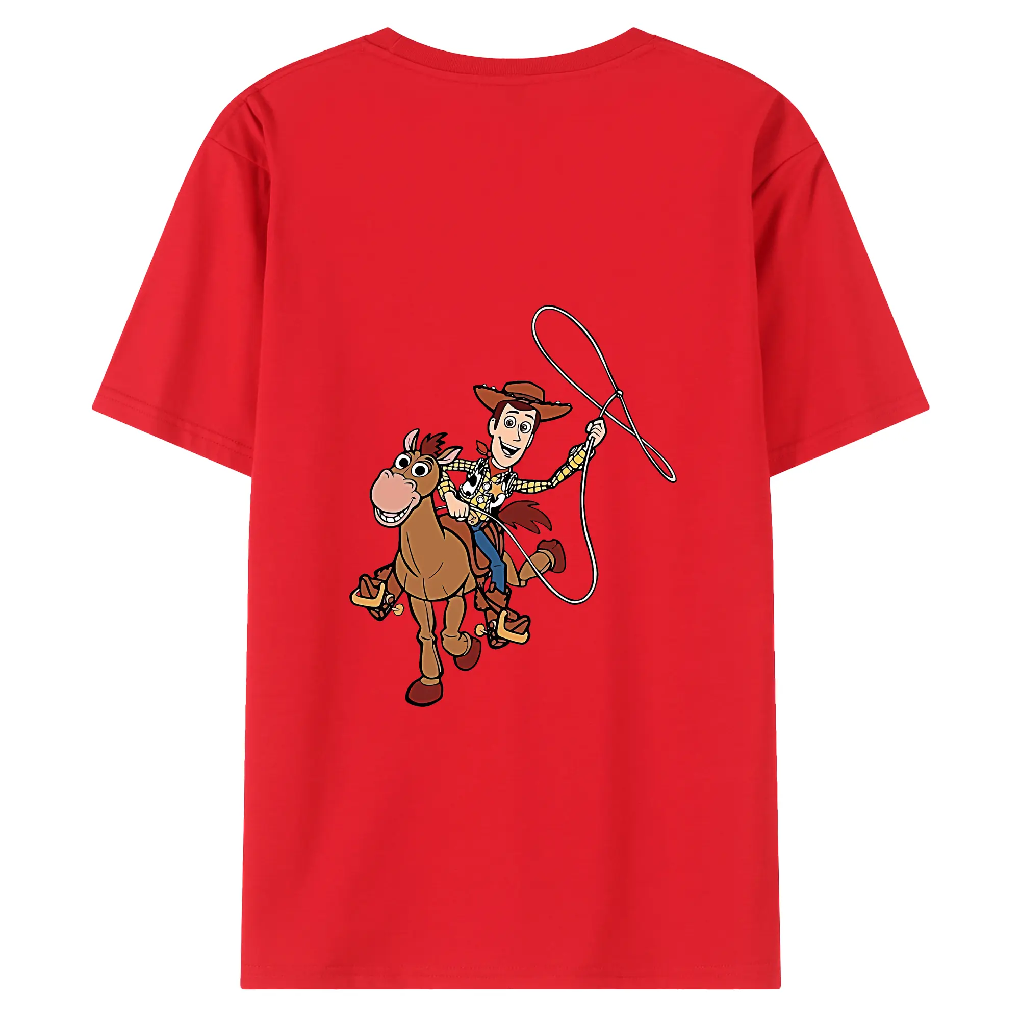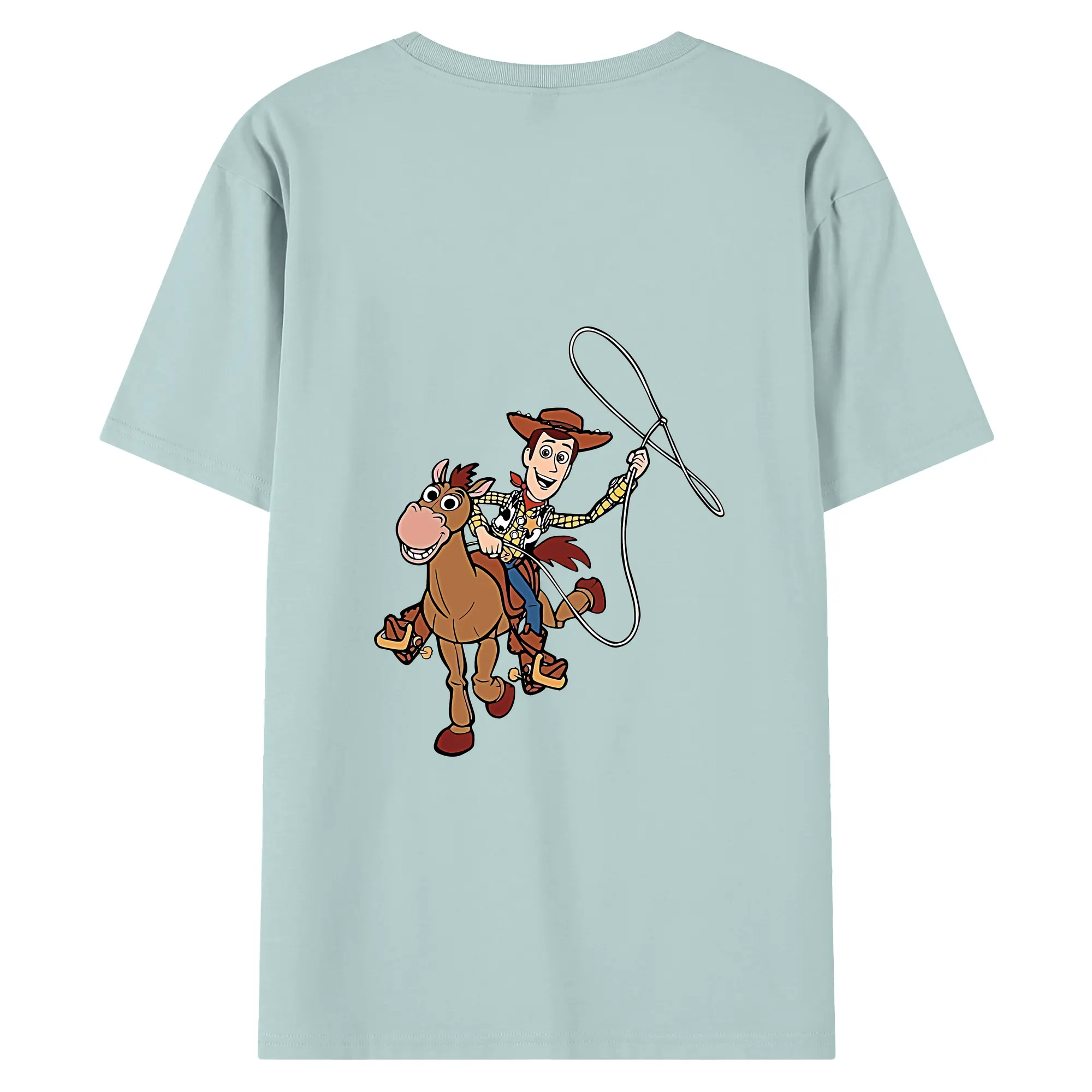 トイ・ストーリー グッズ ウッディ - 綿100% ヴィンテージ風 半袖Tシャツ ・ 背面プリント ・ 柔らか肌触り ・ 通気性 快適 ・ スポーツ カジュアル 外出用
