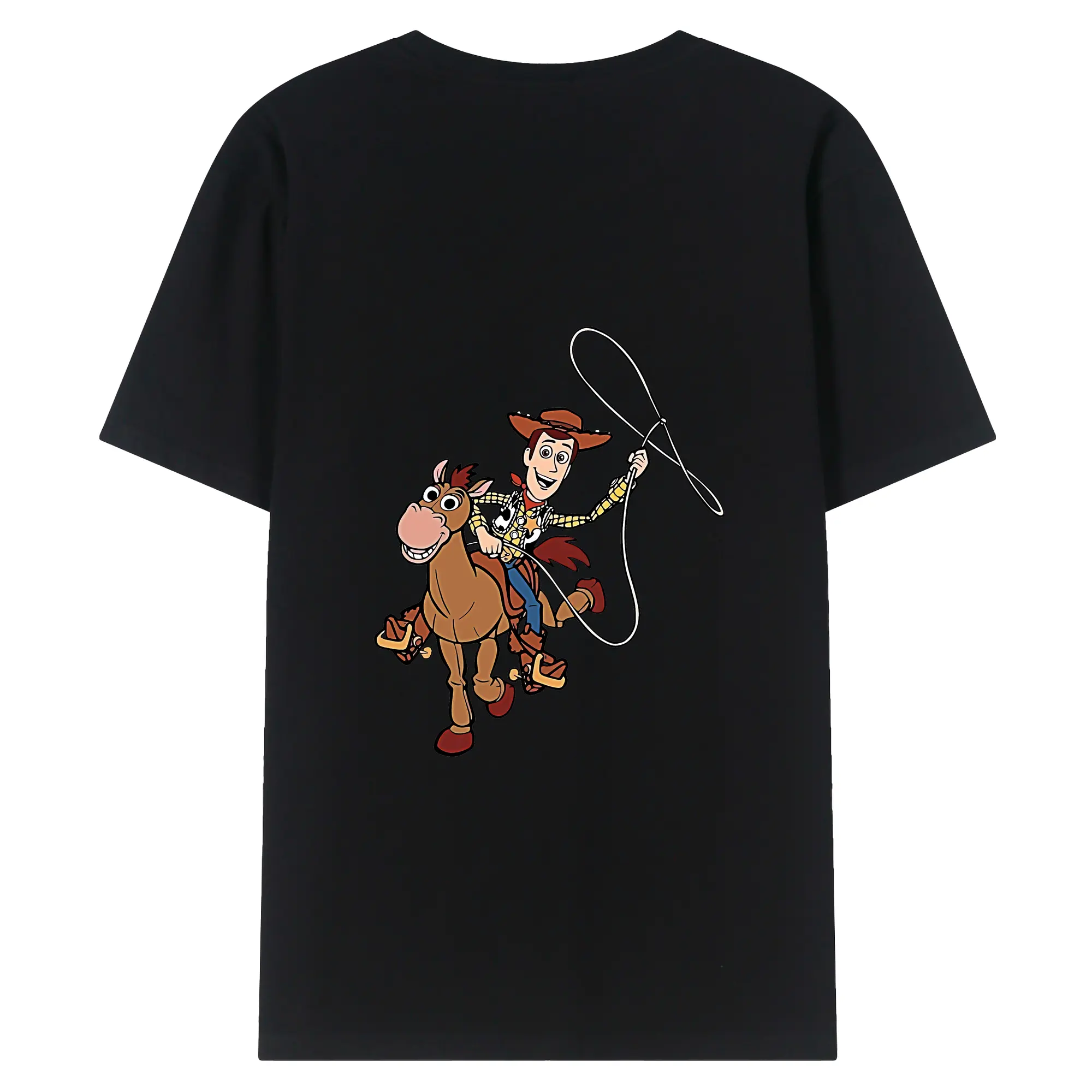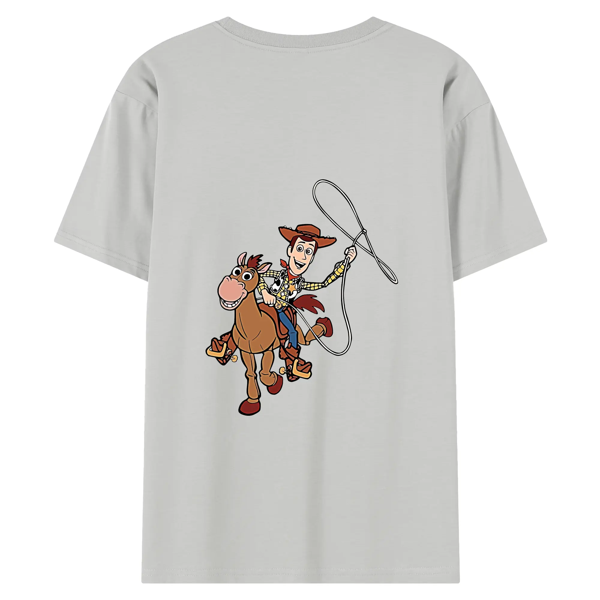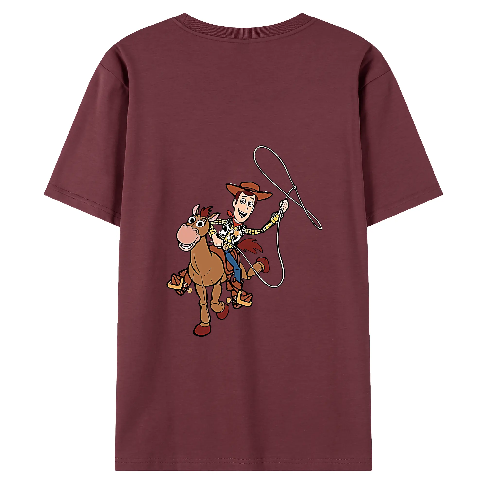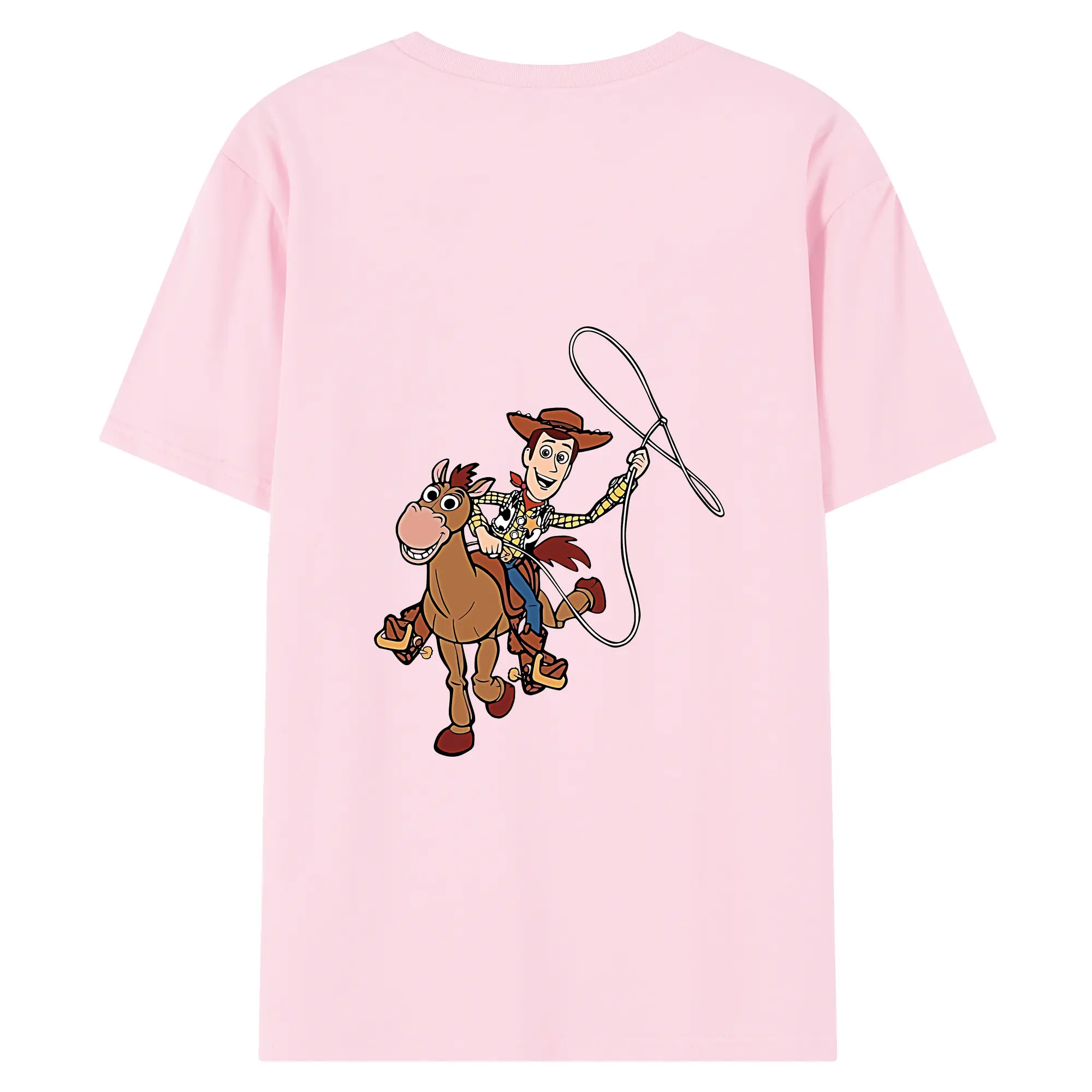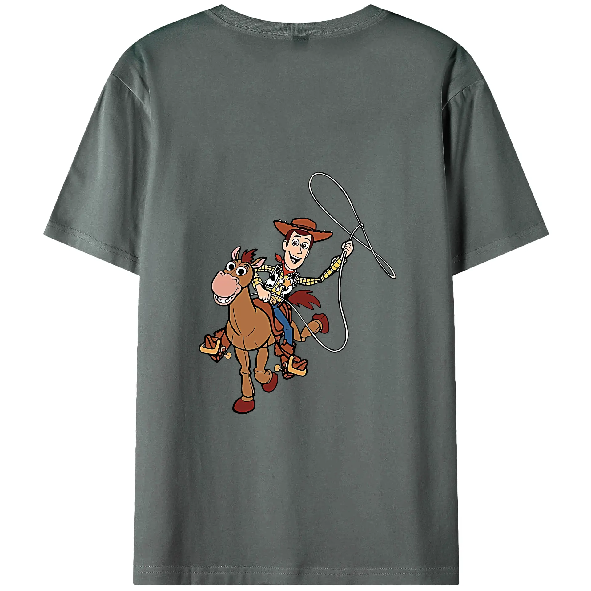 トイ・ストーリー グッズ ウッディ - 綿100% ヴィンテージ風 半袖Tシャツ ・ 背面プリント ・ 柔らか肌触り ・ 通気性 快適 ・ スポーツ カジュアル 外出用