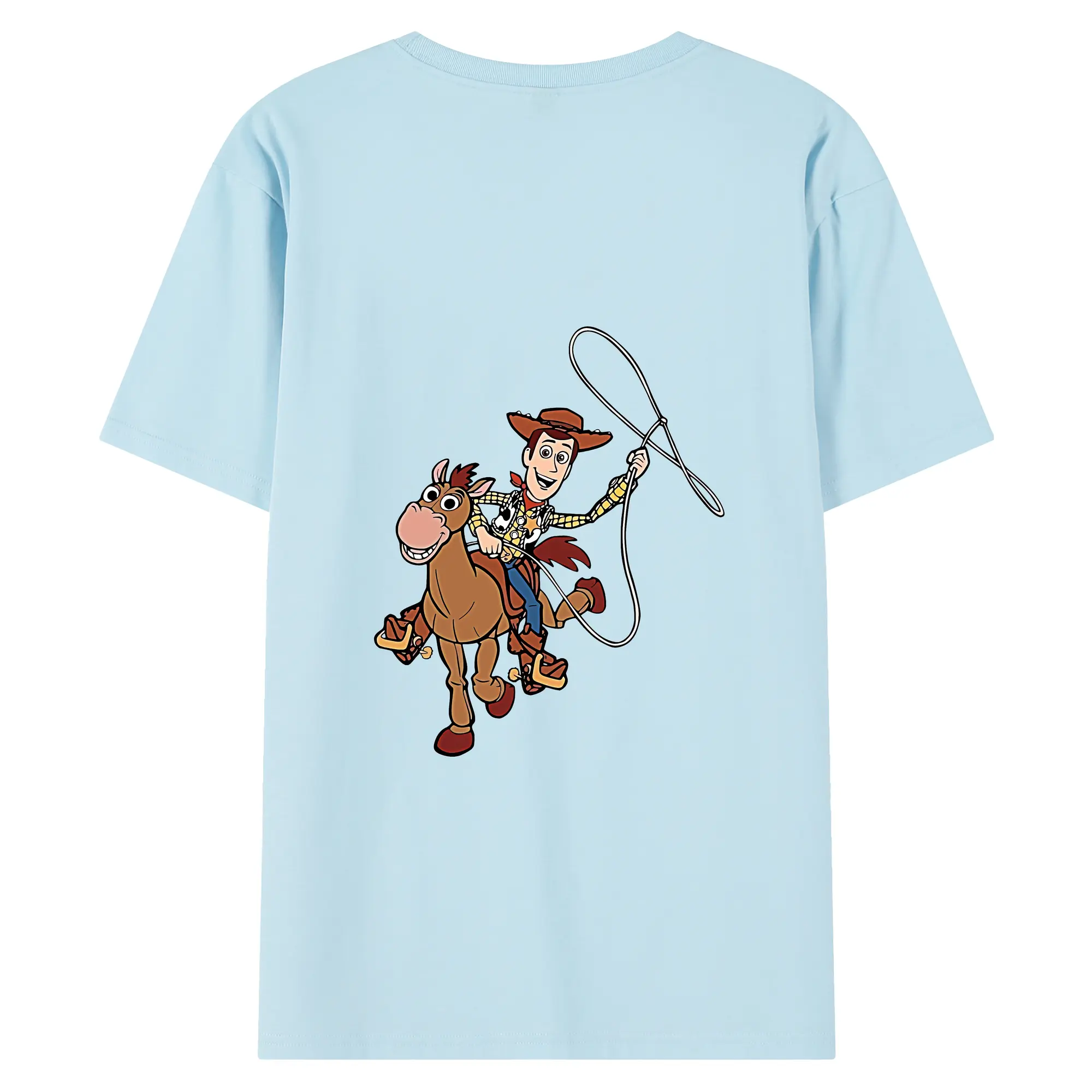 トイ・ストーリー グッズ ウッディ - 綿100% 半袖Tシャツ ・ フロントプリント ・ 快適 通気性 ・ 日常使い 散歩 スポーツ用
