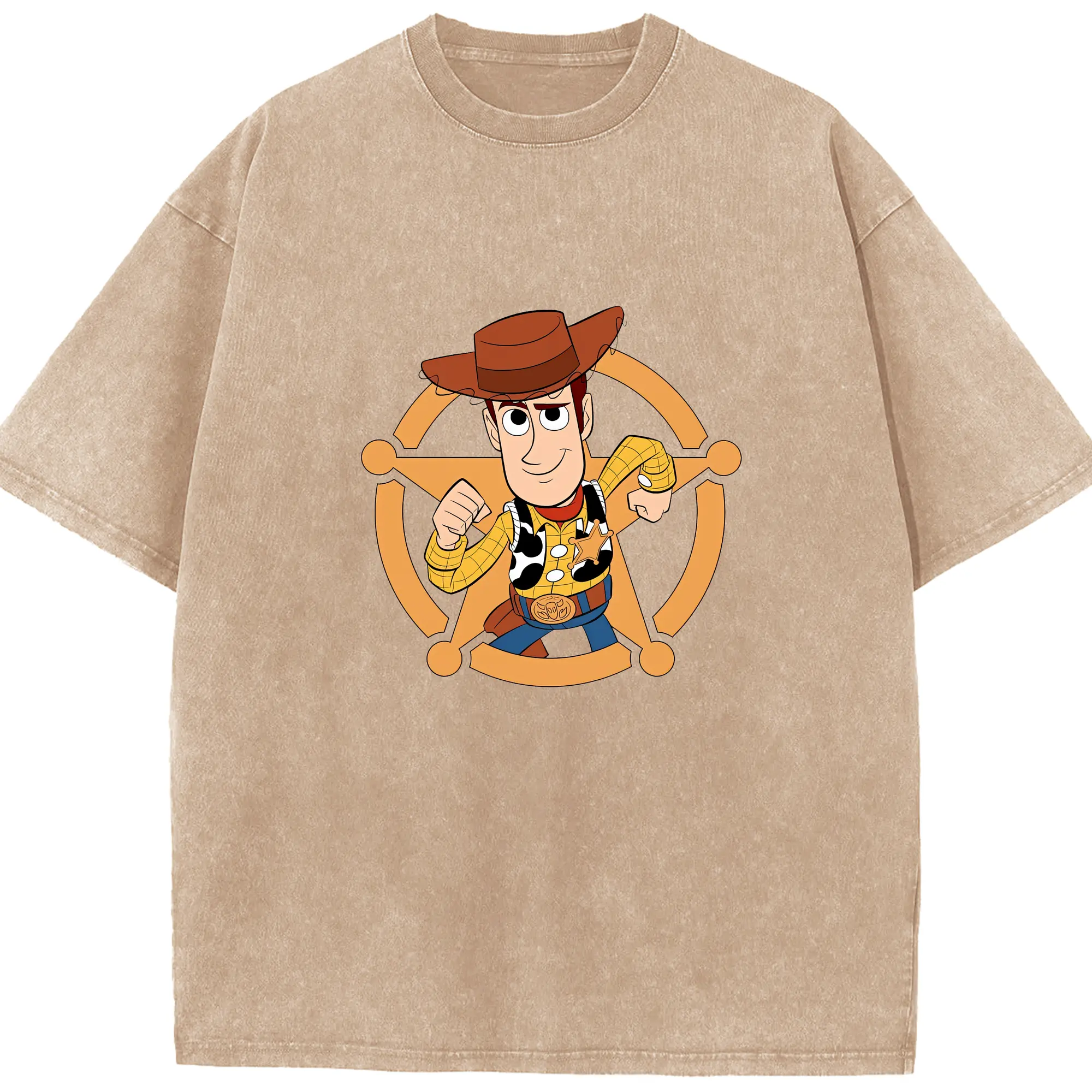 トイ・ストーリー グッズ ウッディ - 綿100% ヴィンテージ風 半袖Tシャツ ・ 背面プリント ・ 柔らか肌触り ・ 通気性 快適 ・ スポーツ カジュアル 外出用