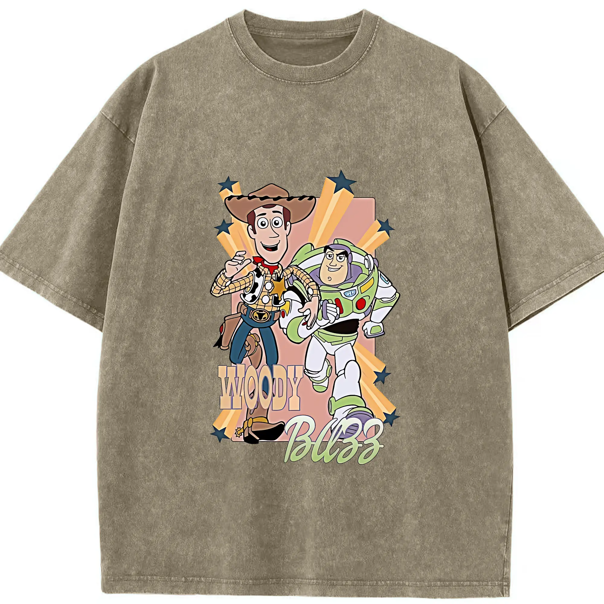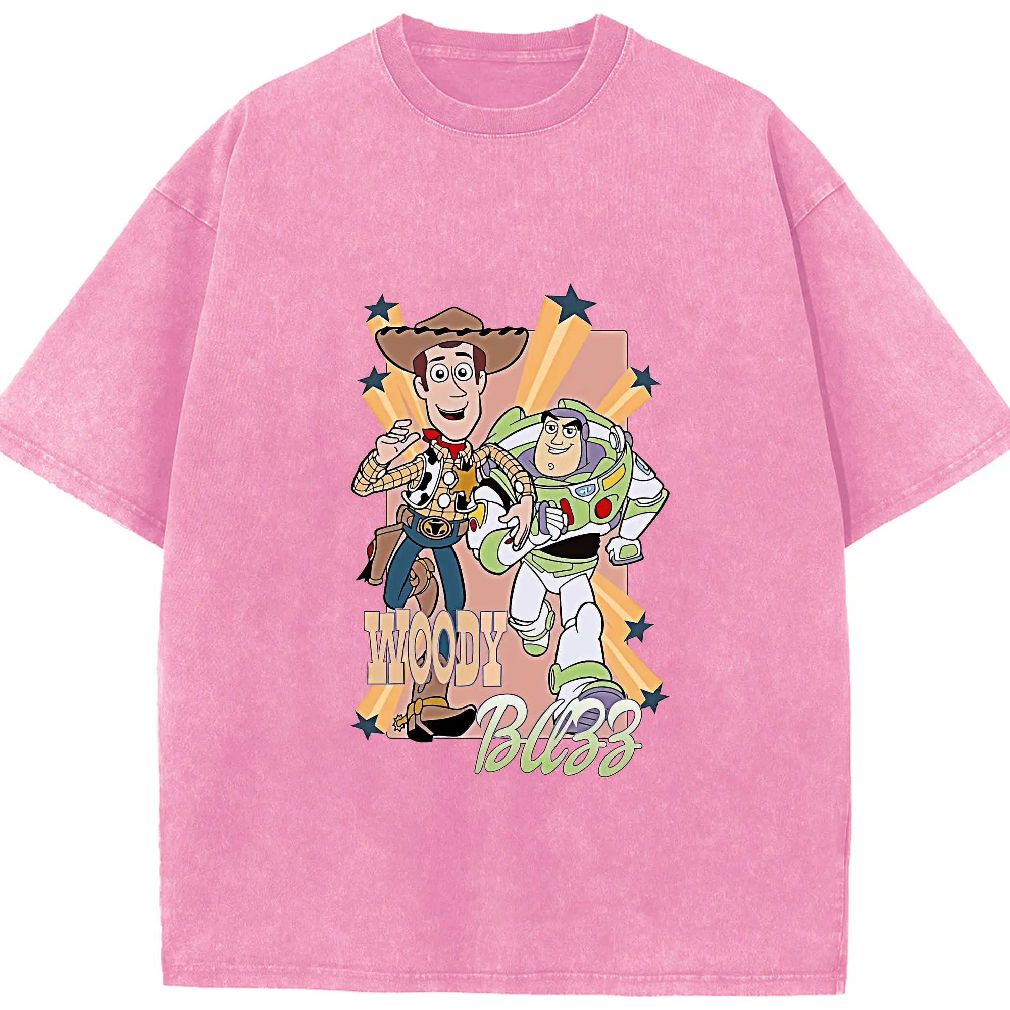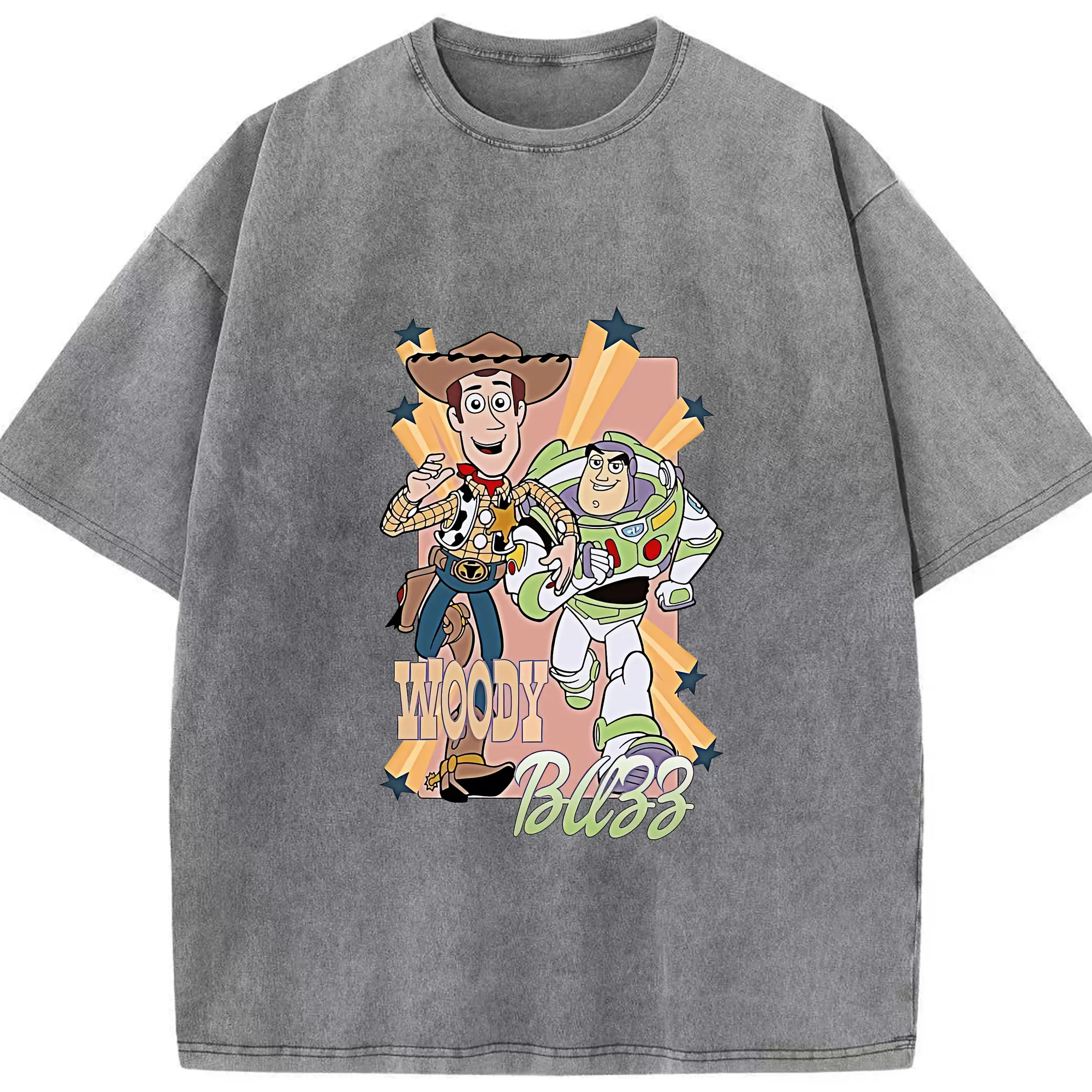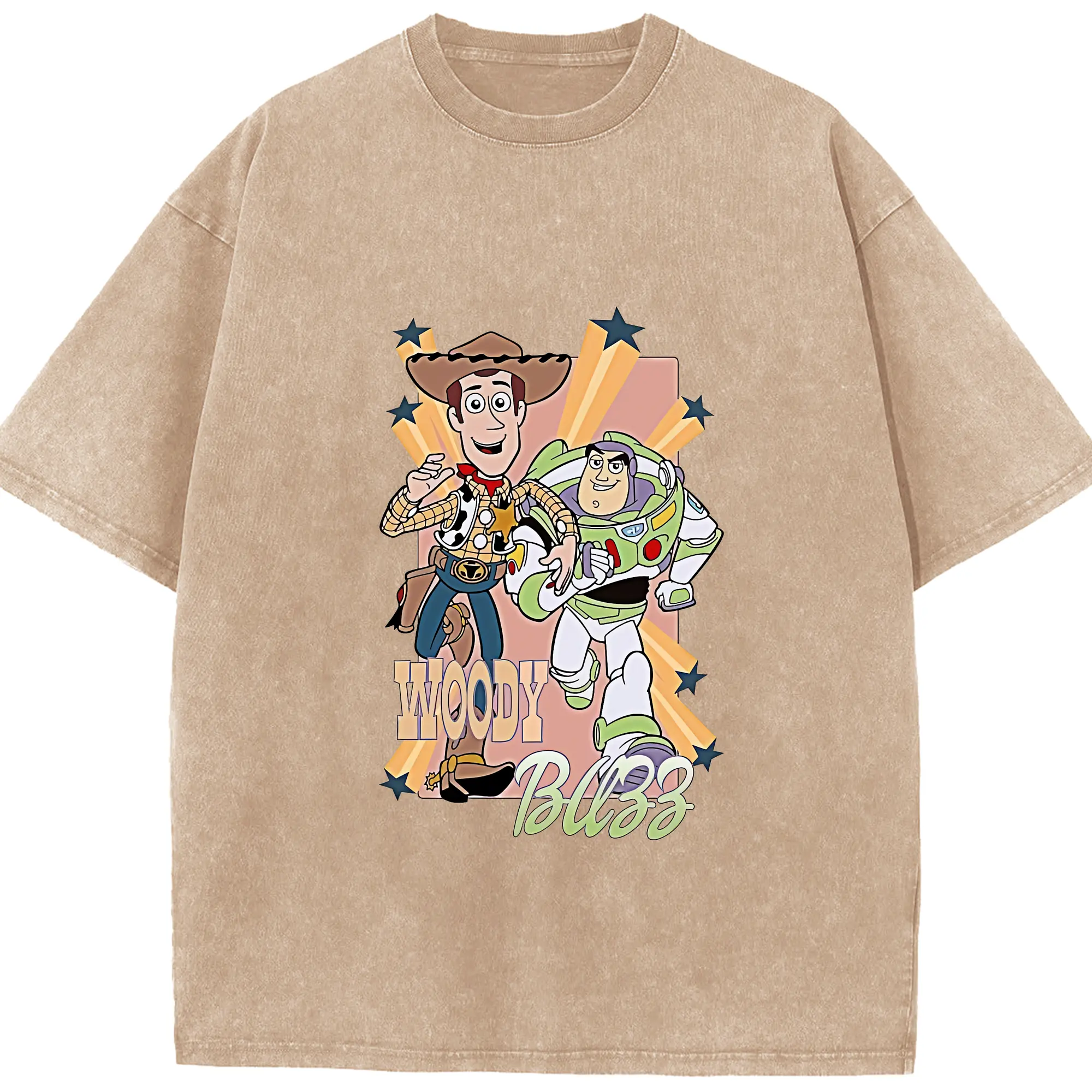 トイ・ストーリー グッズ ウッディ - 綿100% ヴィンテージ風 半袖Tシャツ ・ 背面プリント ・ 柔らか肌触り ・ 通気性 快適 ・ スポーツ カジュアル 外出用