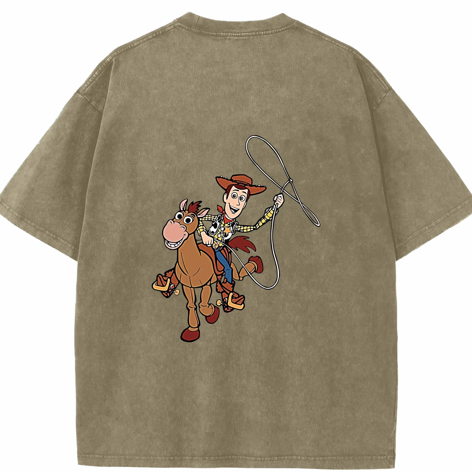 トイ・ストーリー グッズ ウッディ - 綿100% ヴィンテージ風 半袖Tシャツ ・ フロントプリント ・ 柔らか肌触り ・ 通気性 快適 ・ スポーツ カジュアル 外出用