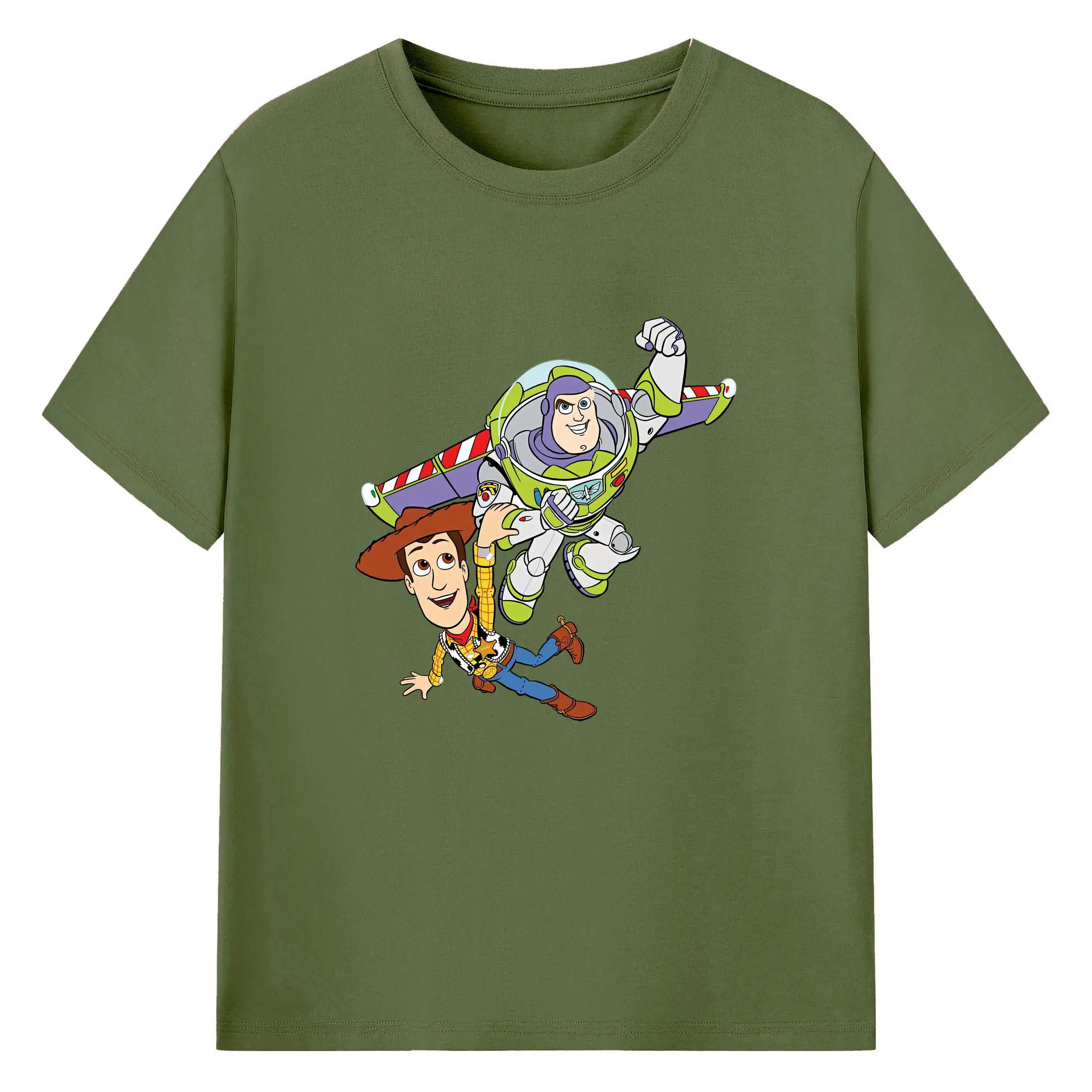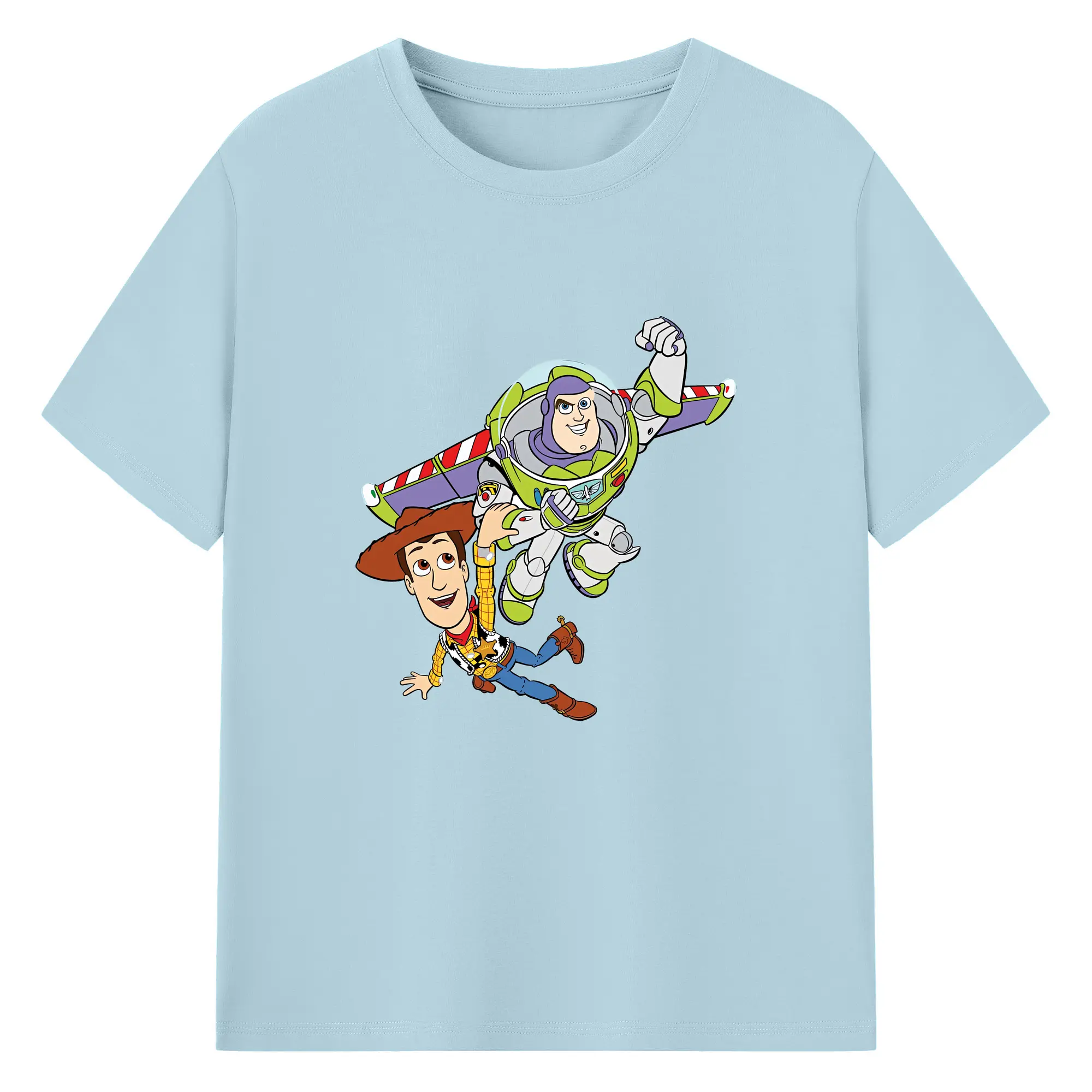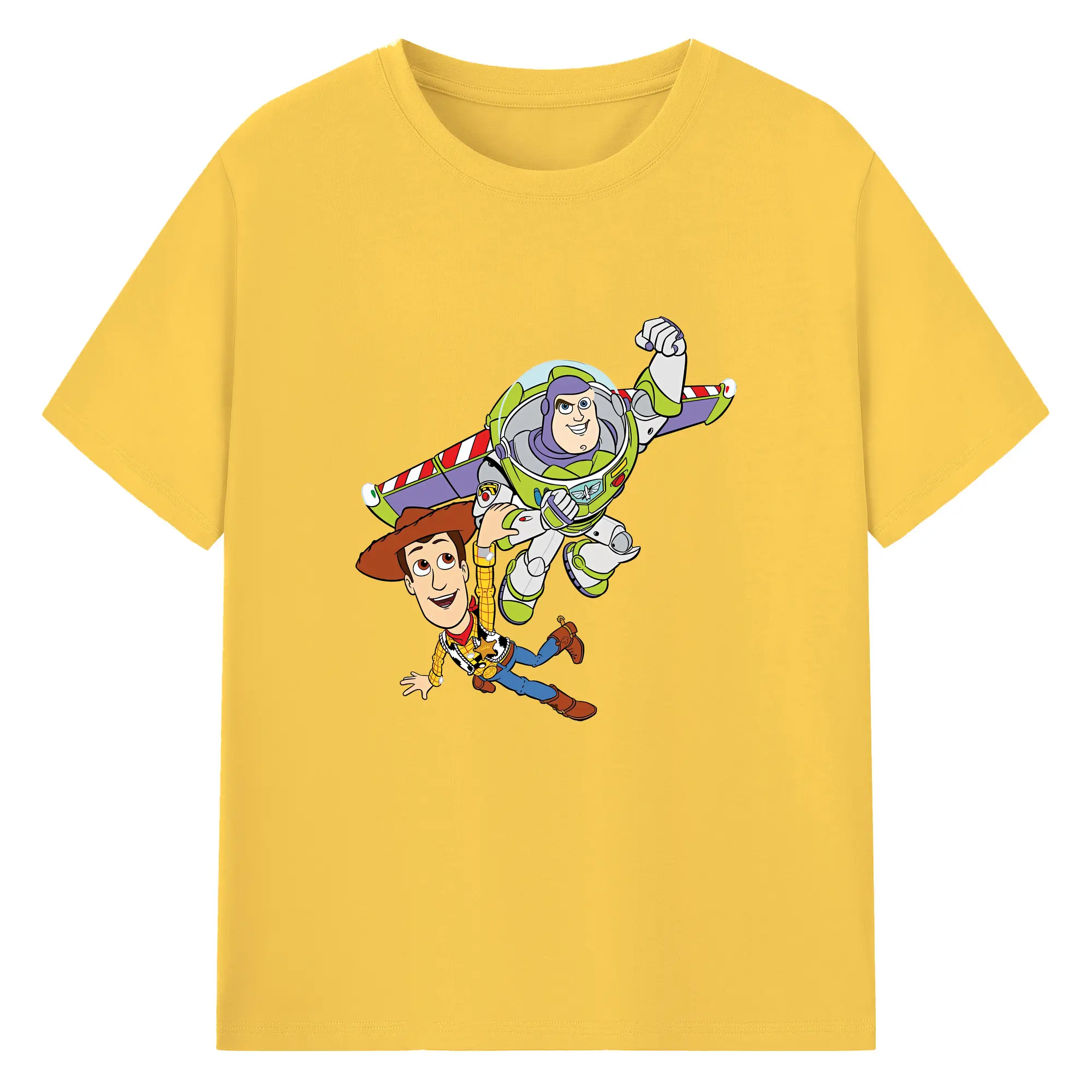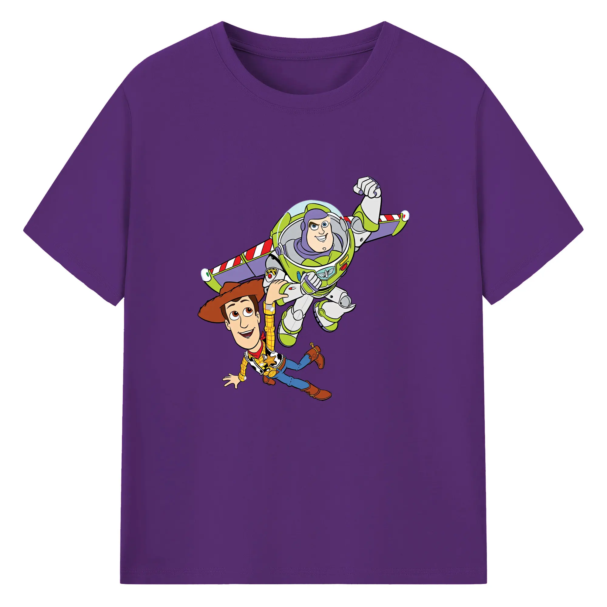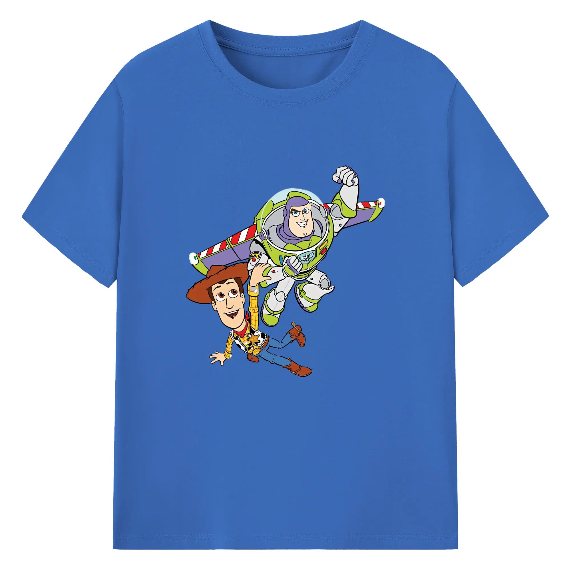 トイ・ストーリー グッズ バズ・ライトイヤー - 綿100% 半袖Tシャツ ・ バックプリント ・ 快適 通気性 ・ 日常使い 散歩 スポーツ用