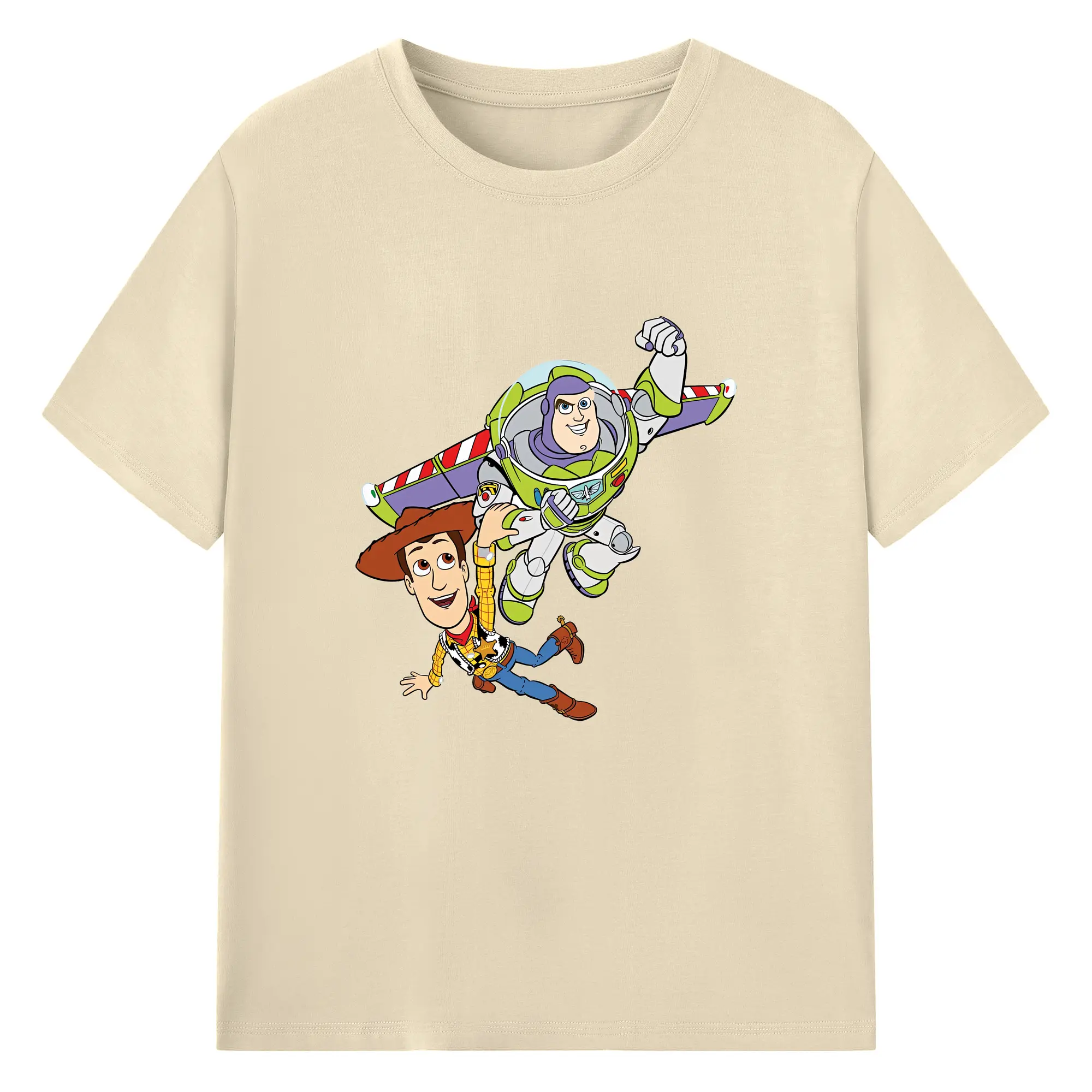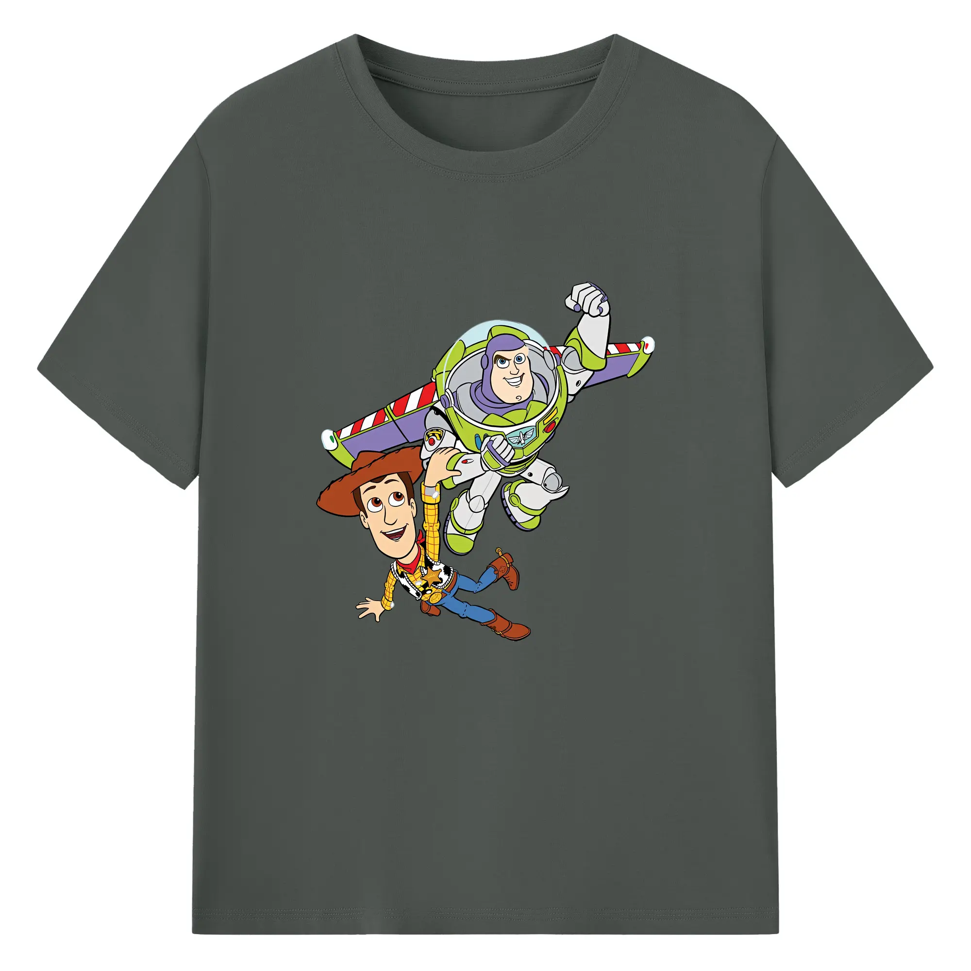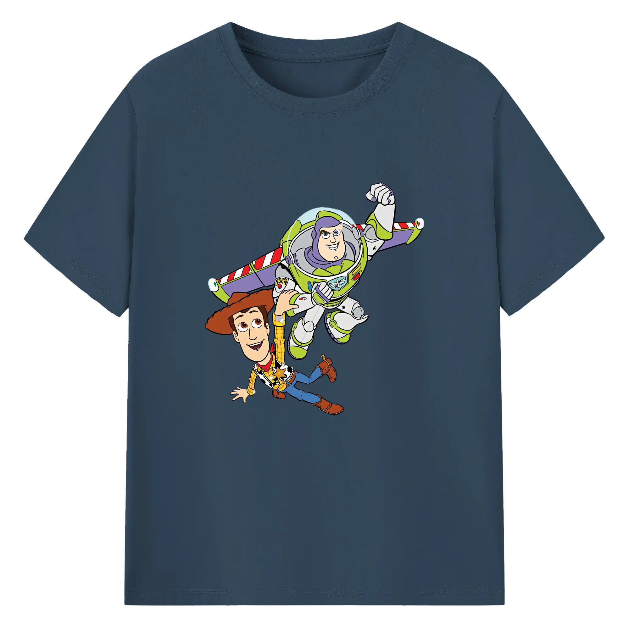 トイ・ストーリー グッズ バズ・ライトイヤー - 綿100% ヴィンテージ風 半袖Tシャツ ・ 背面プリント ・ 柔らか肌触り ・ 通気性 快適 ・ スポーツ カジュアル 外出用