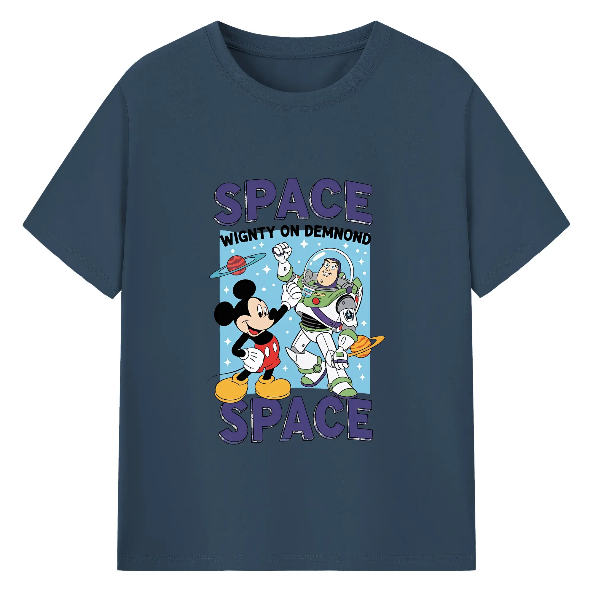 トイ・ストーリー グッズ バズ・ライトイヤー - 綿100% ヴィンテージ風 半袖Tシャツ ・ フロントプリント ・ 柔らか肌触り ・ 通気性 快適 ・ スポーツ カジュアル 外出用