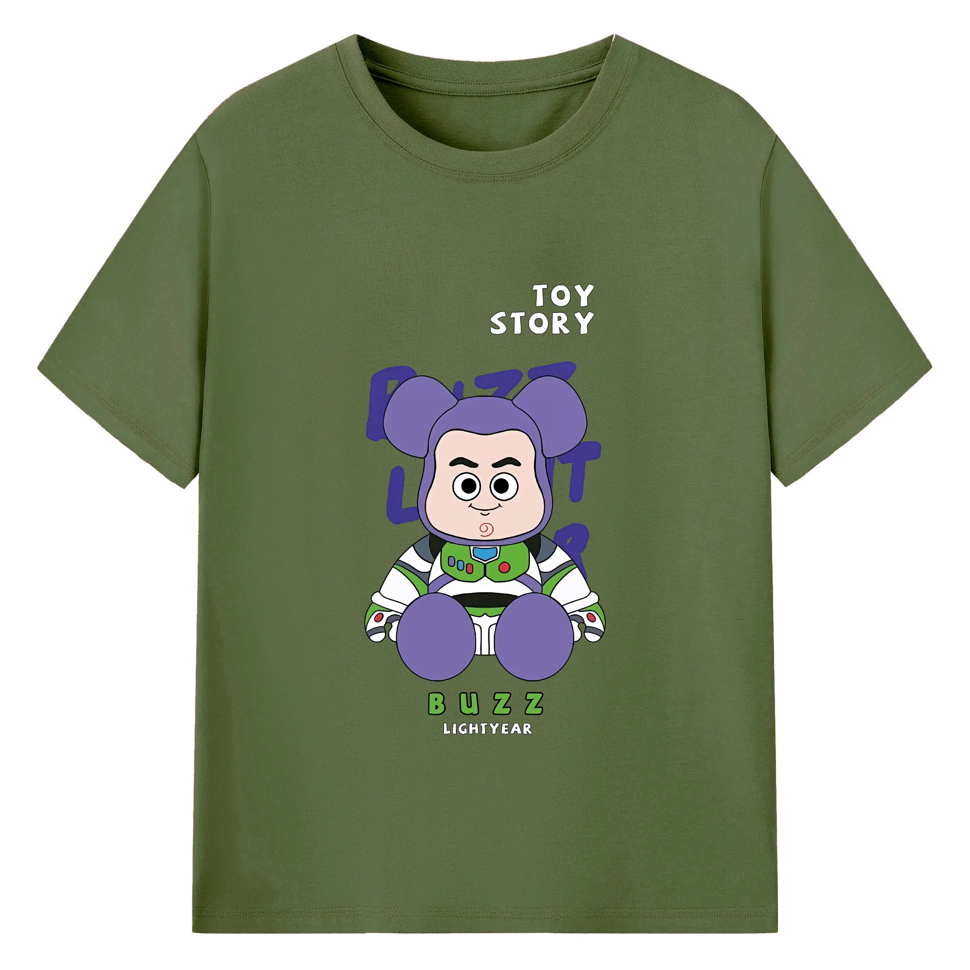 トイ・ストーリー グッズ バズ・ライトイヤー - 綿100% 半袖Tシャツ ・ バックプリント ・ 快適 通気性 ・ 日常使い 散歩 スポーツ用
