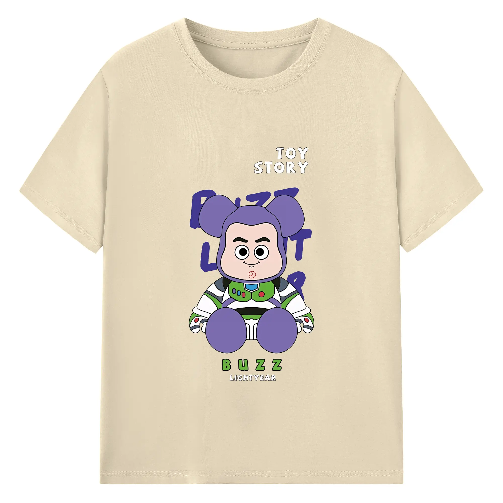 トイ・ストーリー グッズ バズ・ライトイヤー - 綿100% ヴィンテージ風 半袖Tシャツ ・ フロントプリント ・ 柔らか肌触り ・ 通気性 快適 ・ スポーツ カジュアル 外出用