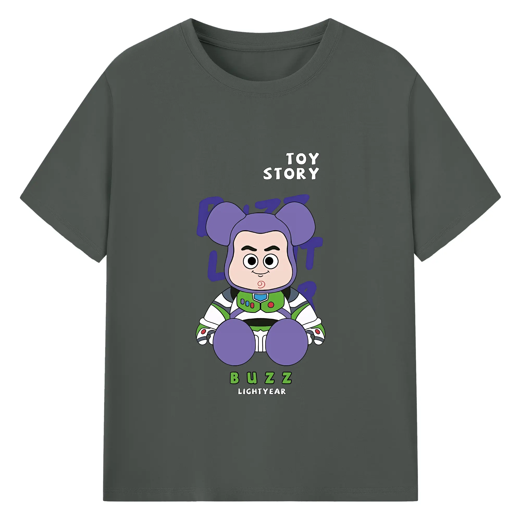 トイ・ストーリー グッズ バズ・ライトイヤー - 綿100% ヴィンテージ風 半袖Tシャツ ・ 背面プリント ・ 柔らか肌触り ・ 通気性 快適 ・ スポーツ カジュアル 外出用