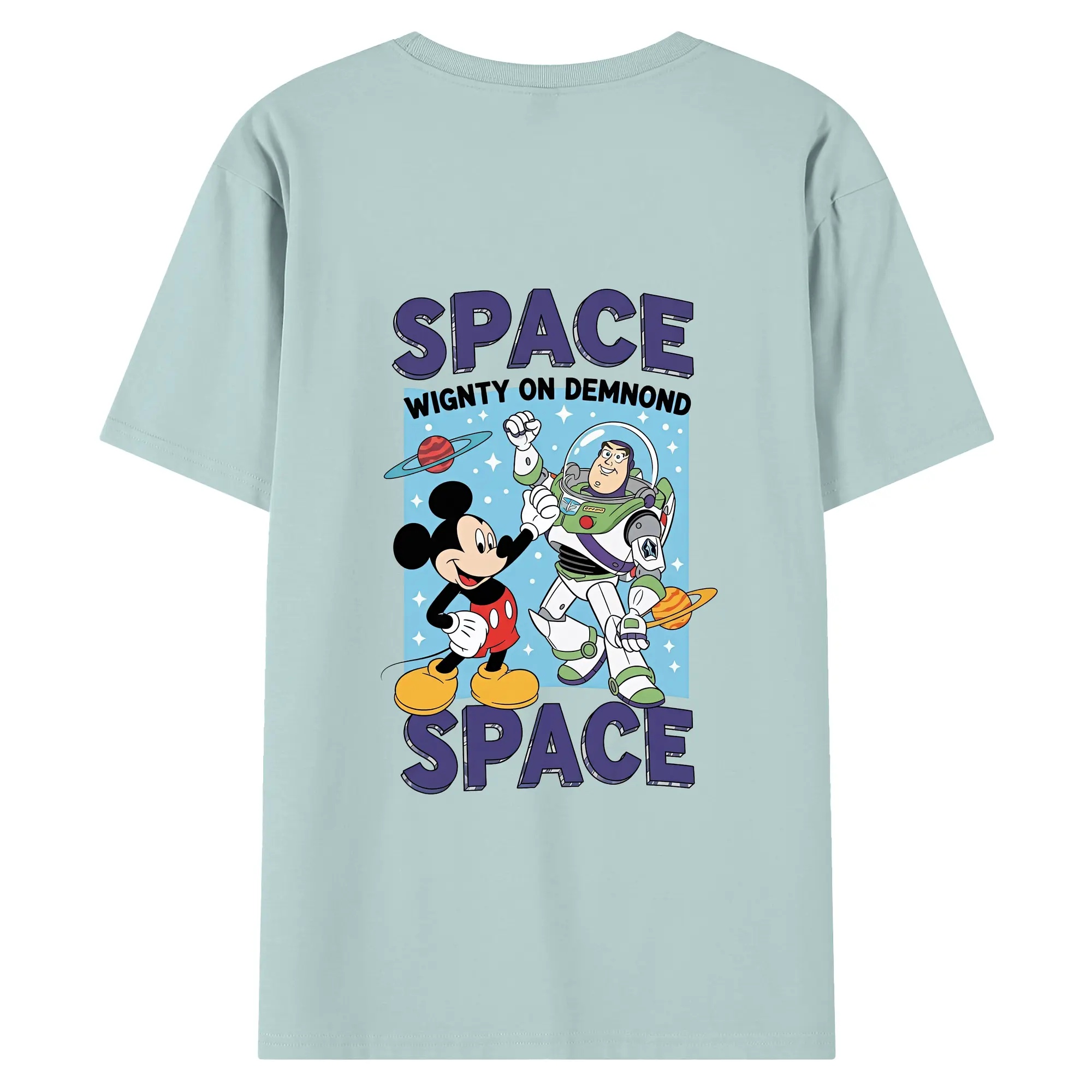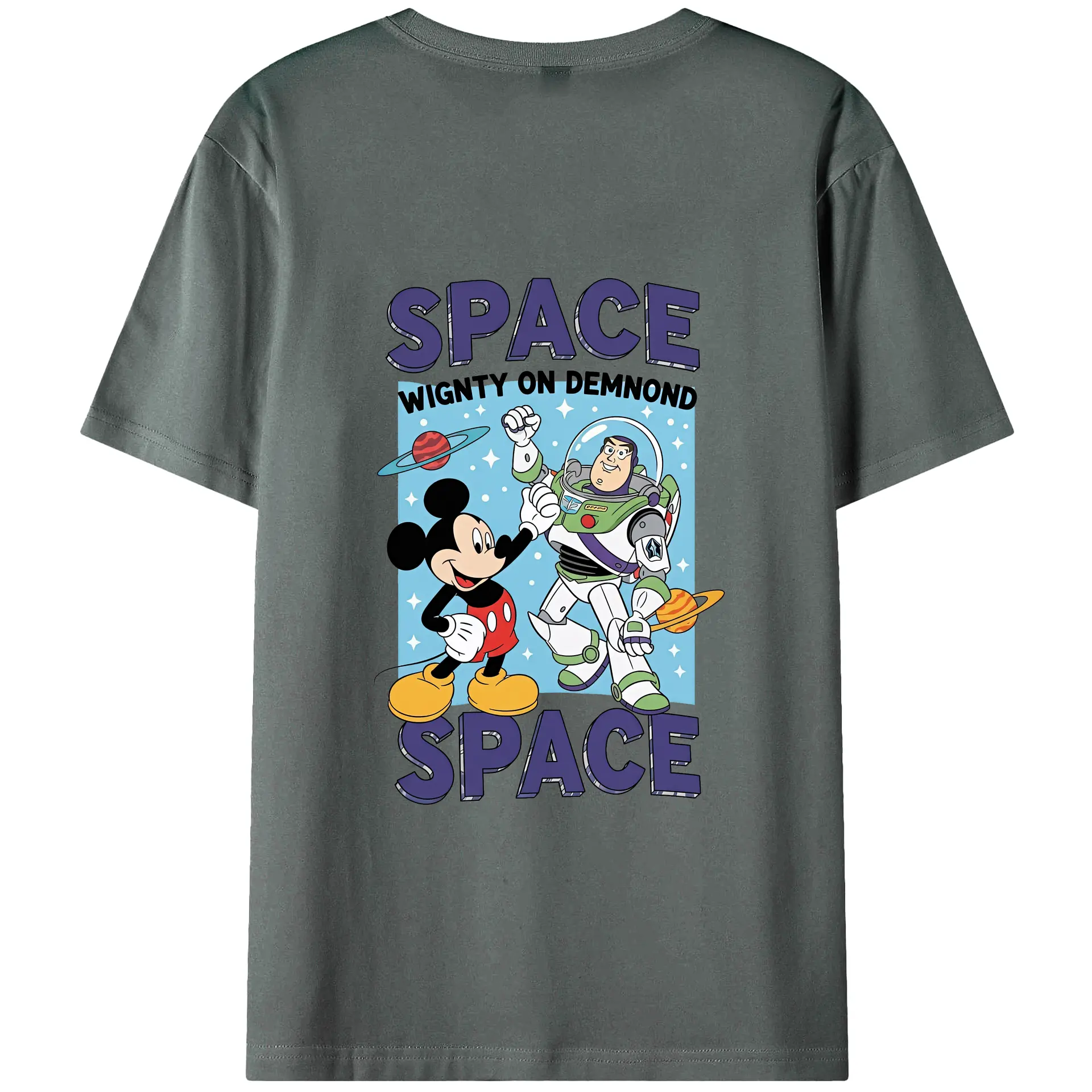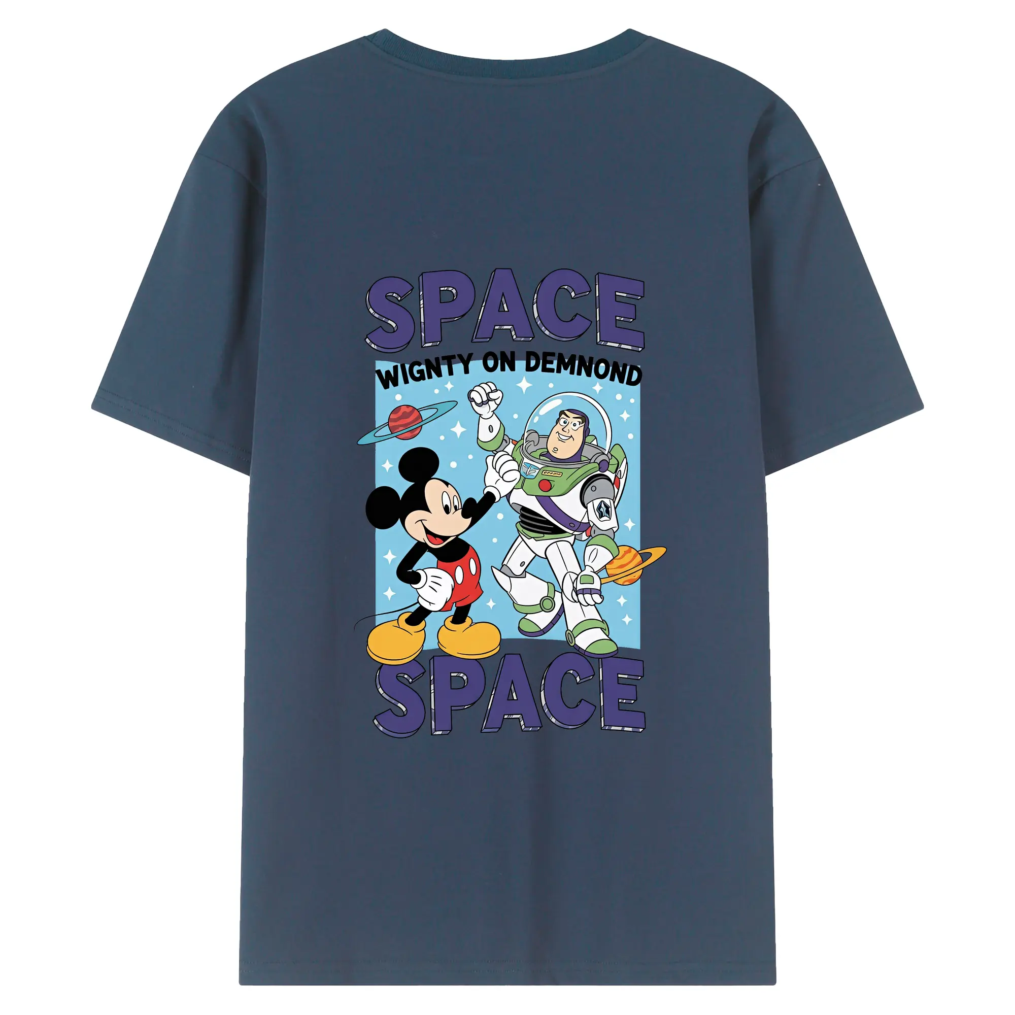 トイ・ストーリー グッズ バズ・ライトイヤー - 綿100% ヴィンテージ風 半袖Tシャツ ・ 背面プリント ・ 柔らか肌触り ・ 通気性 快適 ・ スポーツ カジュアル 外出用