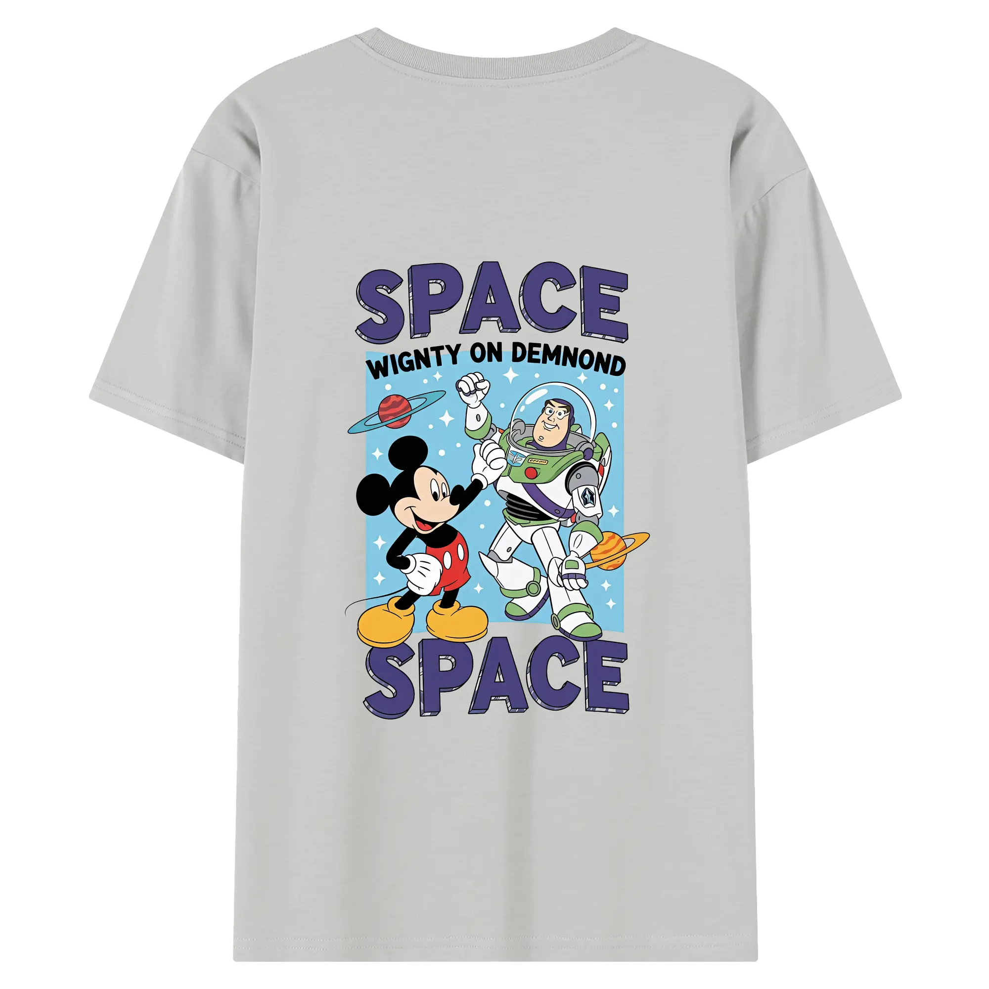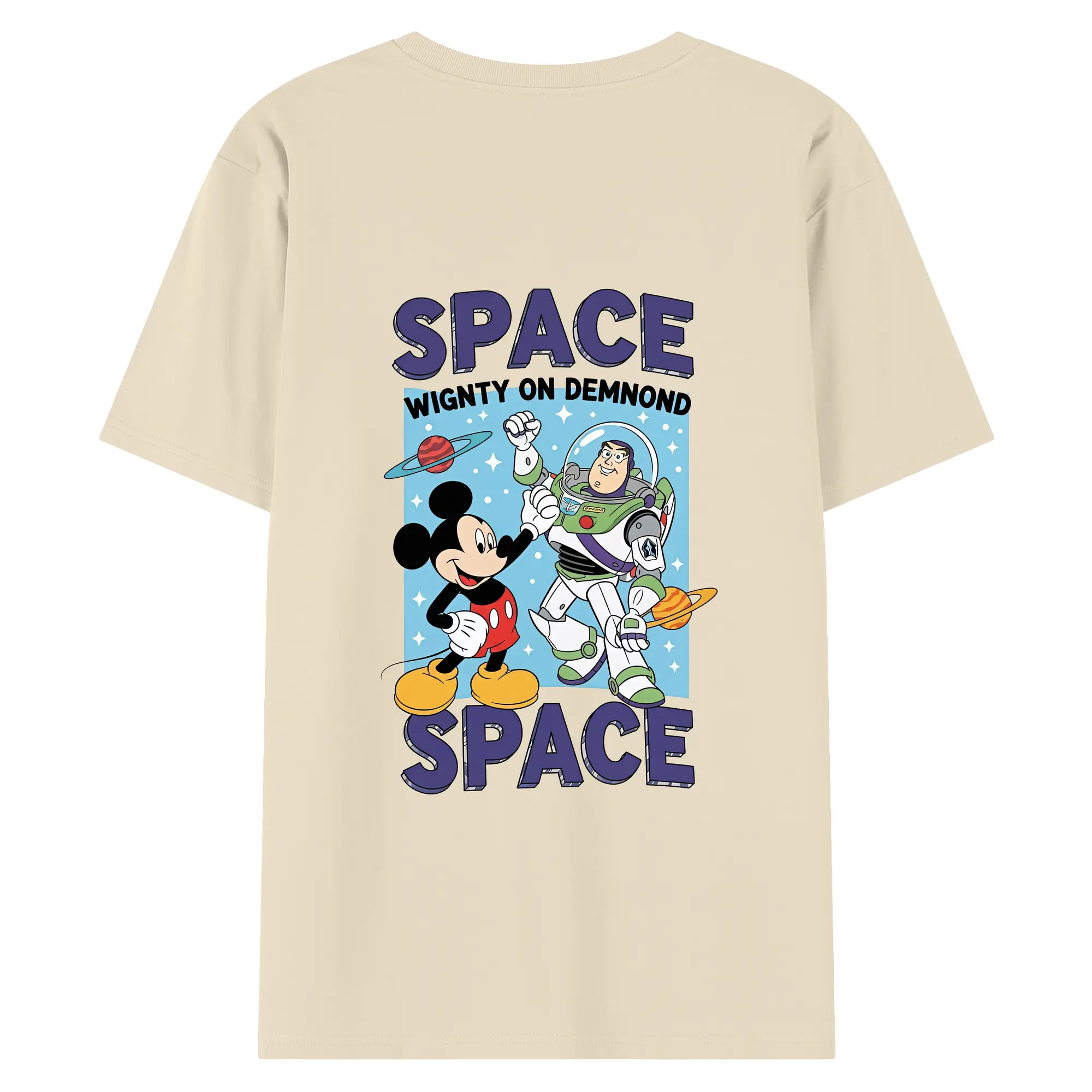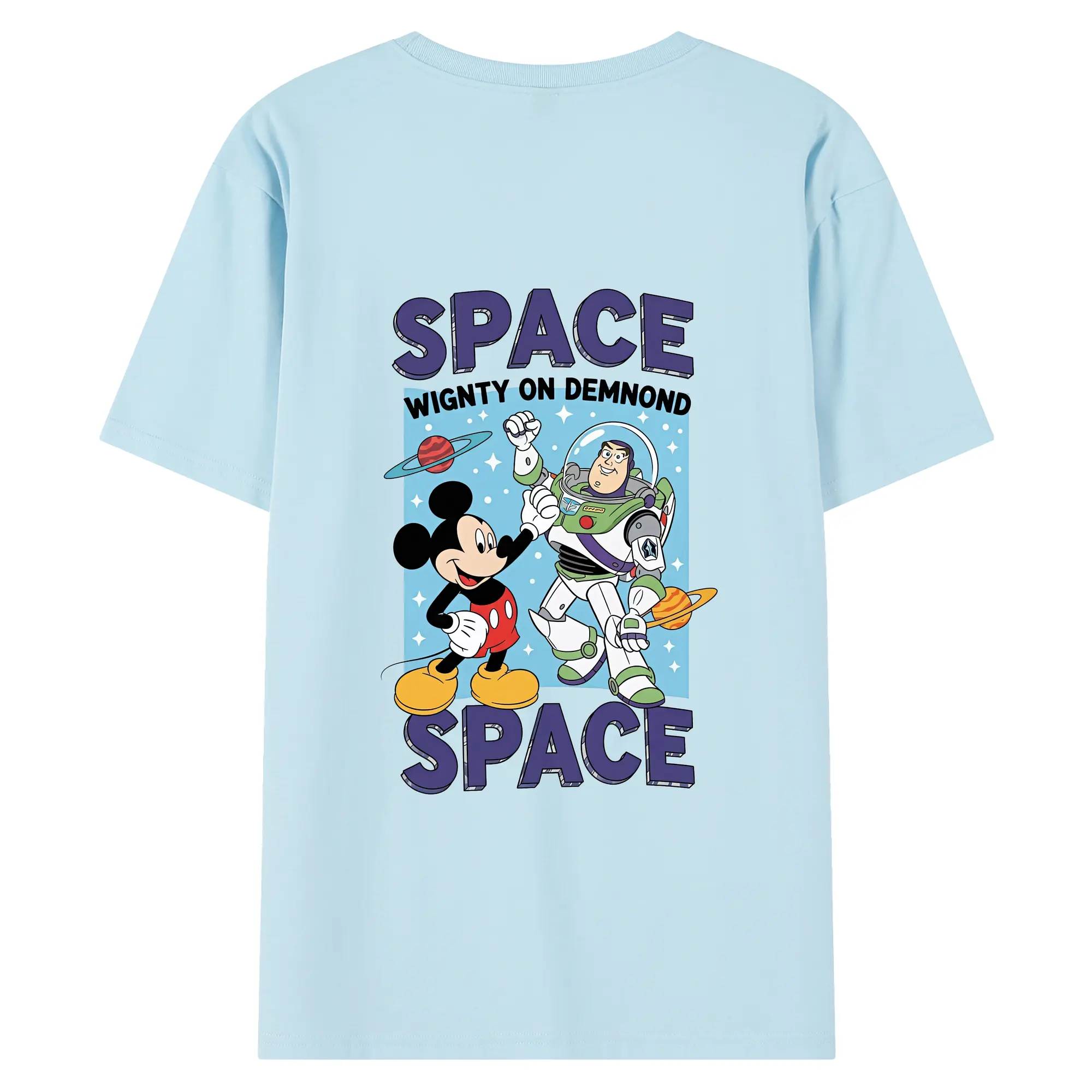 トイ・ストーリー グッズ バズ・ライトイヤー - 綿100% ヴィンテージ風 半袖Tシャツ ・ 背面プリント ・ 柔らか肌触り ・ 通気性 快適 ・ スポーツ カジュアル 外出用