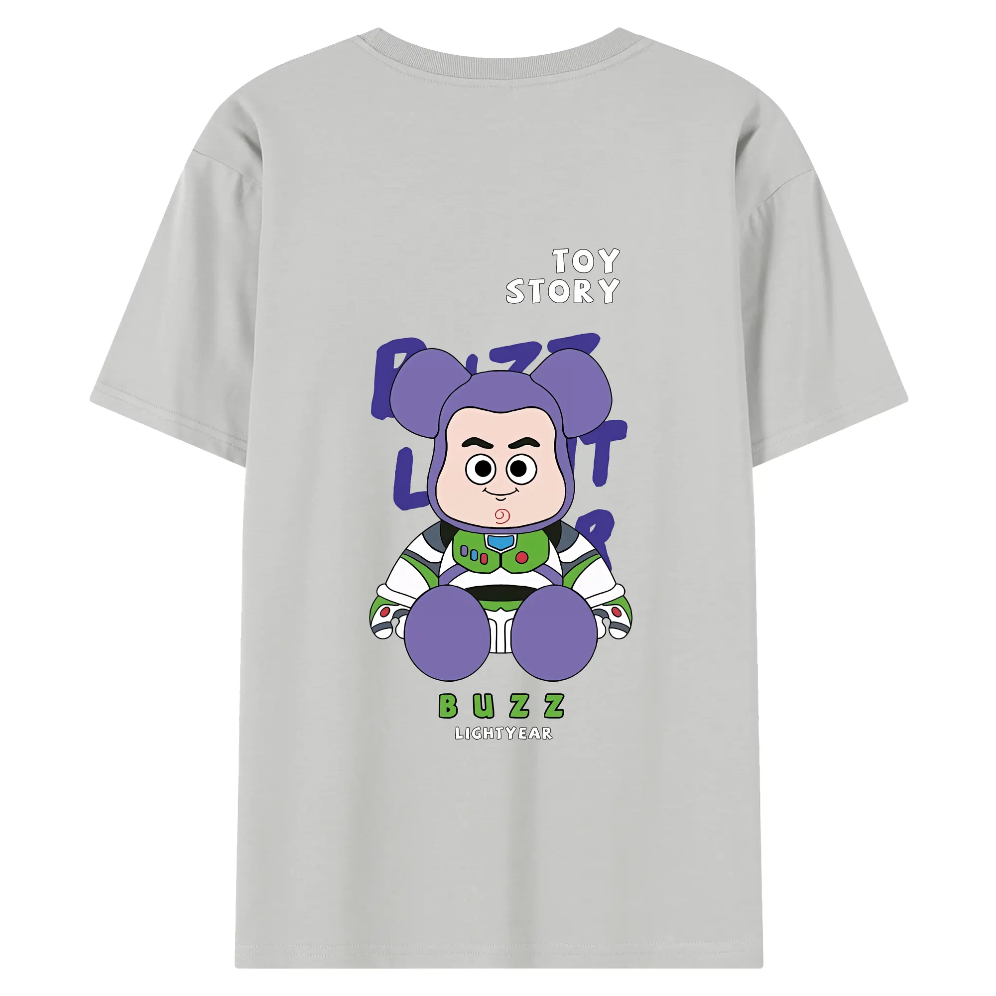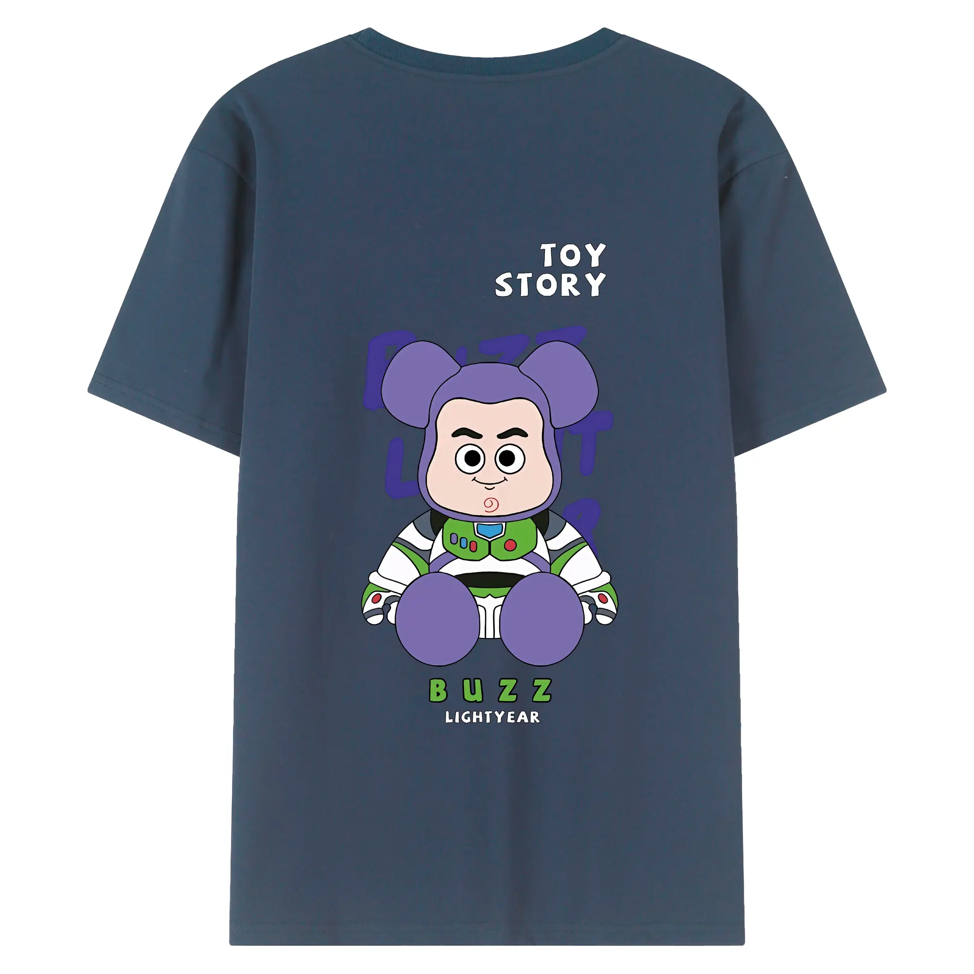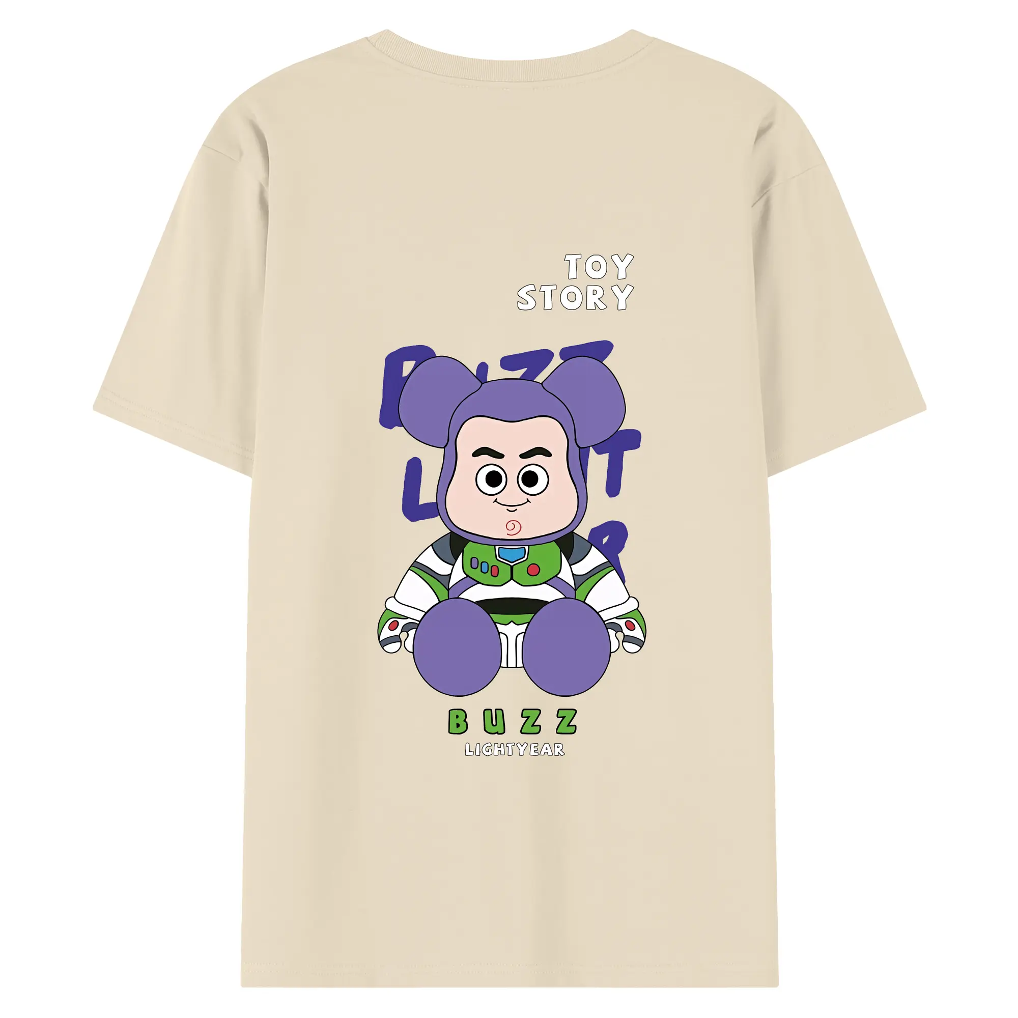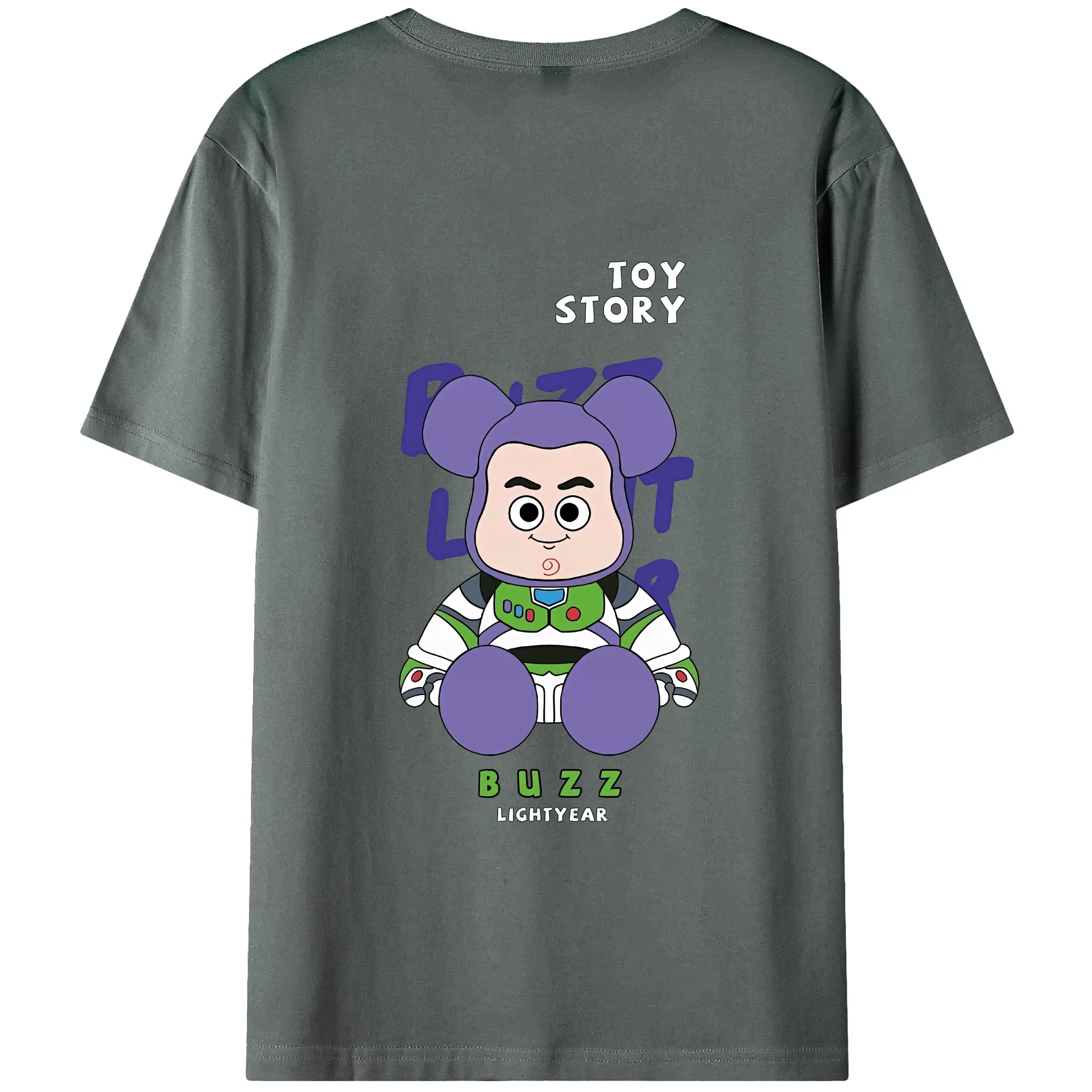 トイ・ストーリー グッズ バズ・ライトイヤー - 綿100% ヴィンテージ風 半袖Tシャツ ・ 背面プリント ・ 柔らか肌触り ・ 通気性 快適 ・ スポーツ カジュアル 外出用