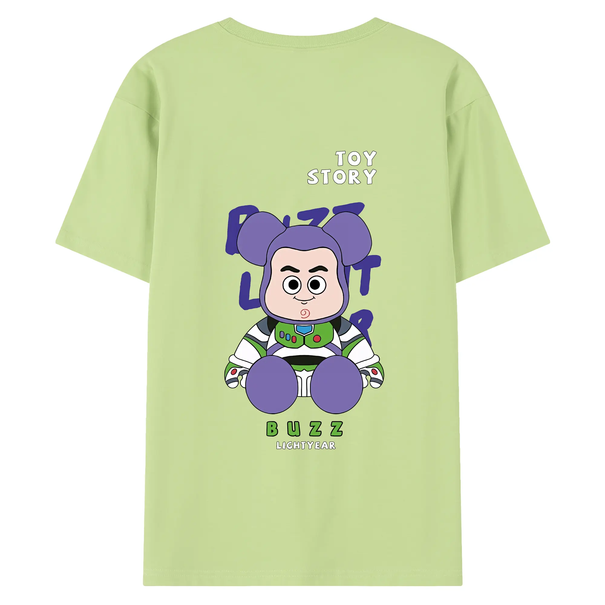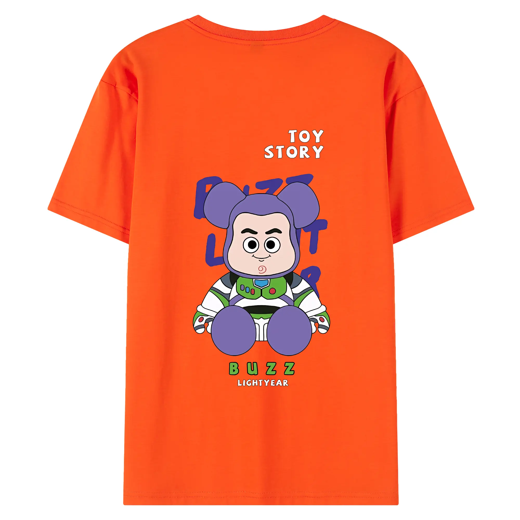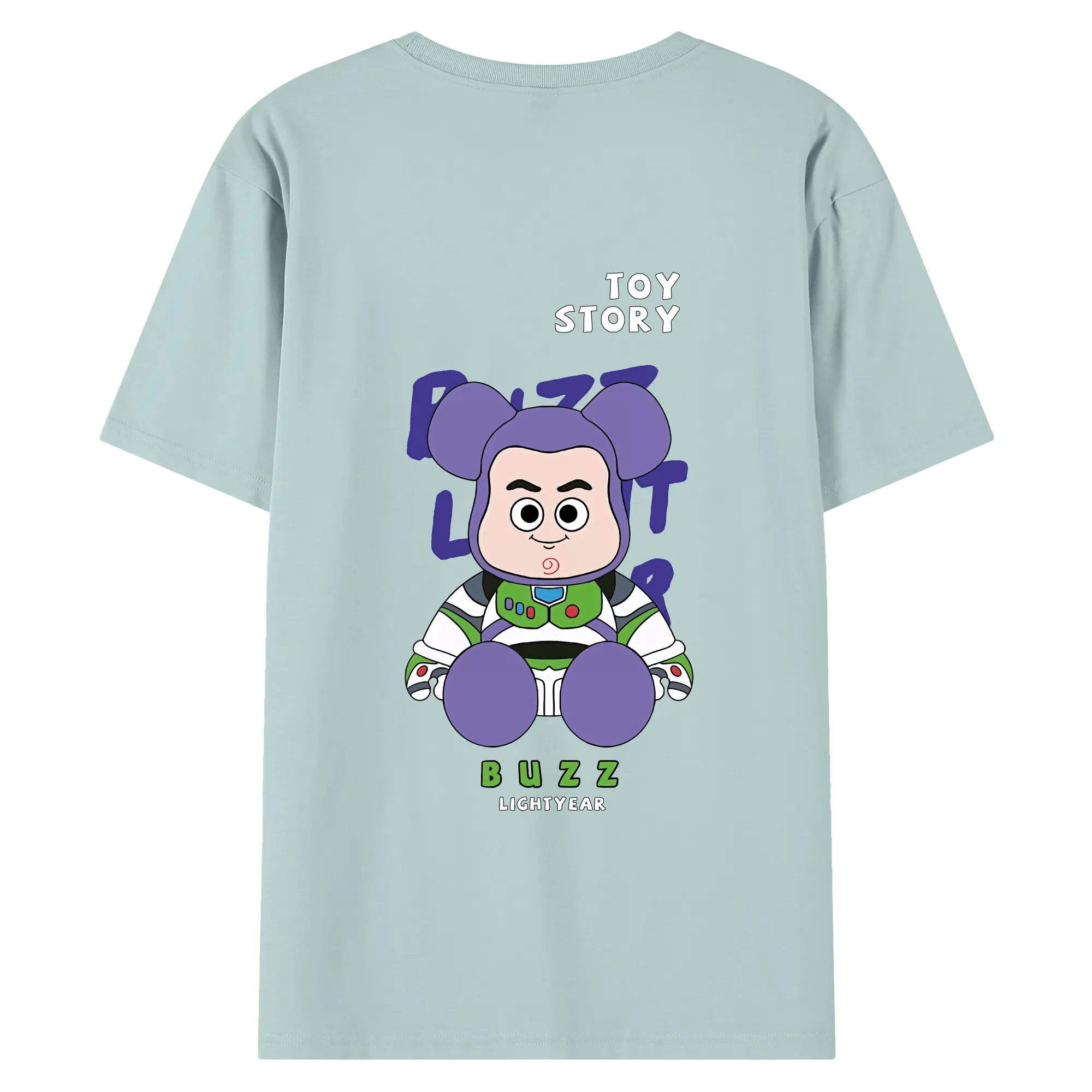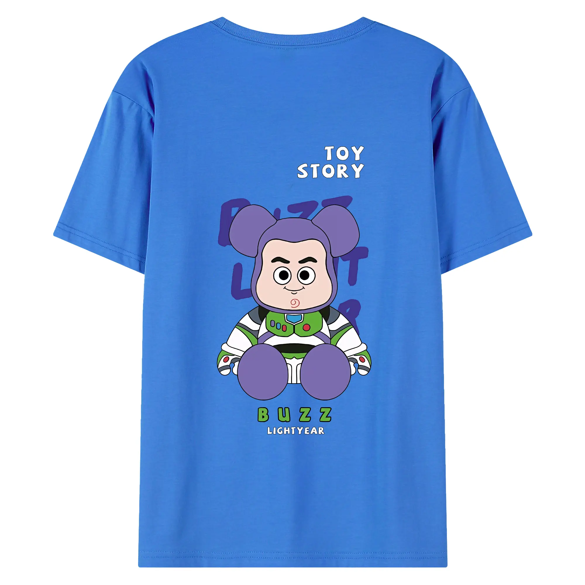トイ・ストーリー グッズ バズ・ライトイヤー - 綿100% ヴィンテージ風 半袖Tシャツ ・ 背面プリント ・ 柔らか肌触り ・ 通気性 快適 ・ スポーツ カジュアル 外出用