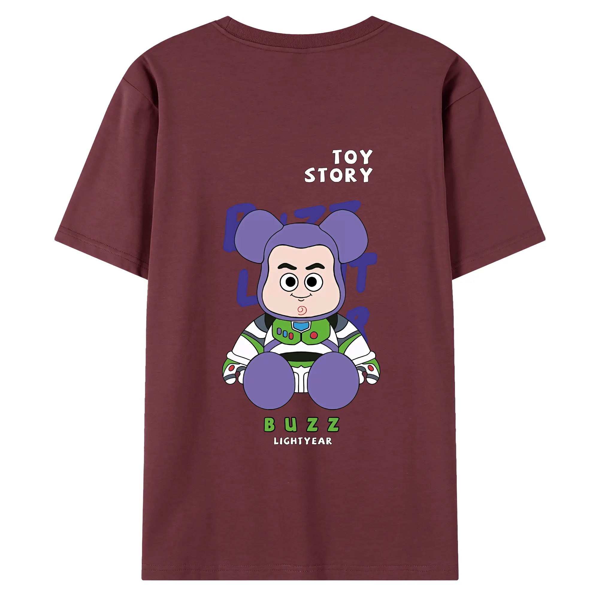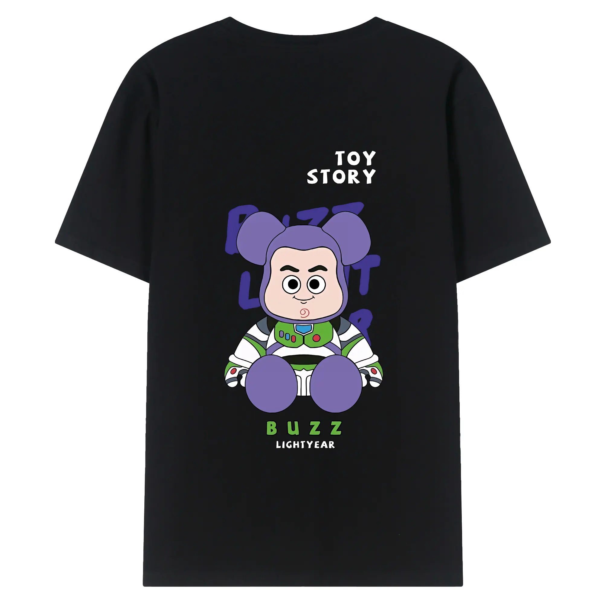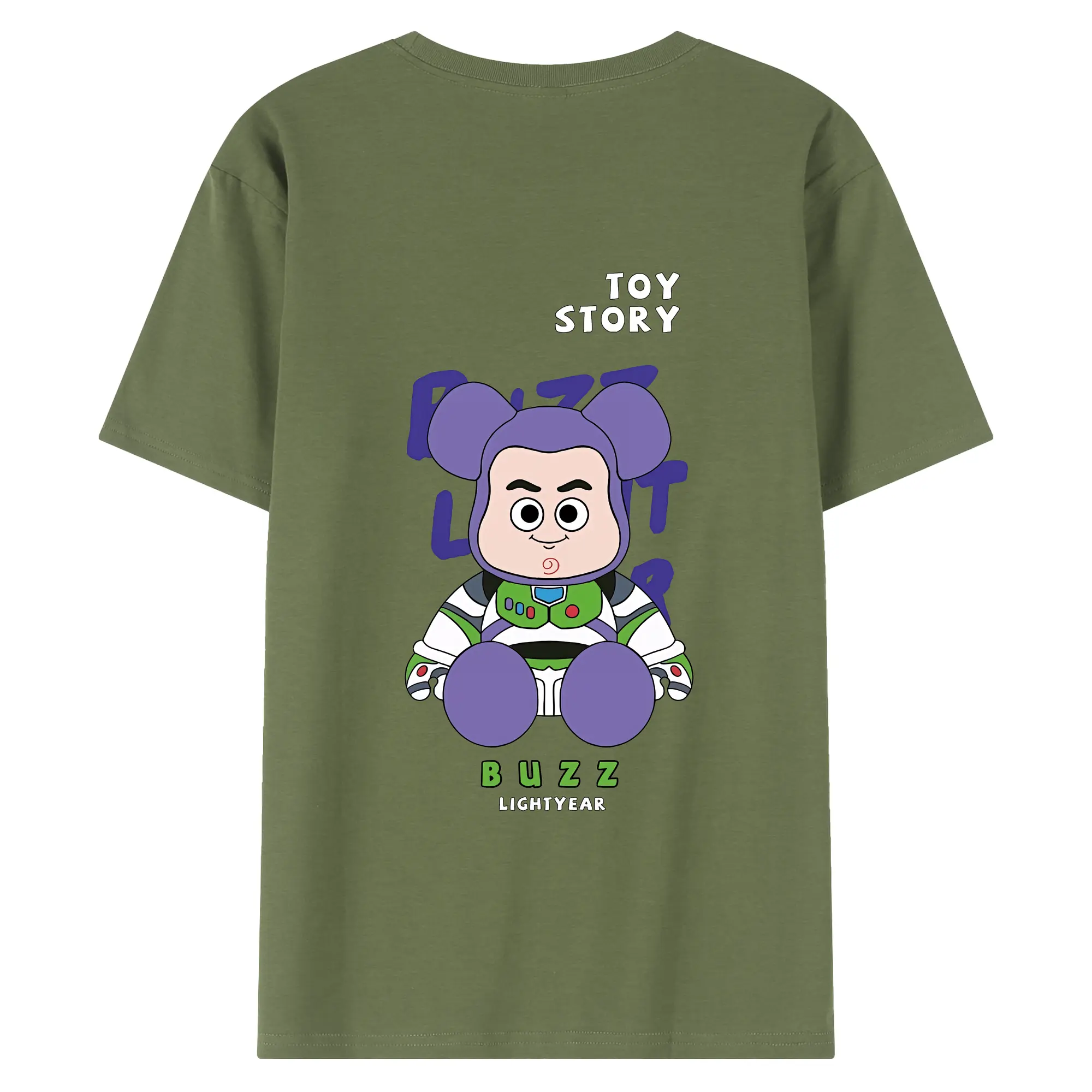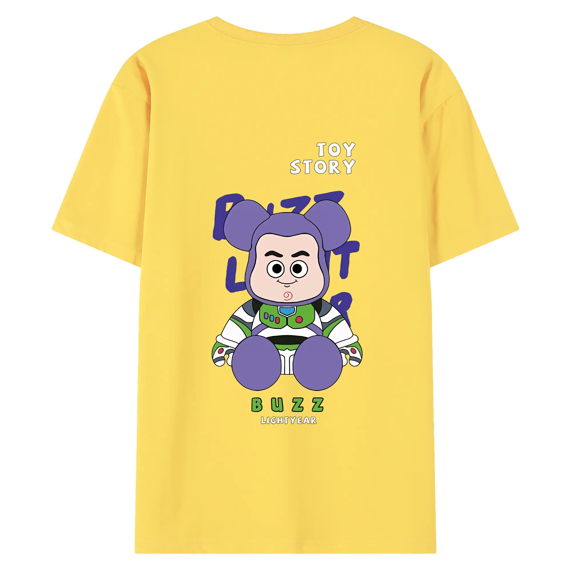 トイ・ストーリー グッズ バズ・ライトイヤー - 綿100% ヴィンテージ風 半袖Tシャツ ・ 背面プリント ・ 柔らか肌触り ・ 通気性 快適 ・ スポーツ カジュアル 外出用