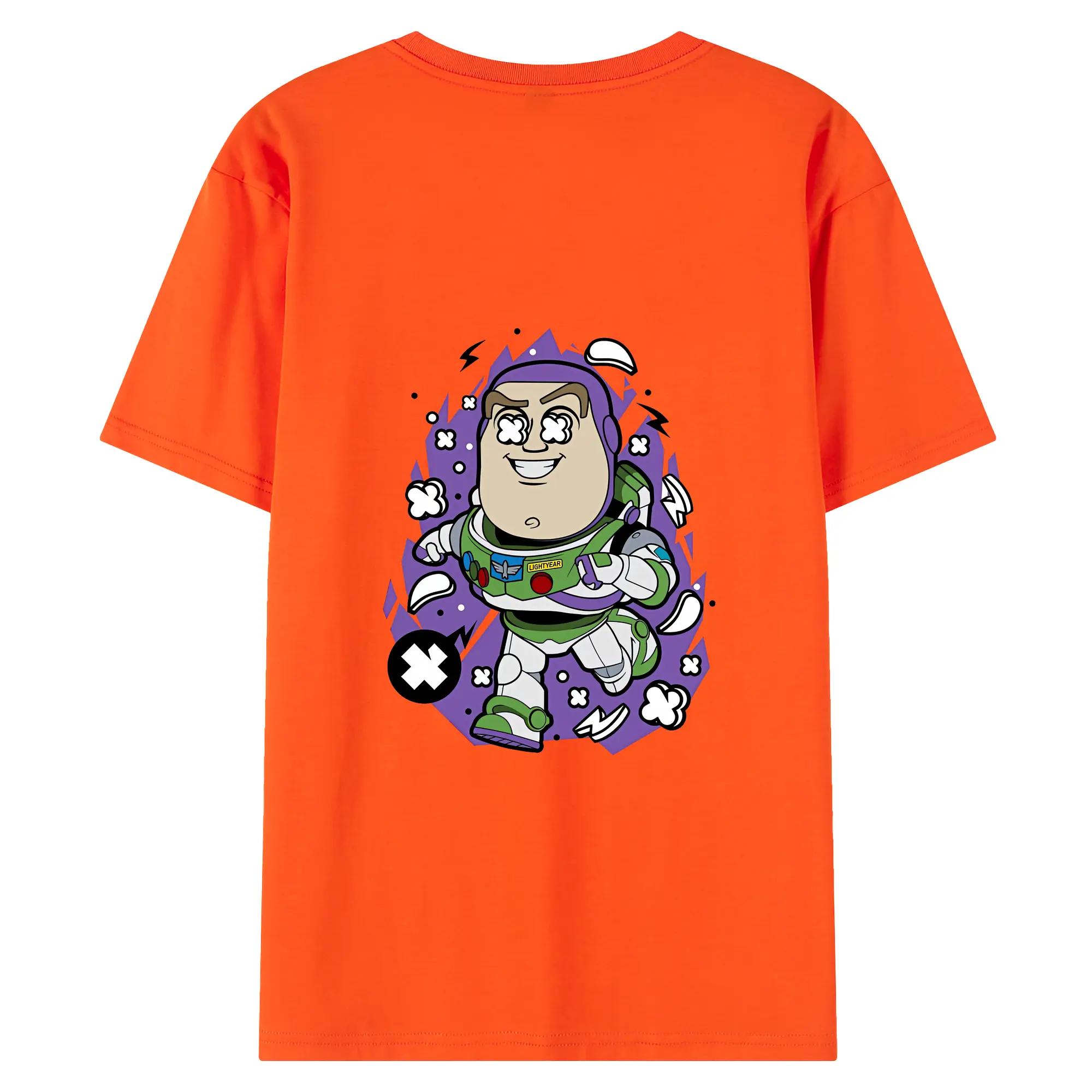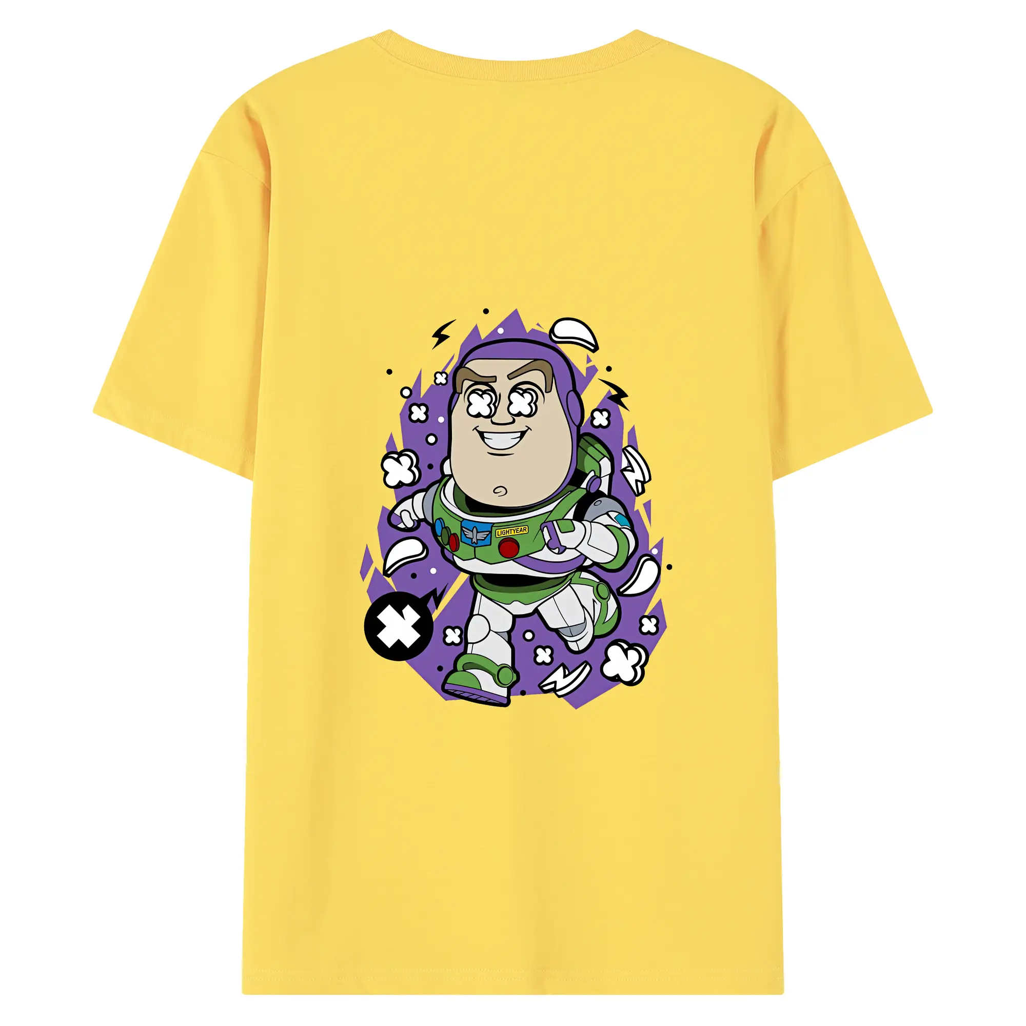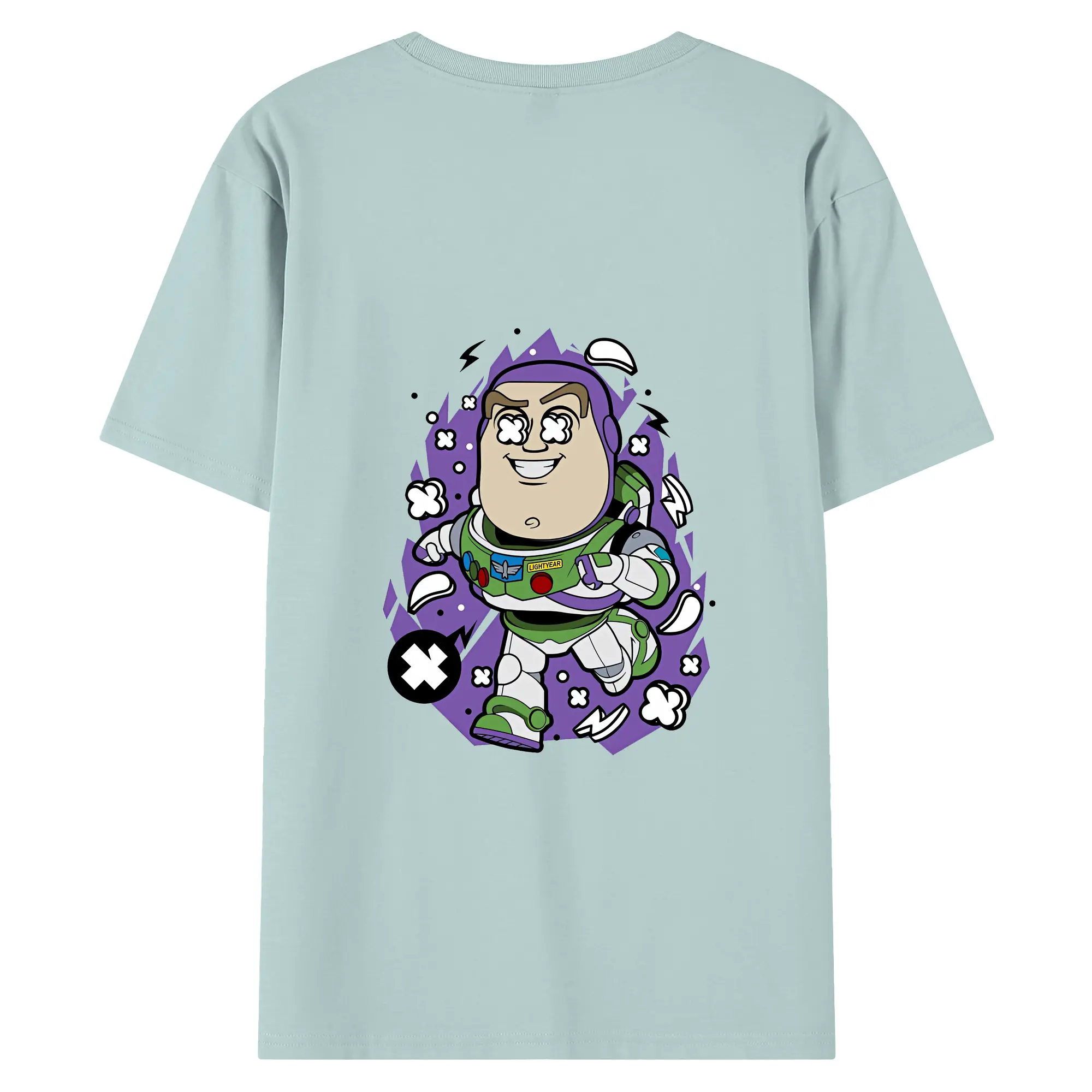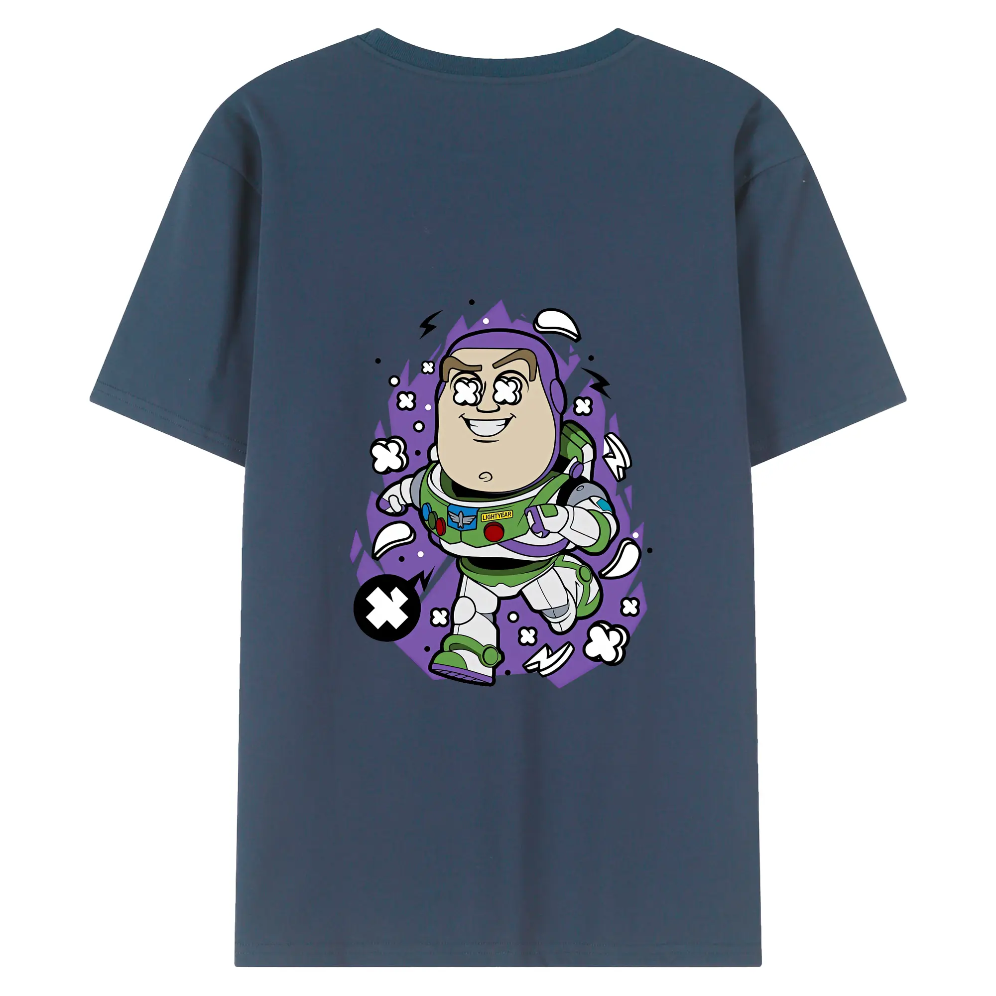 トイ・ストーリー グッズ バズ・ライトイヤー - 綿100% ヴィンテージ風 半袖Tシャツ ・ 背面プリント ・ 柔らか肌触り ・ 通気性 快適 ・ スポーツ カジュアル 外出用