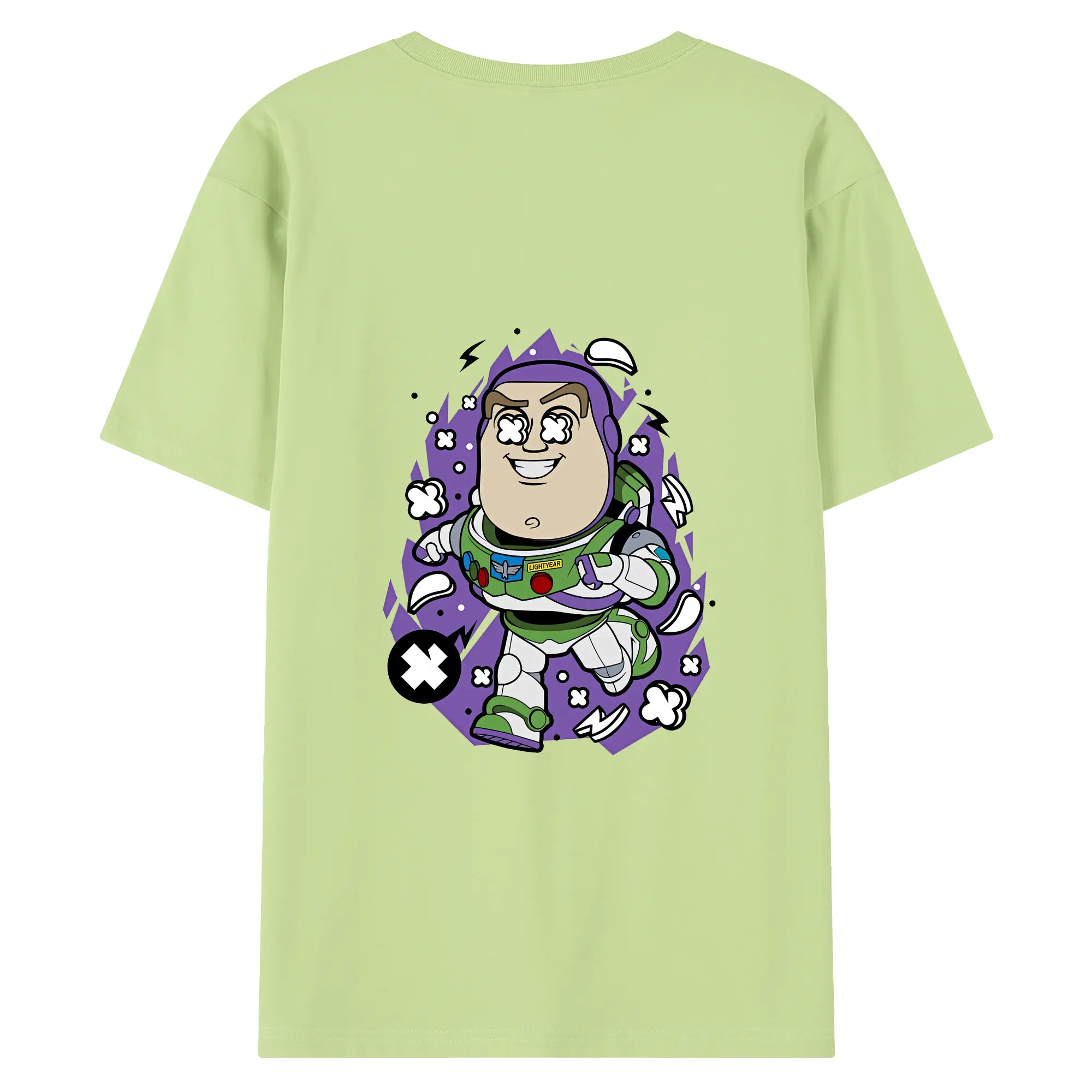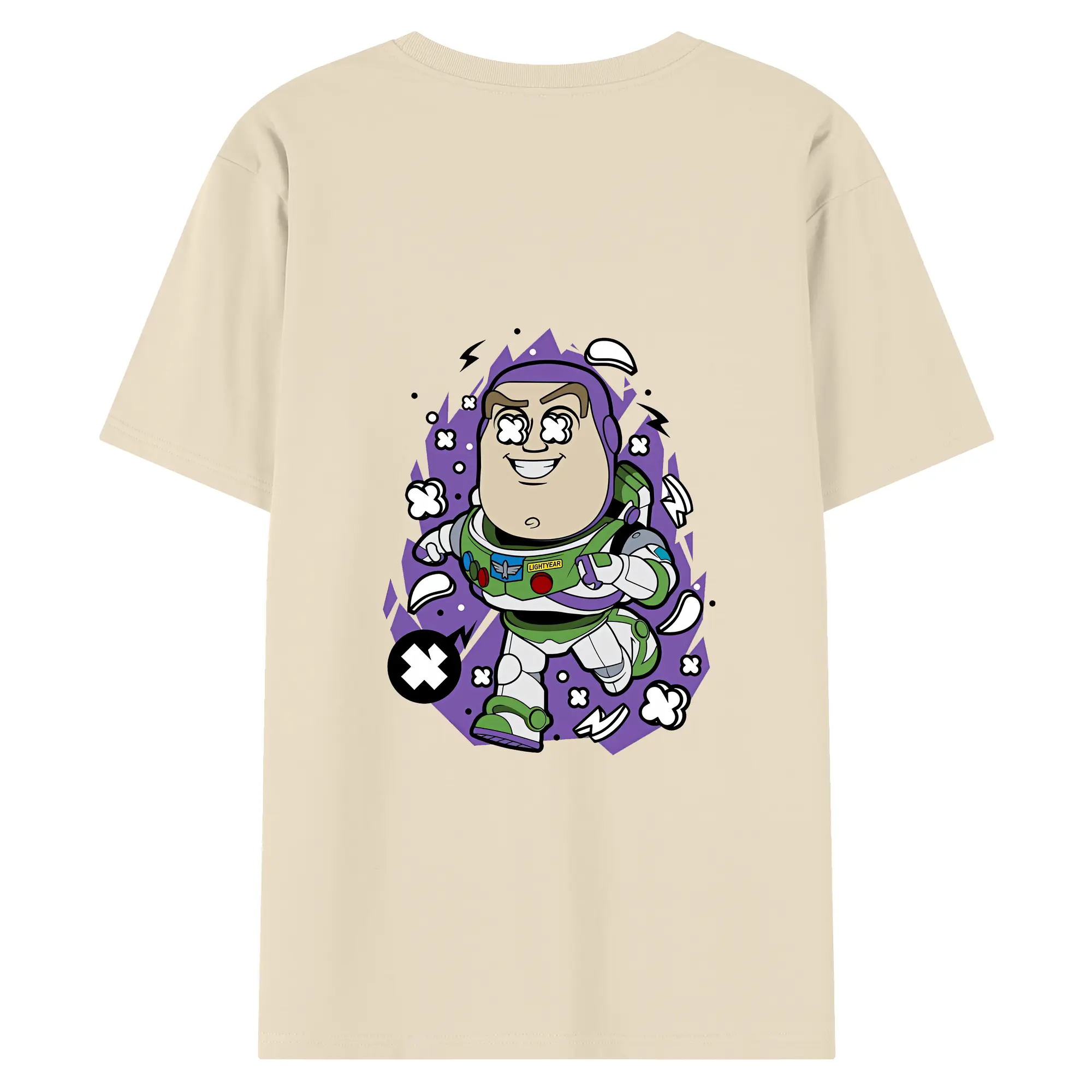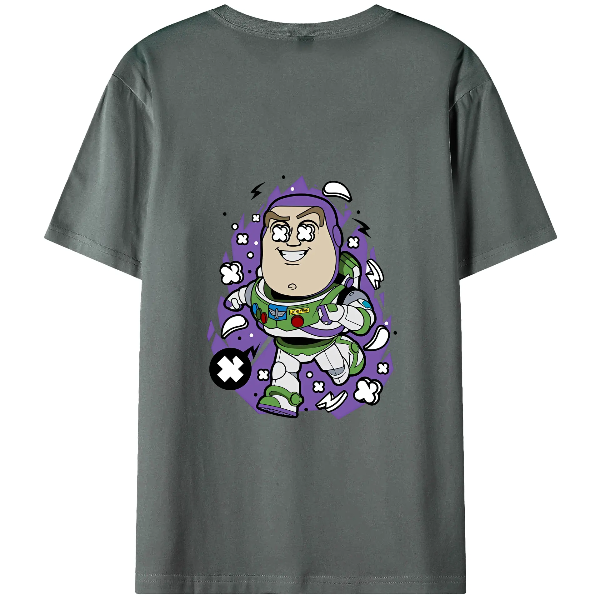 トイ・ストーリー グッズ バズ・ライトイヤー - 綿100% ヴィンテージ風 半袖Tシャツ ・ 背面プリント ・ 柔らか肌触り ・ 通気性 快適 ・ スポーツ カジュアル 外出用