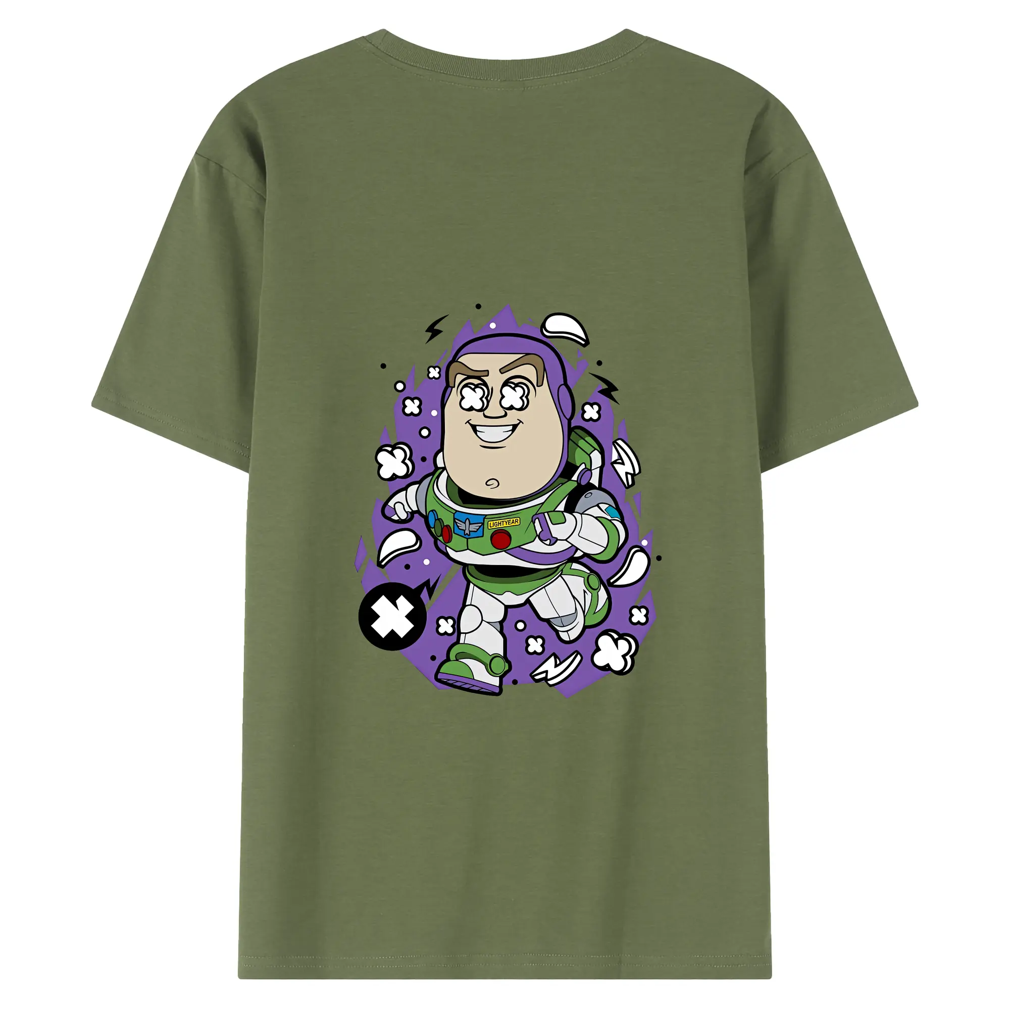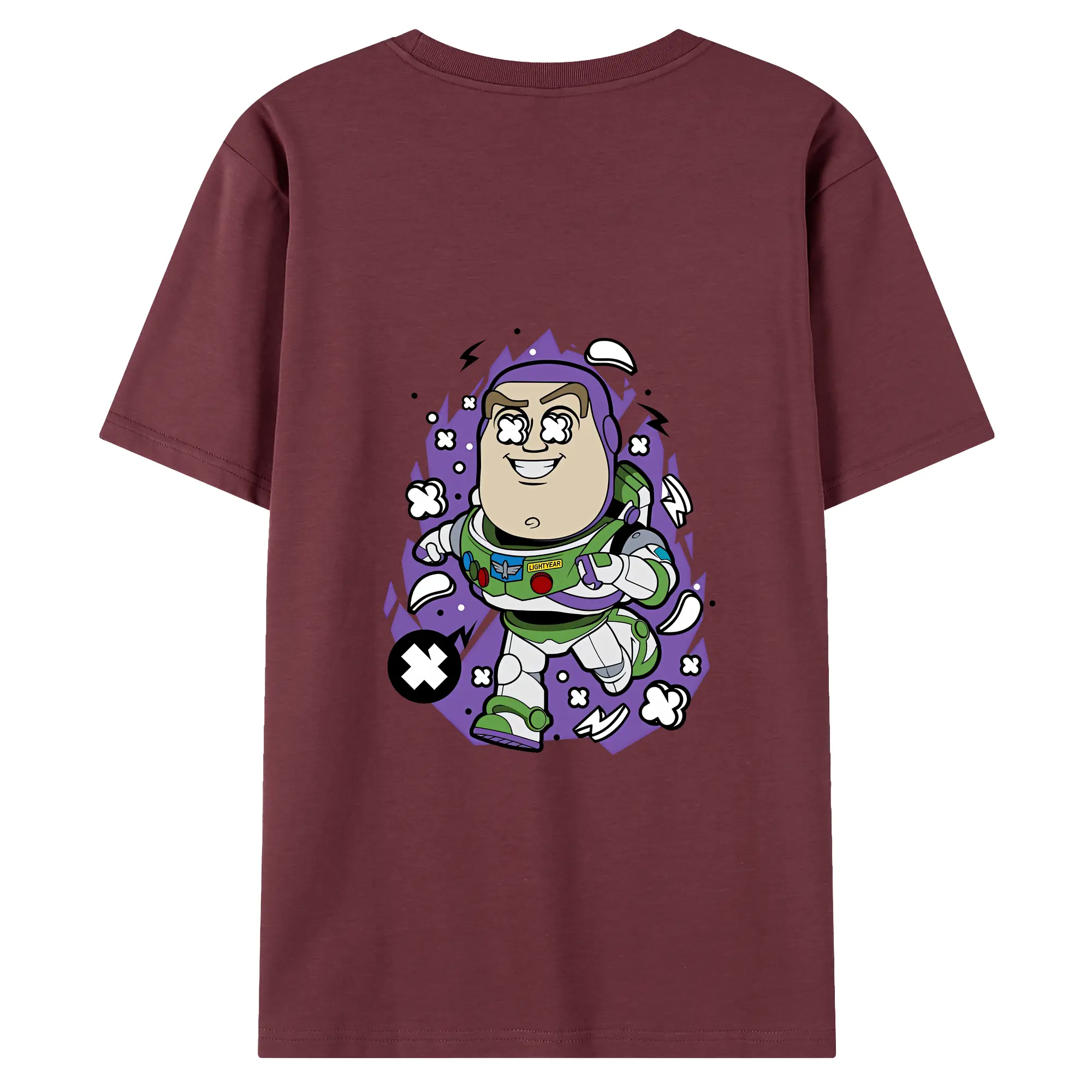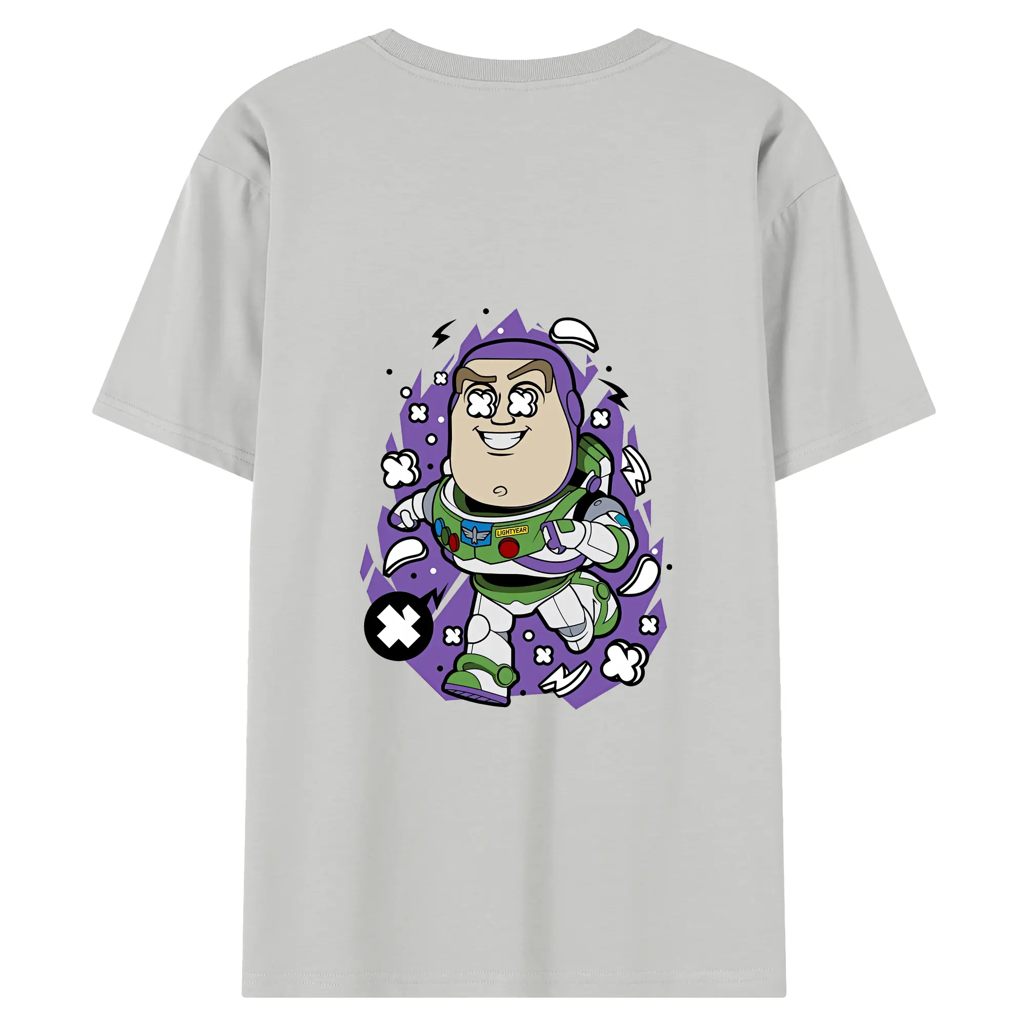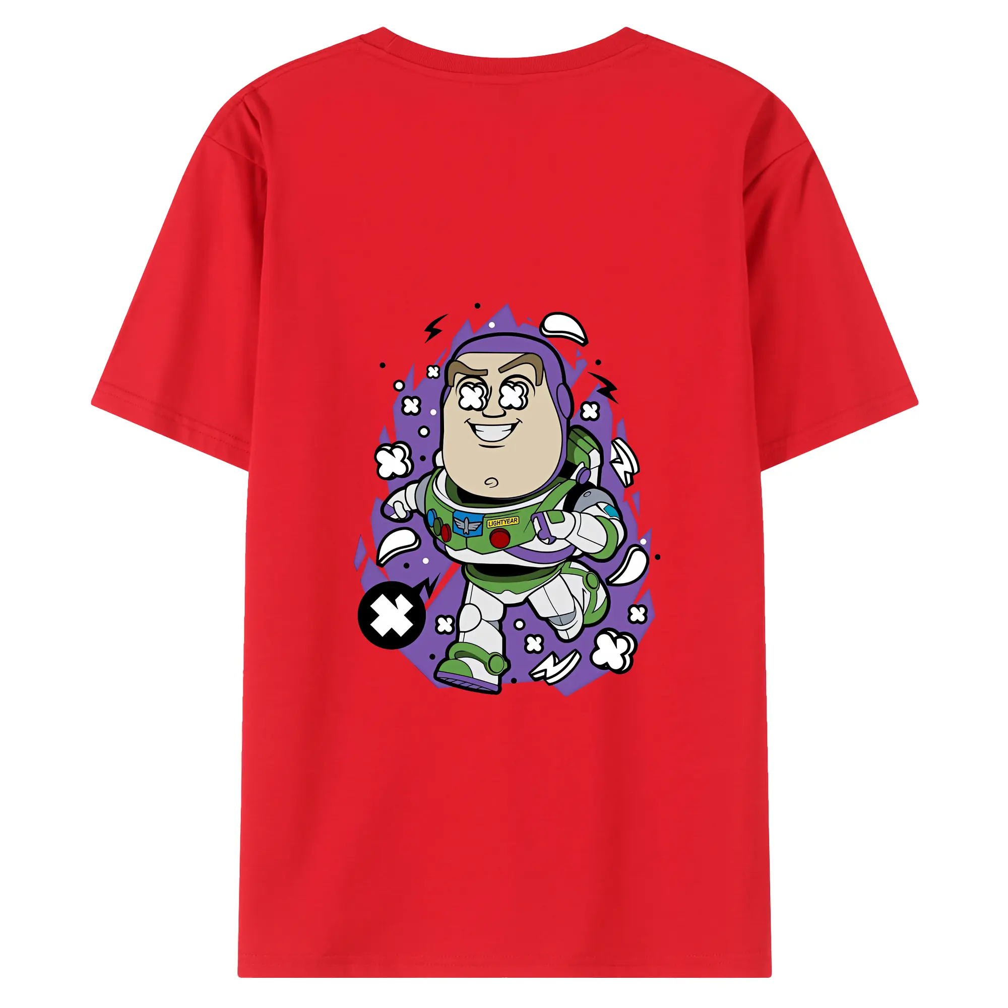 トイ・ストーリー グッズ バズ・ライトイヤー - 綿100% ヴィンテージ風 半袖Tシャツ ・ 背面プリント ・ 柔らか肌触り ・ 通気性 快適 ・ スポーツ カジュアル 外出用