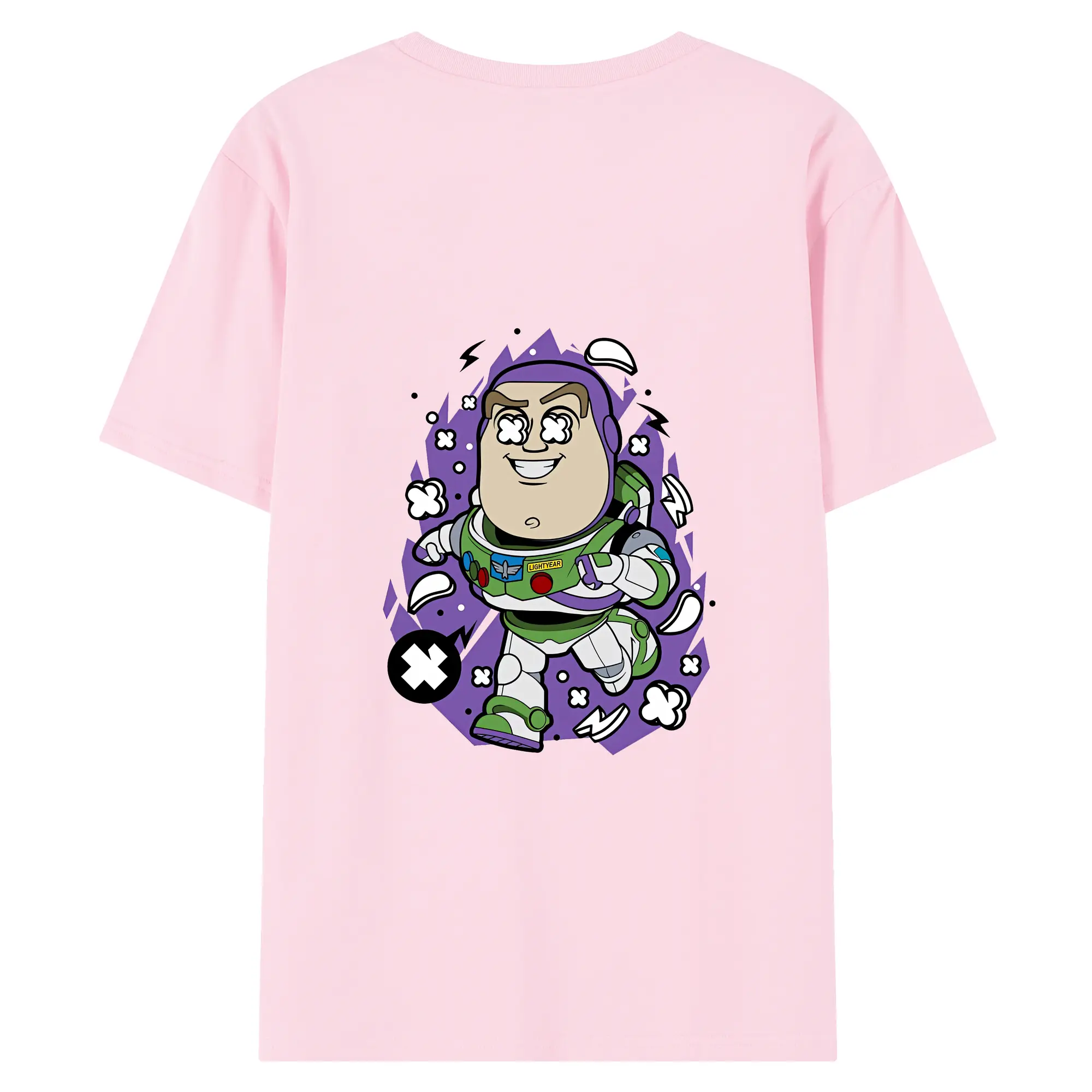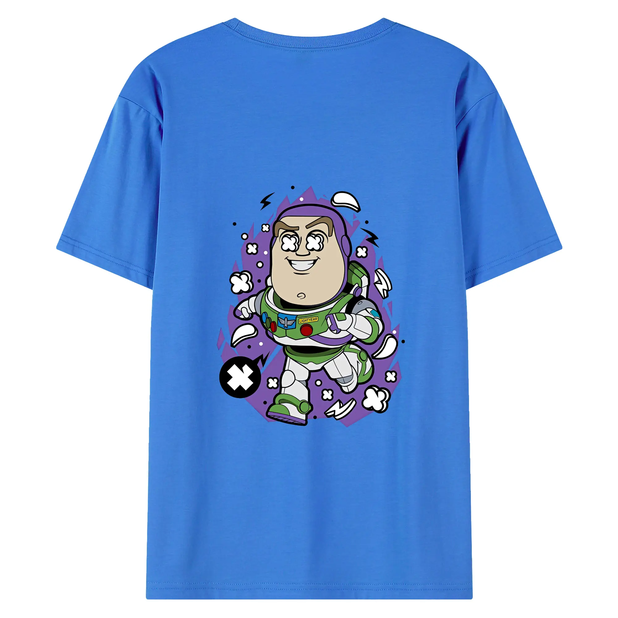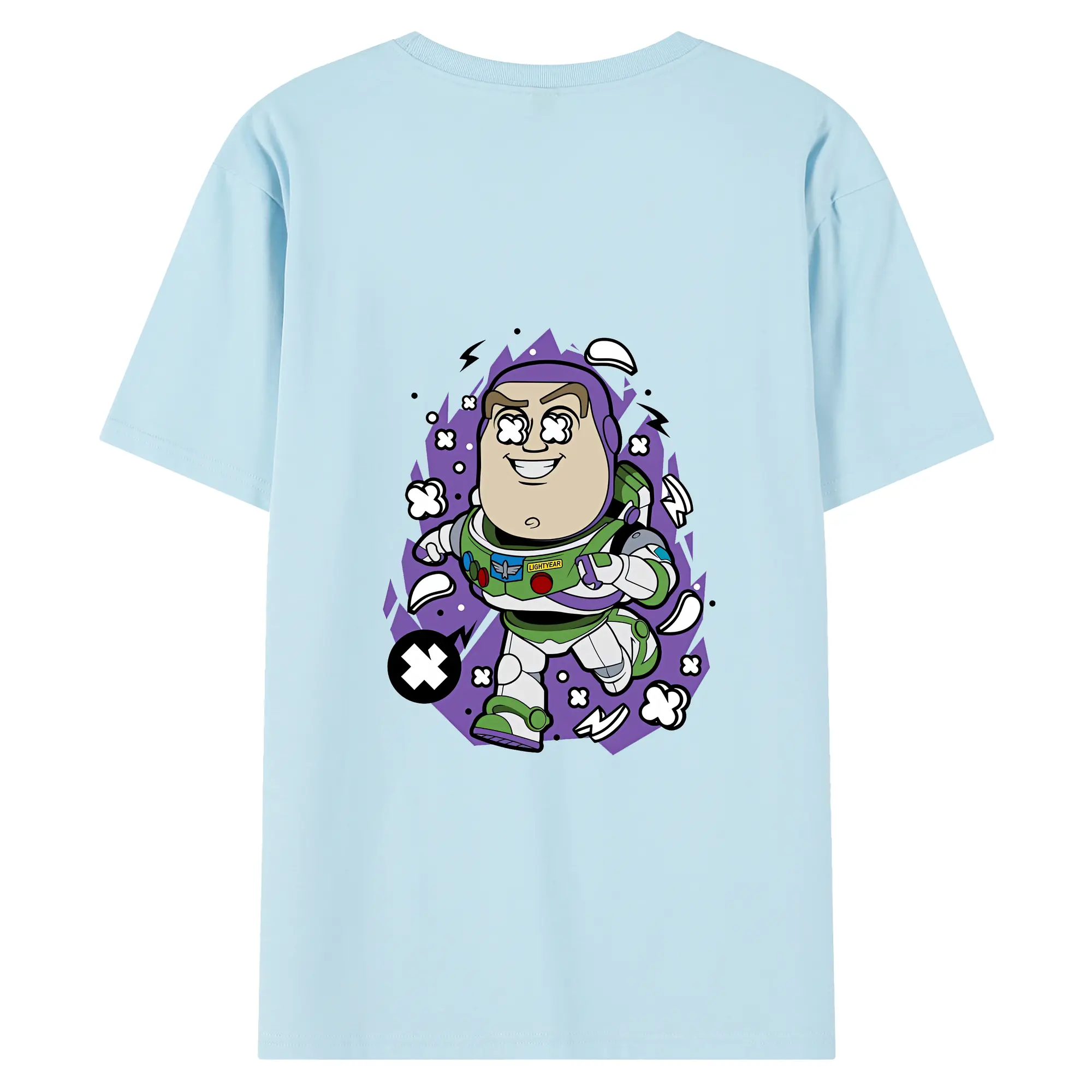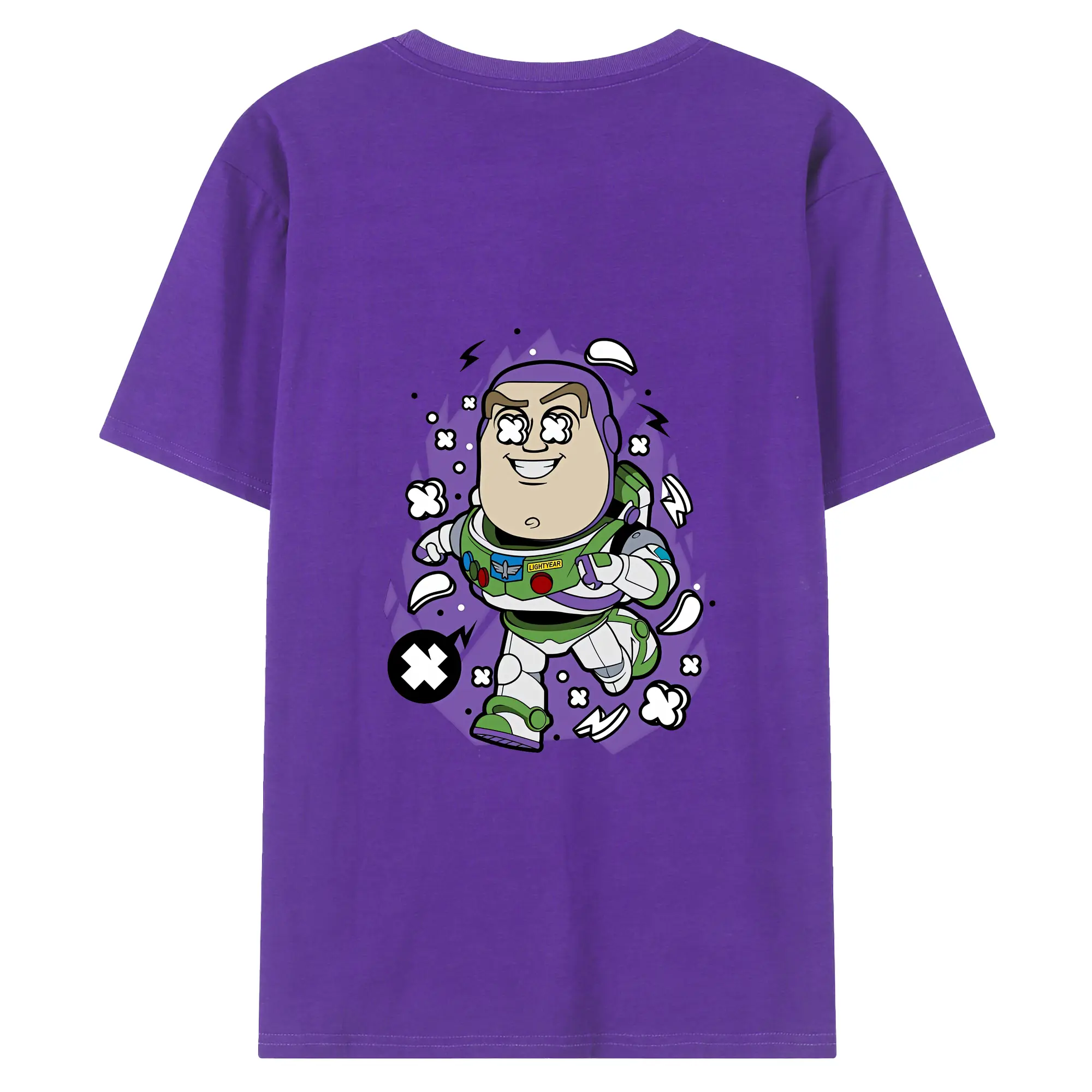 トイ・ストーリー グッズ バズ・ライトイヤー - 綿100% 半袖Tシャツ ・ フロントプリント ・ 快適 通気性 ・ 日常使い 散歩 スポーツ用