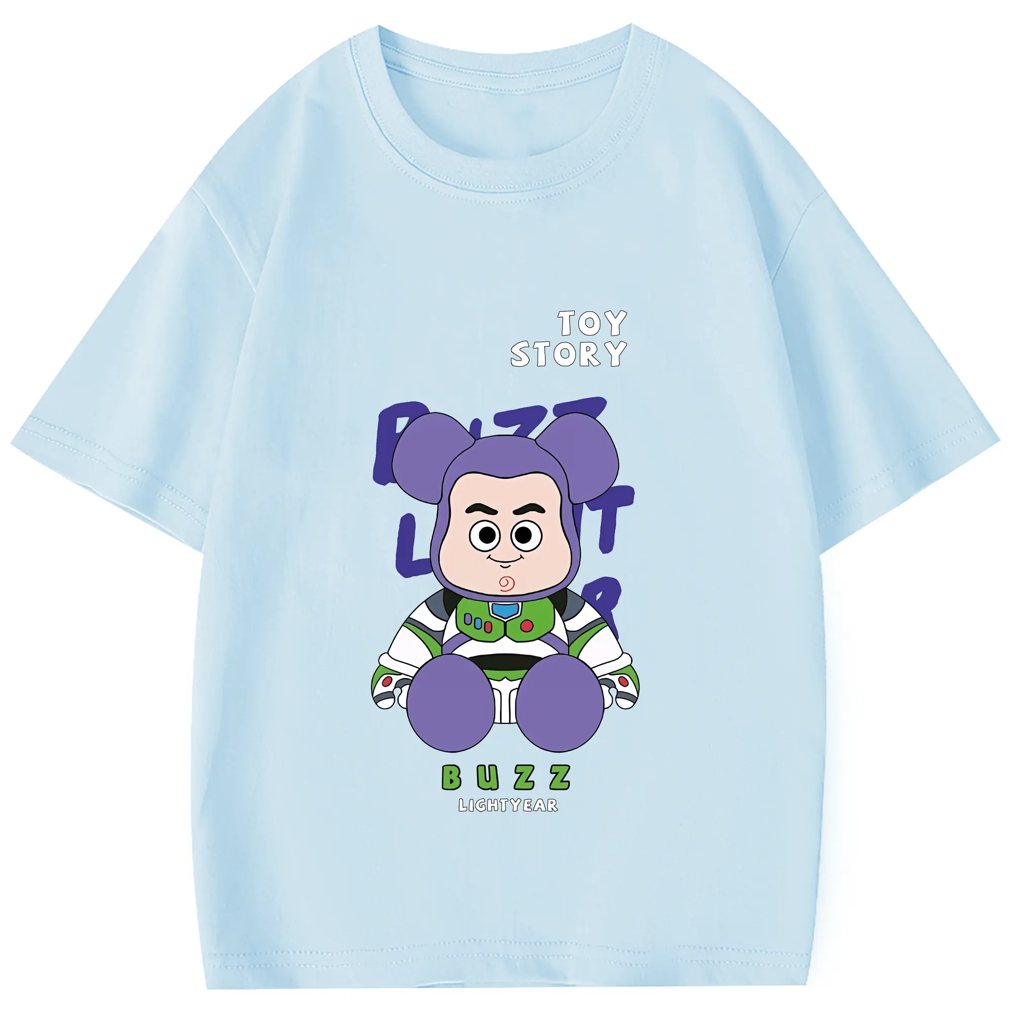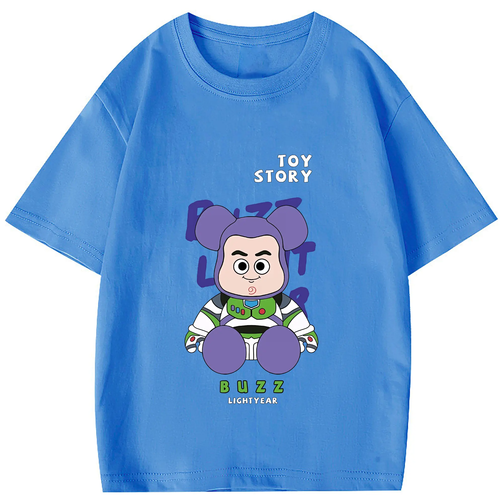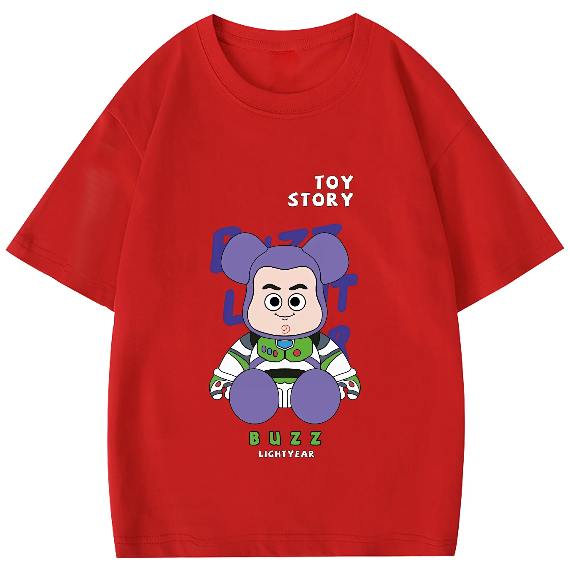 トイ・ストーリー グッズ バズ・ライトイヤー - 綿100% 半袖Tシャツ ・ フロントプリント ・ 快適 通気性 ・ 日常使い 散歩 スポーツ用