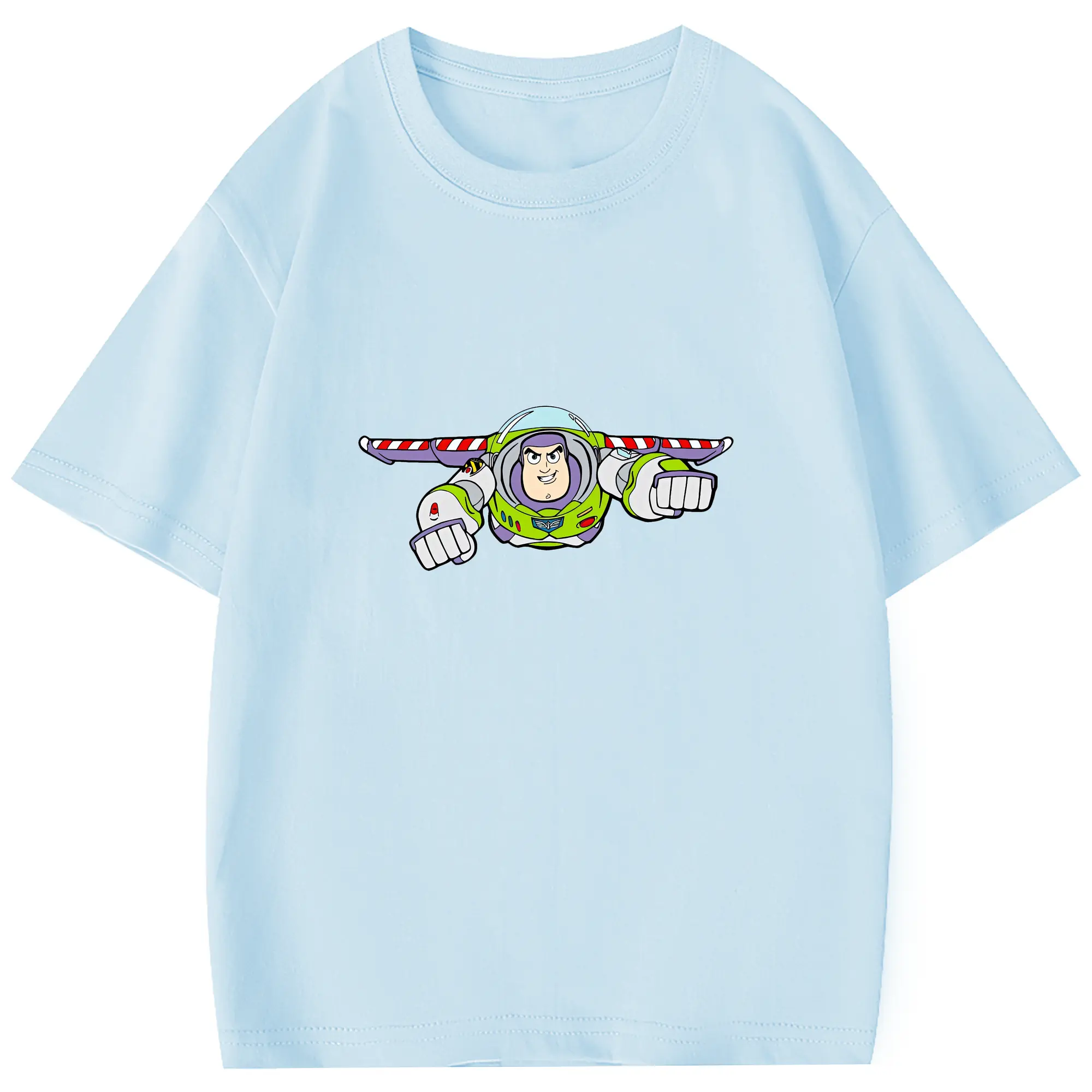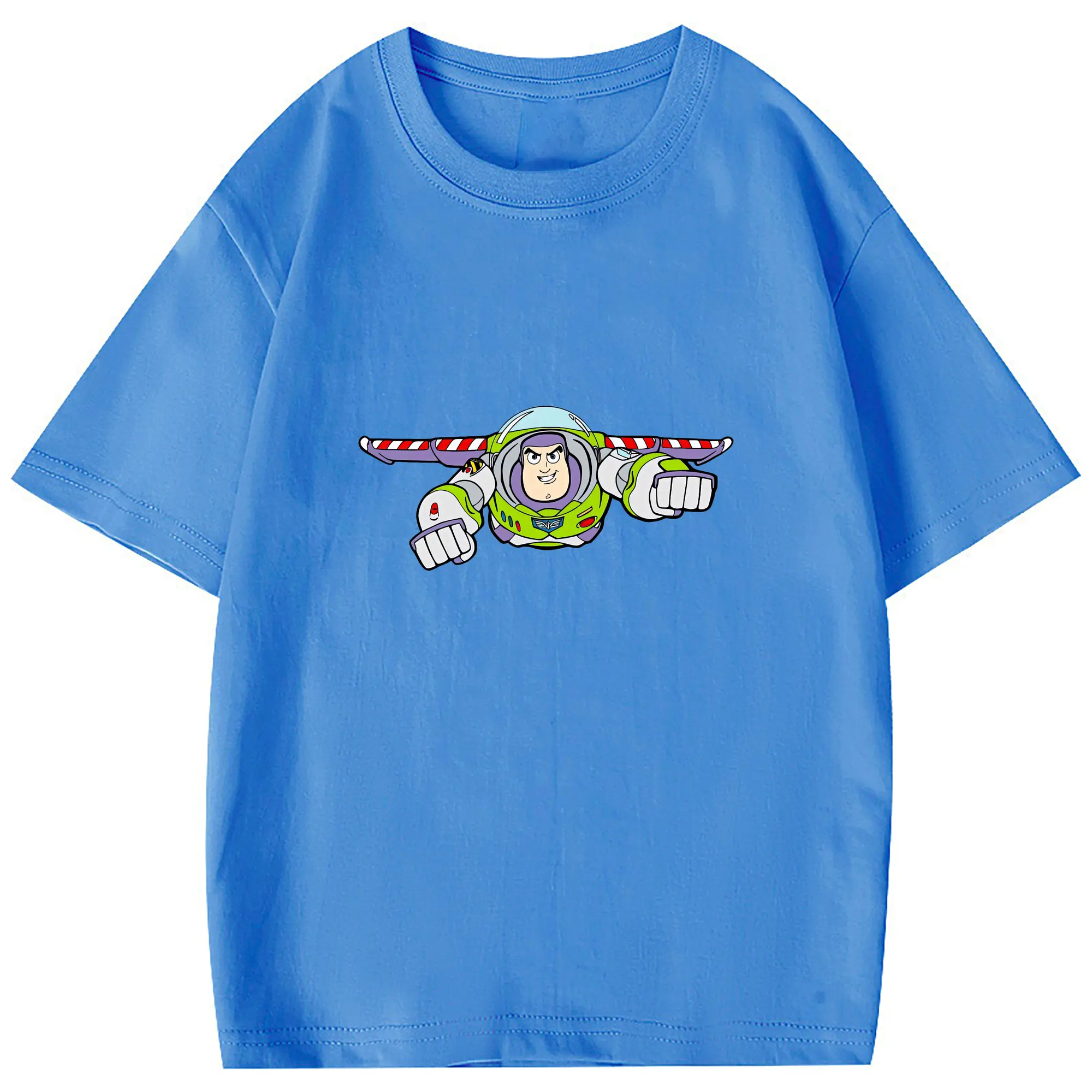 トイ・ストーリー グッズ バズ・ライトイヤー - 綿100% 半袖Tシャツ ・ フロントプリント ・ 快適 通気性 ・ 日常使い 散歩 スポーツ用